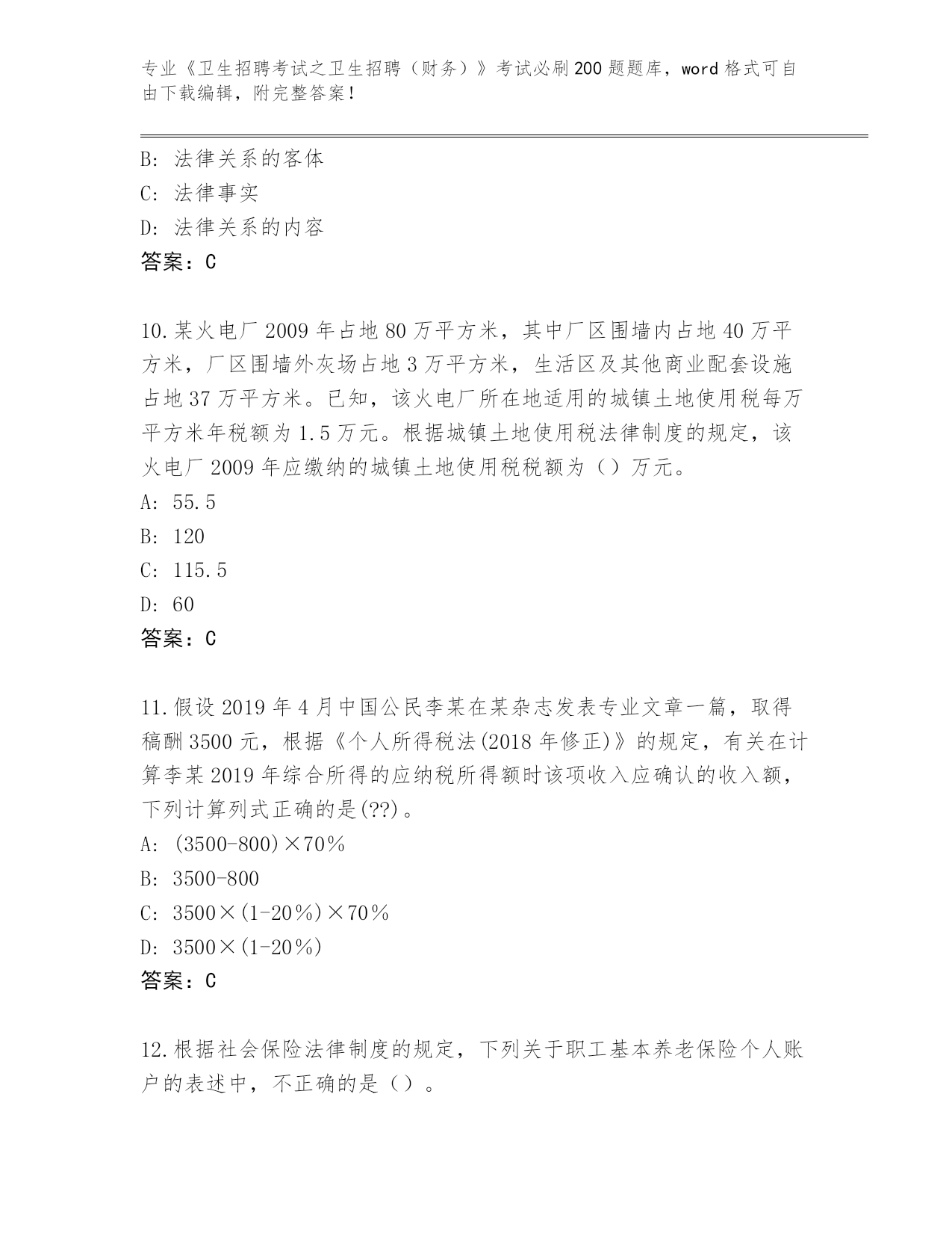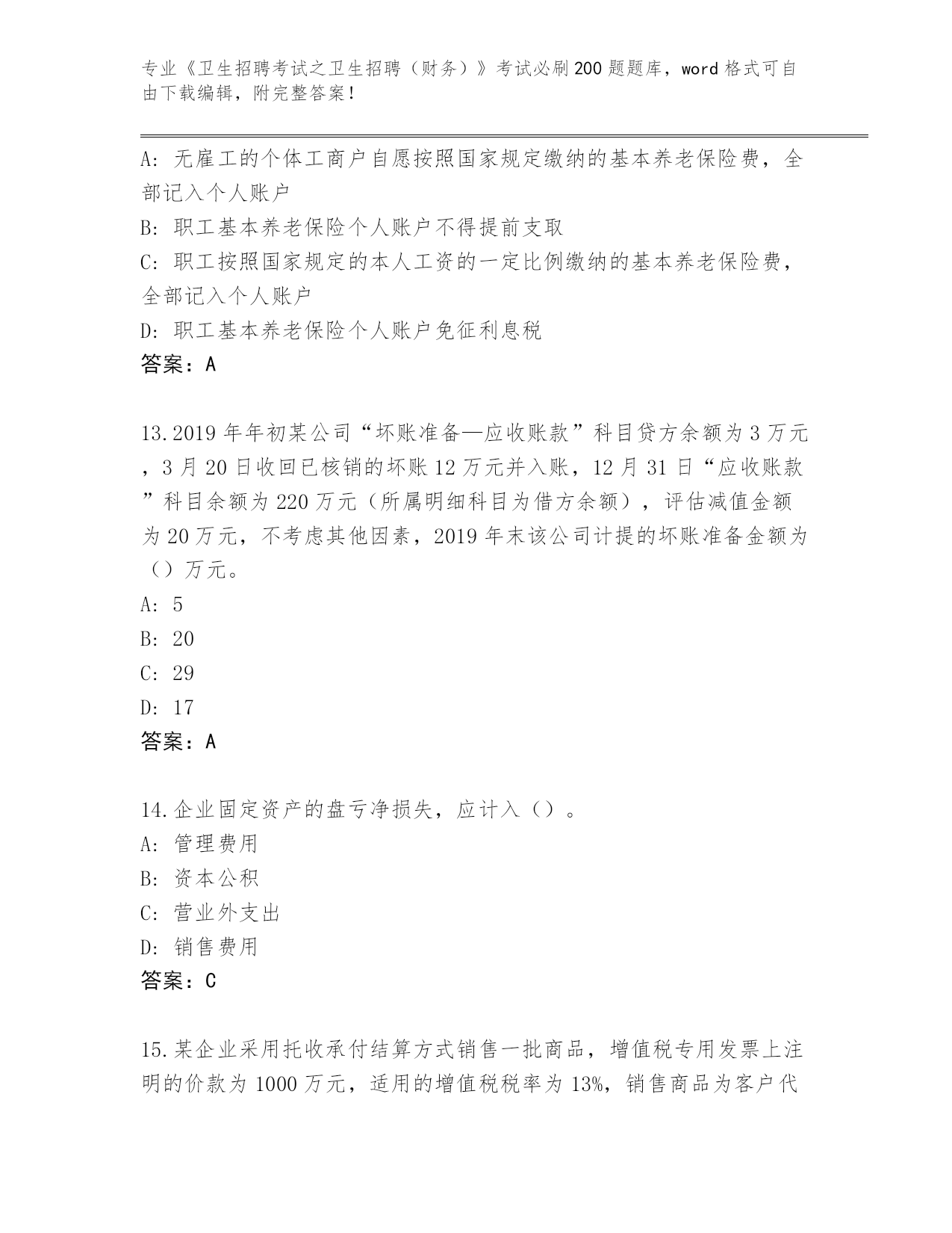 完整版湖南省新田县《卫生招聘考试之卫生招聘(财务)》考试必刷200题通关秘籍题库带答案(培优B卷)