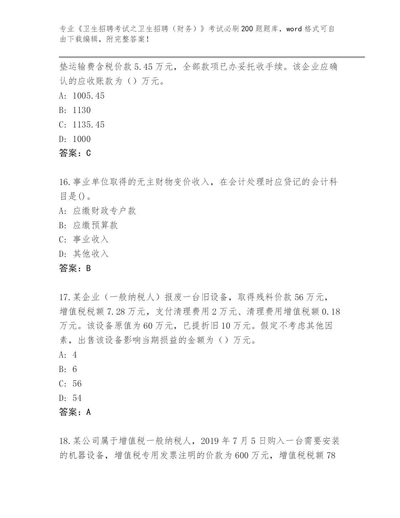 湖南省道县《卫生招聘考试之卫生招聘(财务)》考试必刷200题题库附答案(培优B卷)