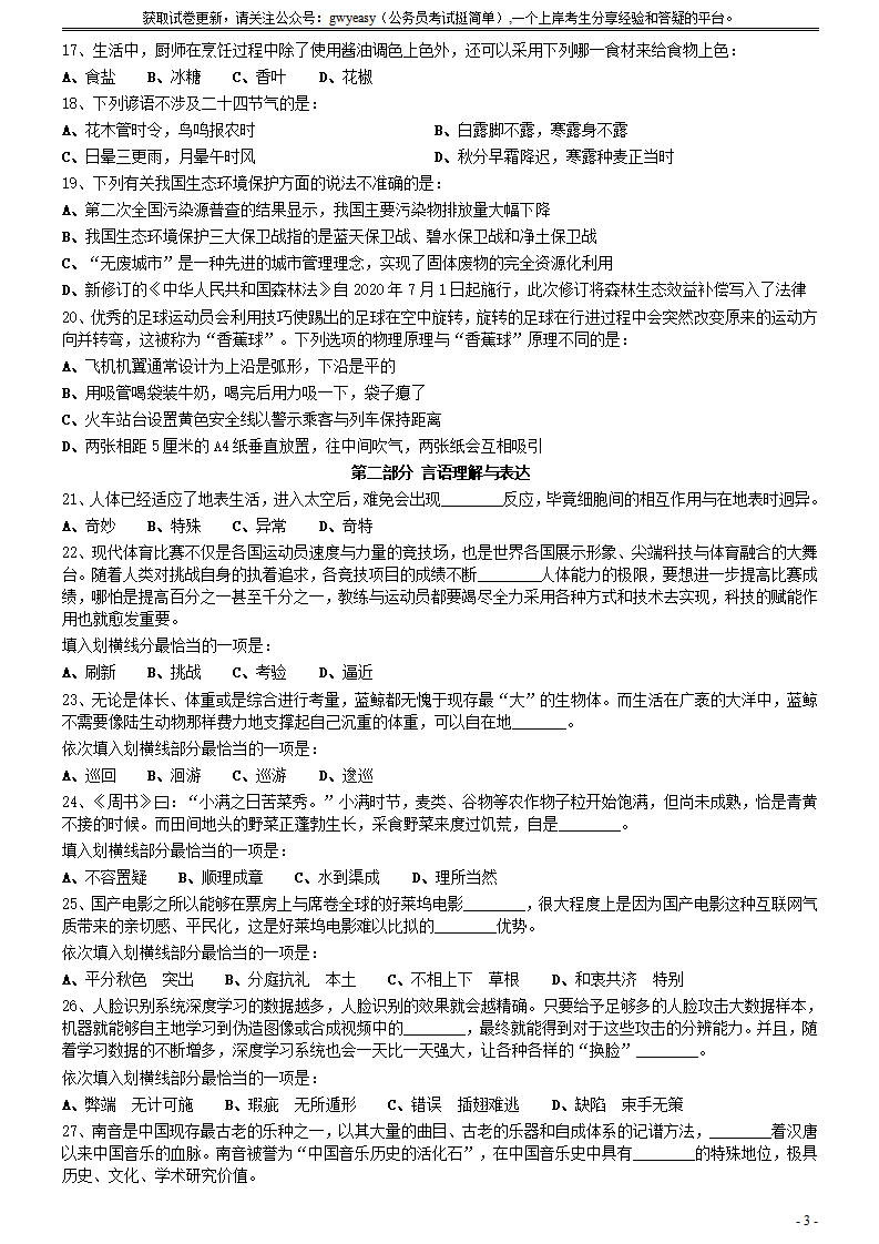 2021年0327黑龙江公务员考试《行测》真题(1道题暂缺).pdf