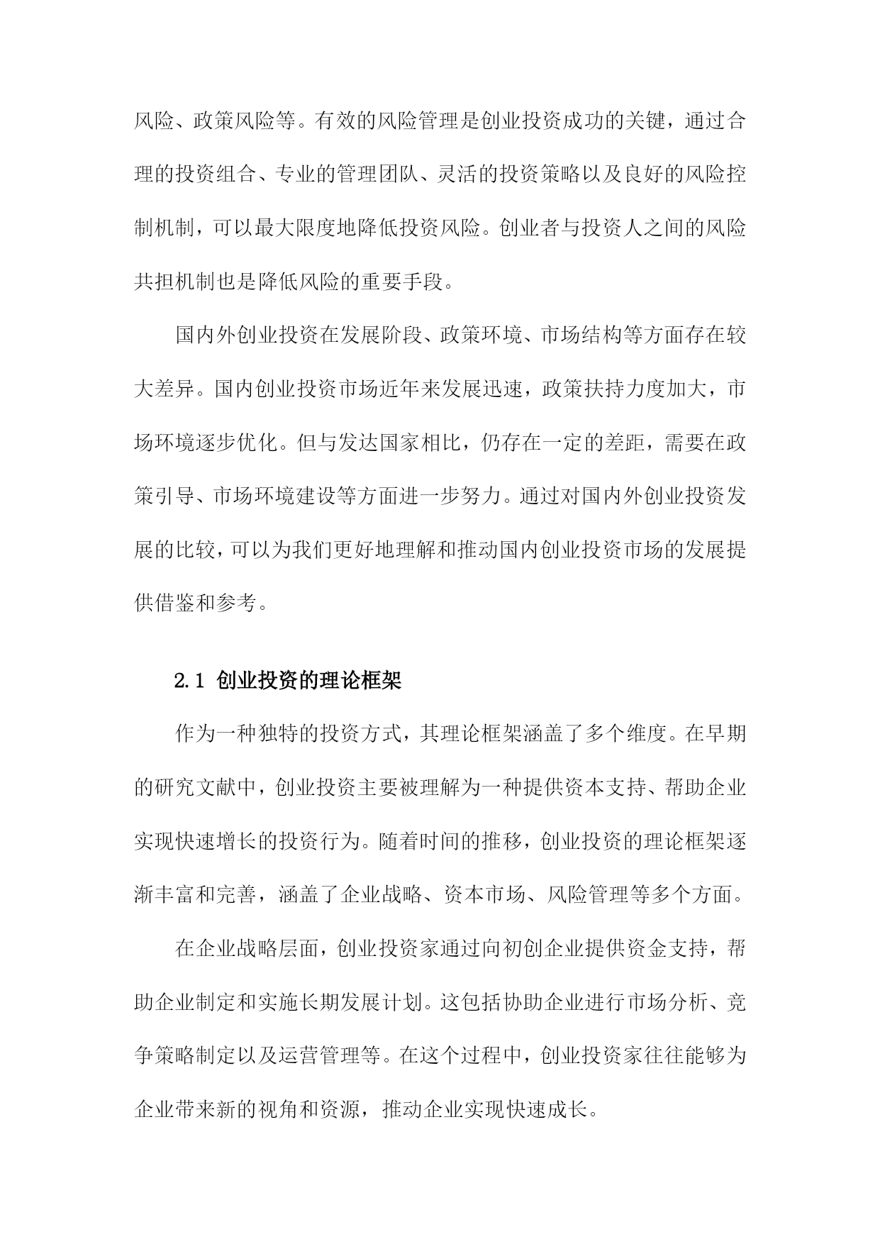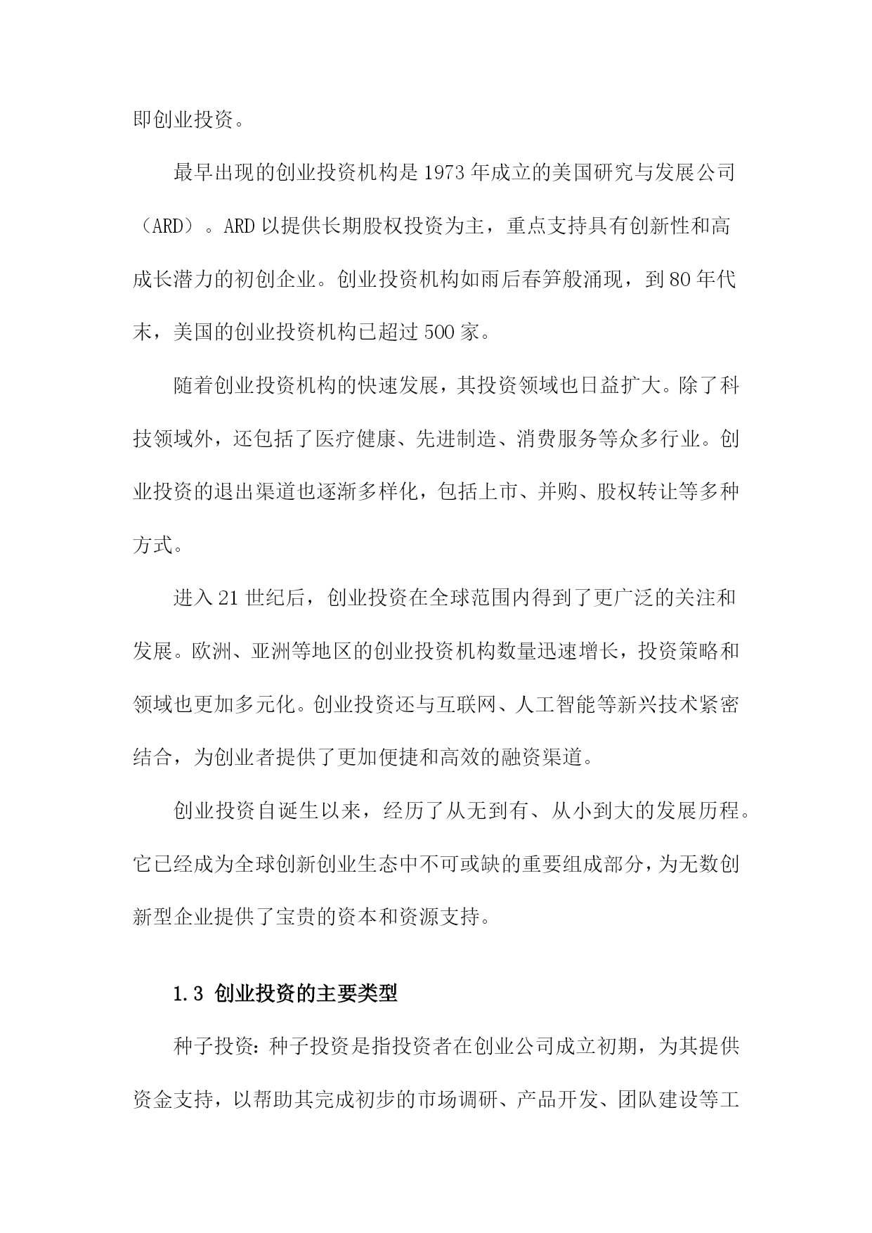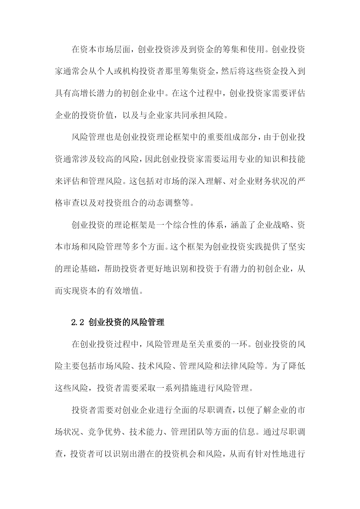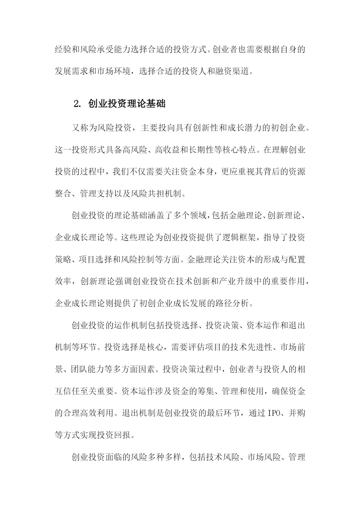 《创业投资理论与案例》读书笔记1.创业投资概述创业投资是指投资者将资金投入到创新型企业,以期获得企业成长、扩张和盈利的收益。创业投资是一种长期、高风险的投资方式,其投资周期、回报率和风险程度都较高。创业投资的主要目的是支持创新型企业的发展,推动科技进步和产业升级,从而为社会创造更多的就业机会和经济效益。创业投资通常包括种子投资、天使投资、风险投资、私募股权投资等多种形式。种子投资主要针对初创阶段的企业,投资者通常会为企业提供一定的资金支持,帮助企业完成产品研发、市场拓展等前期工作;天使投资则主要关注企业的商业模式和市场潜力,投资者会在企业成立初期提供资金支持,帮助企业度过初创期的生存危机;风险投资和私募股权投资则主要针对成长期和成熟期的企业,投资者通常会为企业提供大量的资金支持,帮助企业进行扩张和并购等战略性布局。创业投资的成功与否取决于多种因素,如创业者的能力和经验、市场环境、政策法规等。投资者在进行创业投资时,需要充分了解企业的核心竞争力、市场前景、竞争格局等因素,以便做出明智的投资决策。创业投资还需要投资者具备较强的风险承受能力,因为创业投资的风险较大,投资者可能面临资金损失甚至无法收回本金的风险。随着科技的发展和产业结构的调整,创业投资逐渐成为全球资本市场的重要组成部分。越来越多的国家和地区开始重视创业投资的发展,出台了一系列政策措施来支持创业投资活动。创业投资也逐渐吸引了越来越多的专业投资者参与,形成了一个庞大的创业投资生态系统。在这个生态系统中,投资者、创业者、孵化器、加速器等多个角色相互依存、共同发展,为创新创业提供了良好的环境和条件。1.1创业投资的定义与特点又称为风险投资,主要投向具有巨大发展潜力的创业企业,为这些企业提供资金支持与管理经验,以期所投资的企业能够快速成长,最终通过上市、出售或其他股权转让方式实现高额的投资回报。其特点主要表现在以下几个方面:创业投资所面对的企业往往处于初创阶段,其商业模式、市场前景、技术创新能力等都存在较大的不确定性。投资风险相对较高,但正是这种不确定性,也带来了创业投资的高回报潜力。创业投资通常涉及的是长期投资,投资者通常需要持有数年甚至更长时间才能看到投资回报。因为创业企业的发展需要经历多个阶段,包括种子期、初创期、扩张期等,每个阶段都需要持续的资金支持。创业投资主要关注具有创新性和成长潜力的企业,这些企业通常拥有新技术、新产品或新服务,并在市场中展现出强烈的增长潜力。投资者通过为这些企业提供资金支持和管理经验,帮助它们实现快速成长。创业投资通常采用多元化投资策略,将资金投向多个不同领域、不同发展阶段的企业,以降低单一项目的投资风险。这种策略有助于投资者在不同领域寻找投资机会,并在某些领域出现不利情况时及时调整投资策略。创业投资者在投资后通常会积极参与企业的管理,提供战略指导、市场分析、团队建设等方面的支持。这不仅有助于改善企业的运营状况,也有助于提高投资者的投资回报。创业投资是一种高风险、长期性、专注于创新与成长、多元化投资和积极参与企业管理的投资方式。它对于推动经济发展和创新具有重要意义,在接下来的章节中,我们将深入探讨创业投资的理论基础、投资策略以及实际操作中的案例。1.2创业投资的发展历程作为一种新型的投资方式,起源于20世纪70年代的美国。许多创业者面临着资金短缺的问题,而传统的金融机构则难以满足他们的融资需求。一些具有远见的企业家和投资者开始探索新的投资方式,即创业投资。最早出现的创业投资机构是1973年成立的美国研究与发展公司(ARD)。ARD以提供长期股权投资为主,重点支持具有创新性和高成长潜力的初创企业。创业投资机构如雨后春笋般涌现,到80年代末,美国的创业投资机构已超过500家。随着创业投资机构的快速发展,其投资领域也日益扩大。除了科技领域外,还包括了医疗健康、先进制造、消费服务等众多行业。创业投资的退出渠道也逐渐多样化,包括上市、并购、股权转让等多种方式。进入21世纪后,创业投资在全球范围内得到了更广泛的关注和发展。欧洲、亚洲等地区的创业投资机构数量迅速增长,投资策略和领域也更加多元化。创业投资还与互联网、人工智能等新兴技术紧密结合,为创业者提供了更加便捷和高效的融资渠道。创业投资自诞生以来,经历了从无到有、从小到大的发展历程。它已经成为全球创新创业生态中不可或缺的重要组成部分,为无数创新型企业提供了宝贵的资本和资源支持。1.3创业投资的主要类型种子投资:种子投资是指投资者在创业公司成立初期,为其提供资金支持,以帮助其完成初步的市场调研、产品开发、团队建设等工作。种子投资者通常会承担较高的风险,因为在这个阶段,创业公司的商业模式和市场前景尚不明确。天使投资:天使投资是指投资者在创业公司成立初期,为其提供资金、