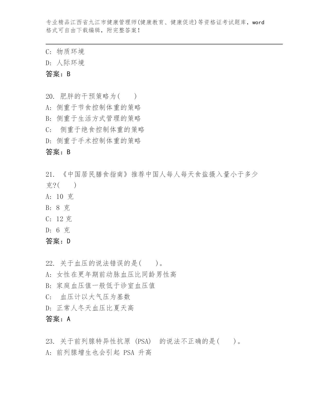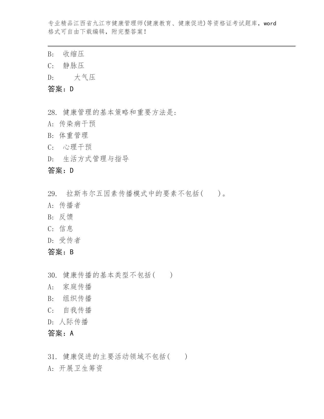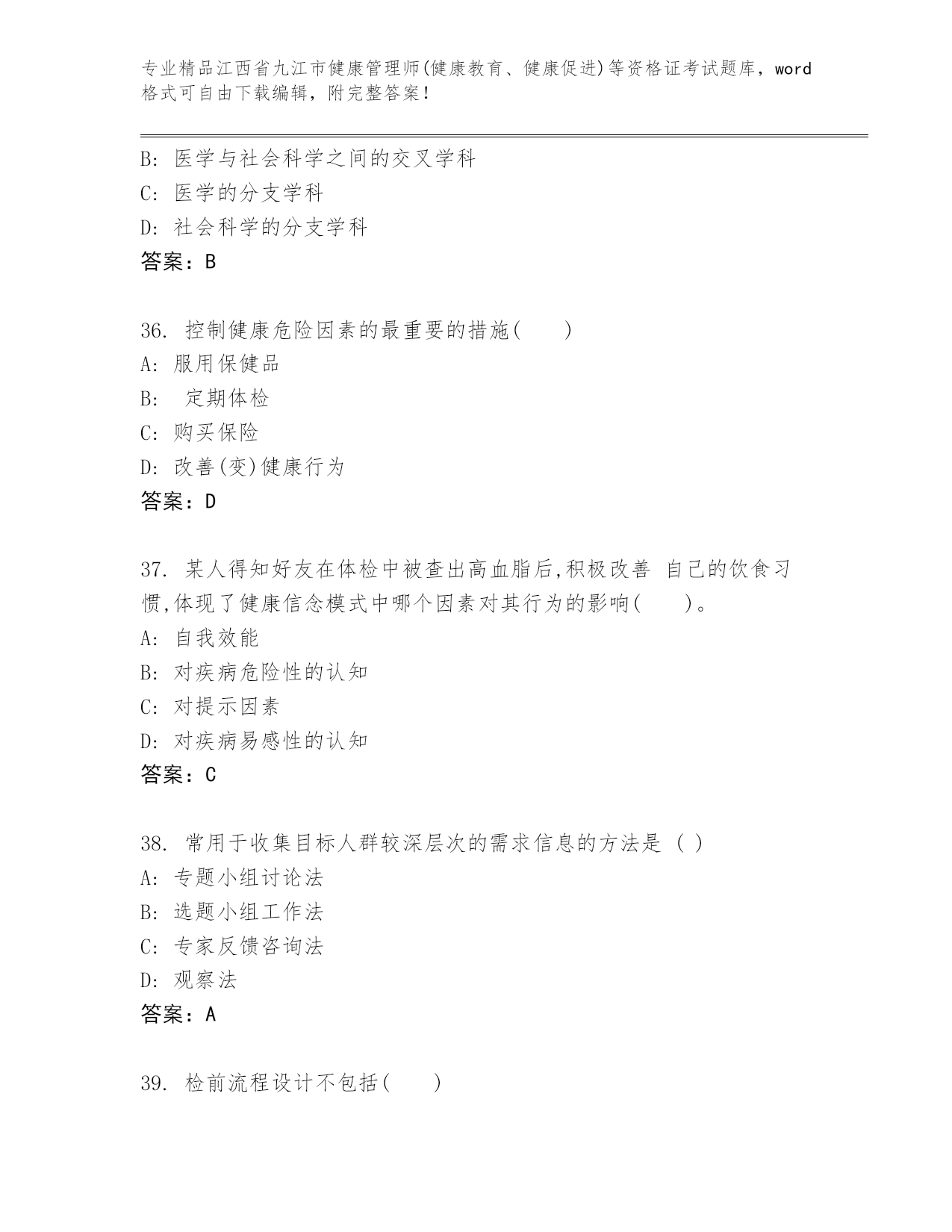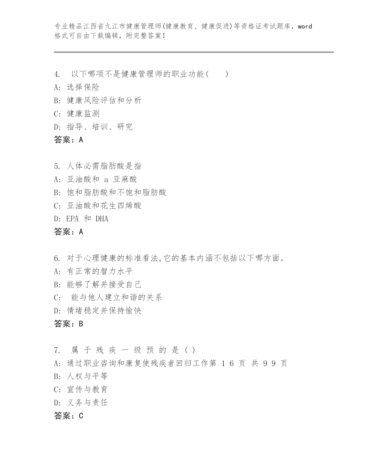 精心整理江西省九江市健康管理师(健康教育、健康促进)等资格证考试内部题库含答案【实用】.docx