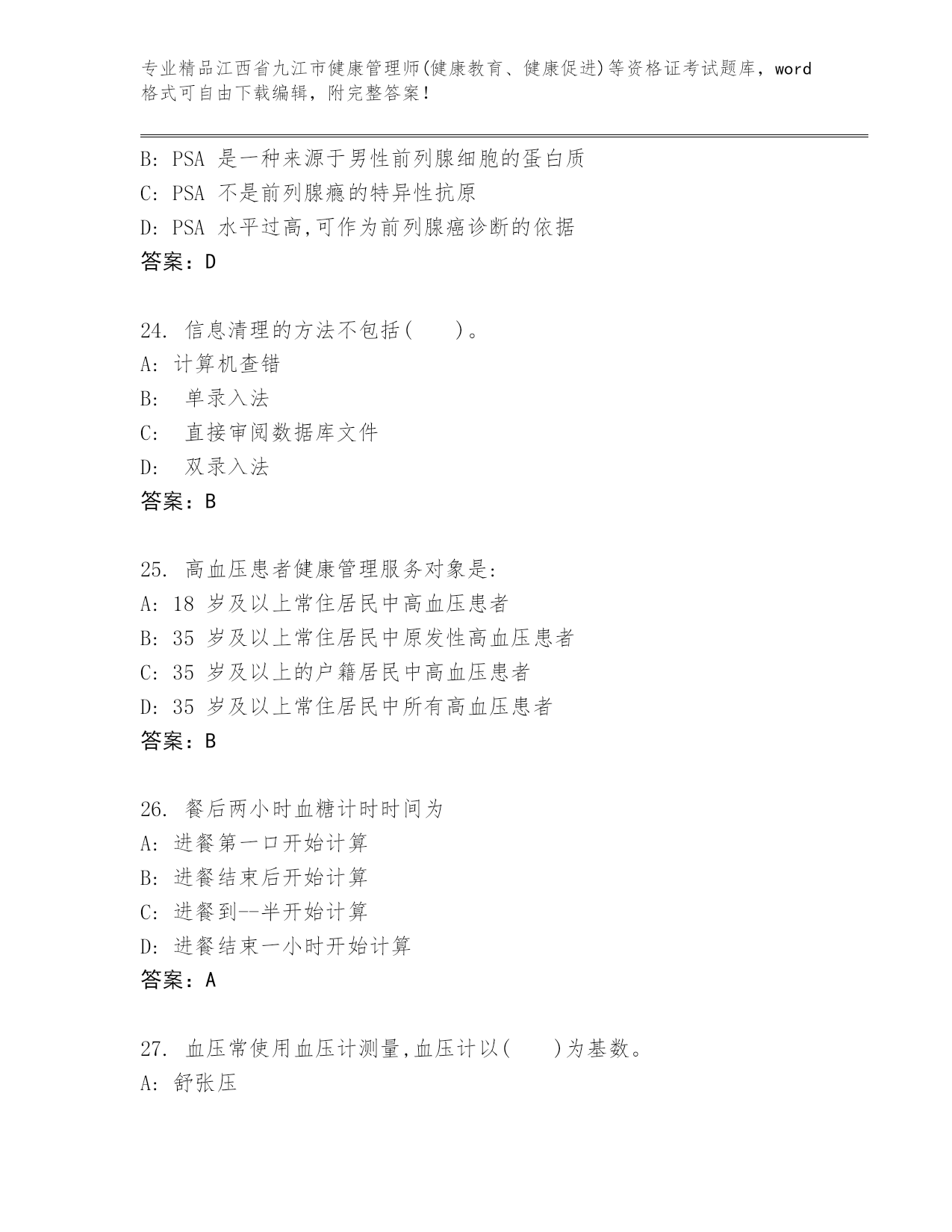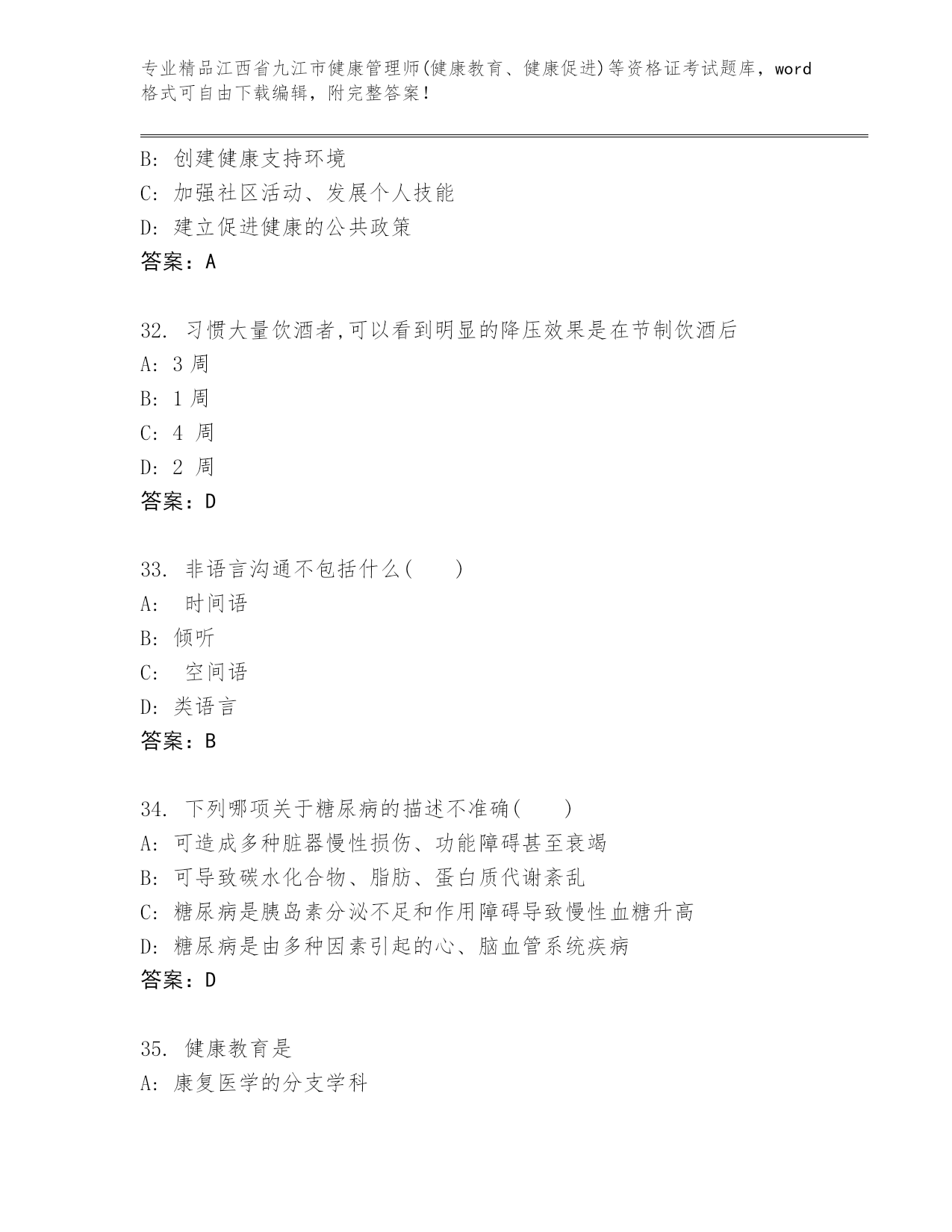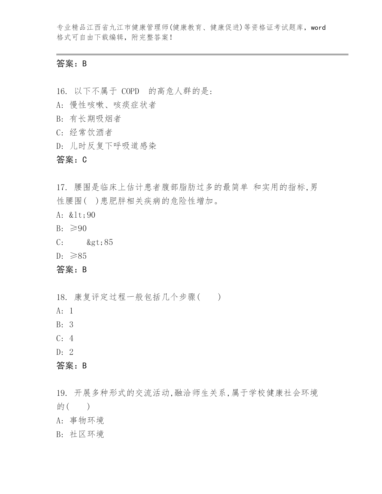 精心整理江西省九江市健康管理师(健康教育、健康促进)等资格证考试内部题库含答案【实用】