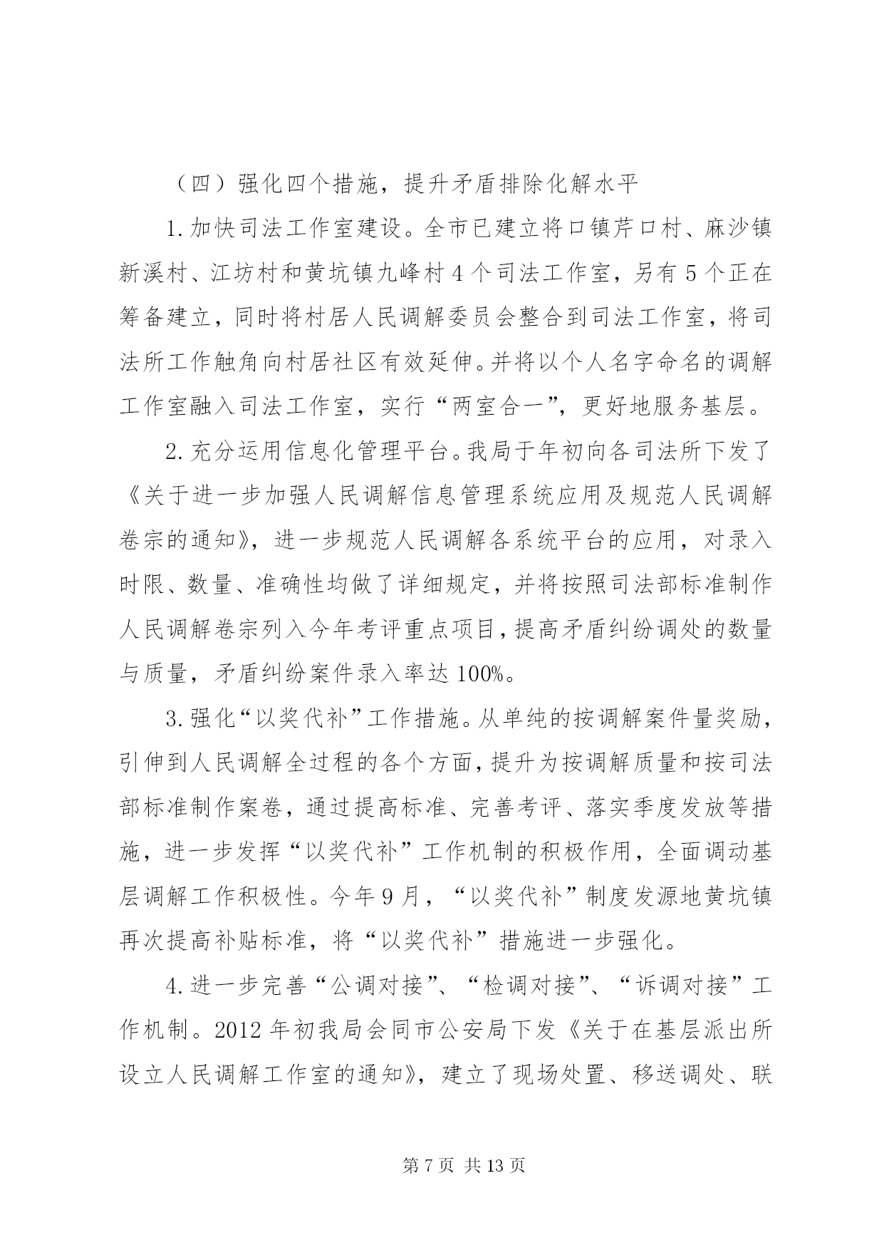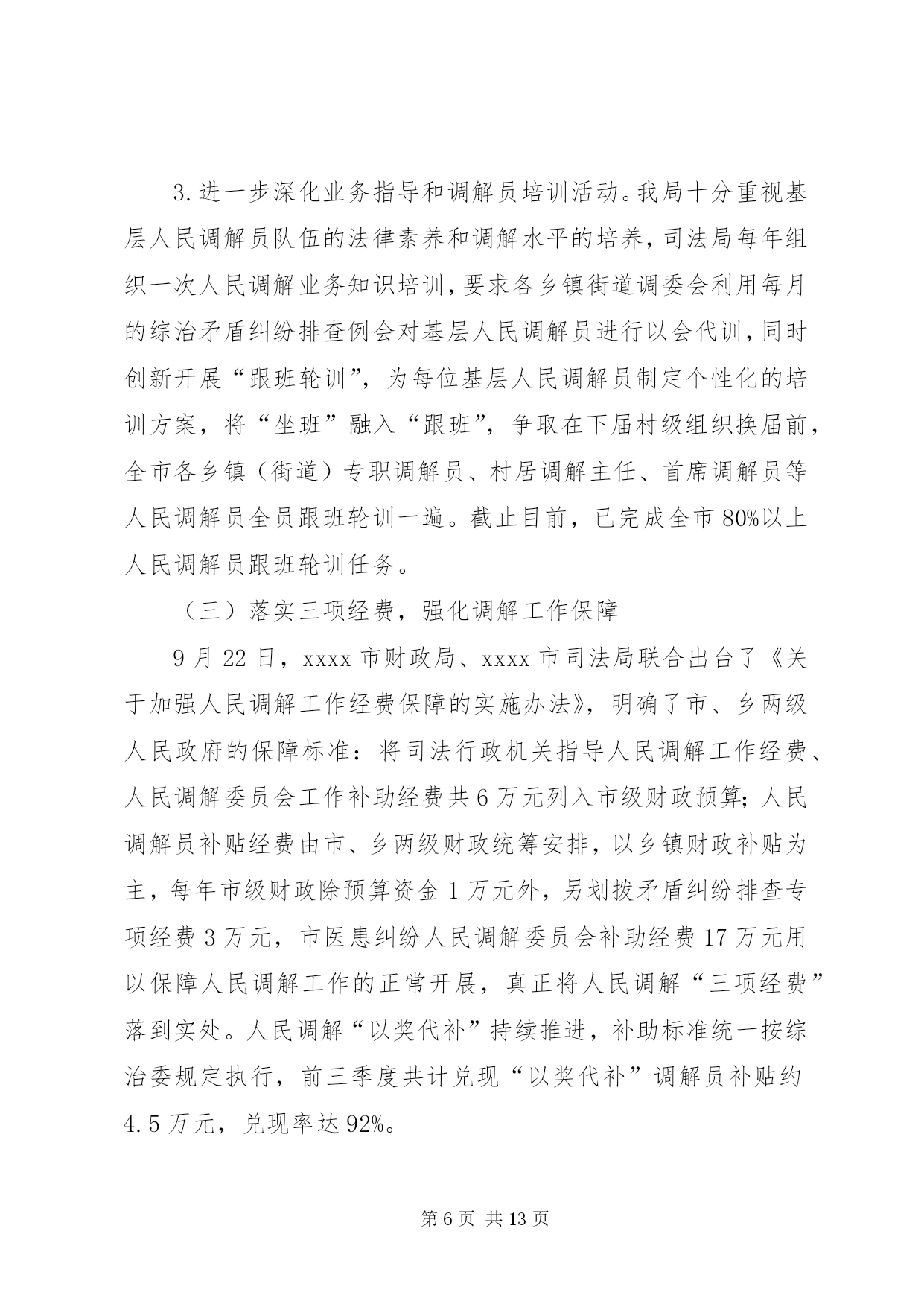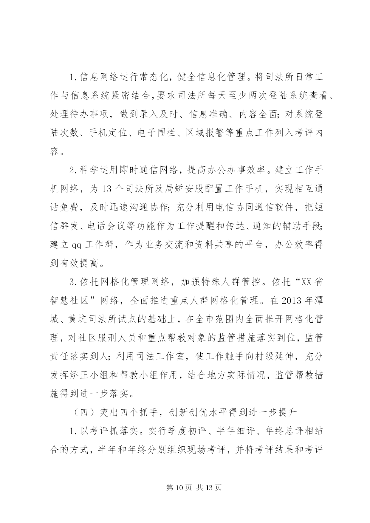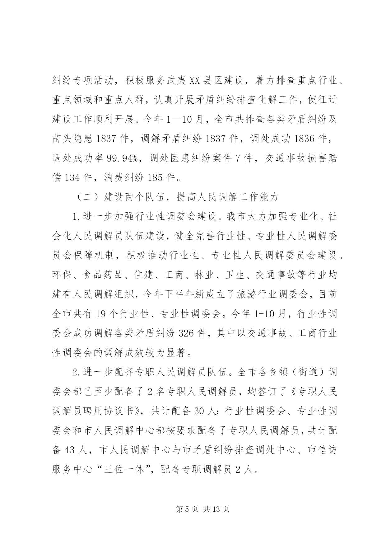 第PAGE\*Arabic\*MERGEFORMAT13页共NUMPAGES\*MERGEFORMAT13页司法局综治工作总结xxxx年来,在xxxx市委、市政府的正确领导下和省司法厅、XX市司法局的关心指导下,xxxx市司法局坚持以党的十八大和十八届三中全会精神为指导,深入开展党的群众路线教育实践活动,进一步开展“法律服务到一线,司法行政促发展”主题实践活动,围绕“基层基础,务实落实,创新创优”的目标要求,以服务武夷XX县区建设和xxxx科学发展、跨越发展为核心,夯实基础、服务大局、保障民生,充分发挥司法行政职能,各项工作都取得了明显成效。现将一年来综治工作情况汇报如下:一、抓规范,强保障,基层基础工作进一步夯实(一)围绕一个中心,全面开展司法行政工作xxxx市司法局整合法律服务资源,突出工作特色,不断推动司法行政工作服务武夷XX县区建设和xxxx经济社会和谐发展,提升人民群众对司法行政工作的认可度和满意度,提升我市司法行政工作服务市委、市政府中心工作的水平。一是在人手不足的情况下,我局坚决服从市委、政府安排,局机关抽调局长和两名副局长、基层司法所抽调两名所长,共计5名精干人员到武夷XX县区和市重点项目开展工作;二是积极配合武夷XX县区开展打击“两违”工作,参与打击“两违”行动共12人次,并安排公证处工作人员进行违章建筑拆除前的证据保全公证,确保打击“两违”工作法律服务到位;三是积极参与市委、政府“大接访”和“矛盾纠纷大调解”活动,安排3名律师和6位司法所长担任市政府专任信访评议员,指派律师和法律服务工作者参与接访、化解纠纷,全力支持信访维稳工作;四是组建征地拆迁法律服务组主动服务征迁工作。成立以局长为组长,分管领导任副组长,精干律师等为成员的征地拆迁法律服务组,排班进驻童游新村万达项目征迁现场,为XX县区建设提供法制宣传、矛盾纠纷调处和法律服务。自3月27日服务组成立以来,共解答拆迁法律咨询870余人次,调解矛盾纠纷92件,做到让群众带着疑惑而来,带着满意而归。其中一宗苏某福母子叔伯兄妹间当事主体25户、近百人的遗产分配与赡养纠纷,关系复杂、人数众多、涉及面广,法律服务组及时抽调优秀的调解员、律师和法律工作者,不分节假日连续“作战”,成功将案件调解,有效的维护了当事人利益,为征迁工作扫除了障碍,得到了相关领导的赞赏。(二)加快两个建设,夯实基层工作基础1.全面推进规范化司法所建设。严格按照省厅“六化”标准,进一步精心部署司法所规范化建设工作。2月19日,组织部分基层所长、助理员到XX县区司法局参观学习,在小湖、水吉和回龙三个司法所开展试点,推进全市基层司法所规范化创建活动。4月18日,xxxx市召开全市司法所规范化建设现场会,4月29日,XX市司法局在我市召开司法所规范化建设暨社区矫正工作现场推进会,5月,邵武、建瓯、武夷山、浦城等县市组队到我市考察交流。通过走出去、引进来,以点带面纵深推进,全市基层司法所规范化创建水平进一步提升。2.加快司法业务用房建设。高标准推进司法所业务用房建设工作,回龙、水吉、小湖、黄坑等新建(含购置)的司法所已全部投入使用,并全部达到规范化司法所标准。潭城司法所与局机关业务用房合建,目前已建至14层,预计12月初封顶;童游、莒口司法所正进行装修,年内可投入使用;漳墩司法所与邮政支局合建,已基本完成招投标前期手续,争取年内动工建设,将口司法所将结合该镇便民服务中心建设,实行业务用房置换,届时全市司法所业务用房将全部为新建房,进一步提升各基层司法所整体业务水平和服务水平,更好地履行“为一方服务,保一方平安,促一方繁荣”的职责。(三)着力三项保障,提供坚实后盾1.加强基层队伍保障。努力提高助理员编制使用率,多渠道配齐副科级所长,积极聘用辅助人员,我局司法助理员编制31名,目前使用30名,使用率达97%;副科级所长12人,配备率达92%,每个司法所都有1名以上专职司法协理员及2名以上专职人民调解员,其中童游司法所有2名专职司法协理员。我局将继续通过本岗位提拔、市直和乡镇机关提任、公务员考试招考等多种渠道配齐配强司法行政队伍。2.加强经费保障。司法所定额专用经费达到省上标准,同时,市局严格落实《xxxx市基层司法所业务经费保障暂行办法》,实行绩效管理,将业务经费保障与工作量和工作业绩挂钩,合理分配基层所经费,并确保业务经费逐年增长。3.加强装备保障。做到办公电脑人手一台,政务内、外网和互联网做到专网专机专用,办公设备配套齐全,档案管理装备由市局统一订购、统筹安排。省厅配备的执法执勤用车全部配给司法所足额使用,并从机关公务用车中调整1辆给司法所使用,目前13个基层司法所有7个所配备了执法执勤用车,履职能力明显提高。同时,规范执法执勤用车管理,出台《执法执勤用车管理使用暂行办法》,要