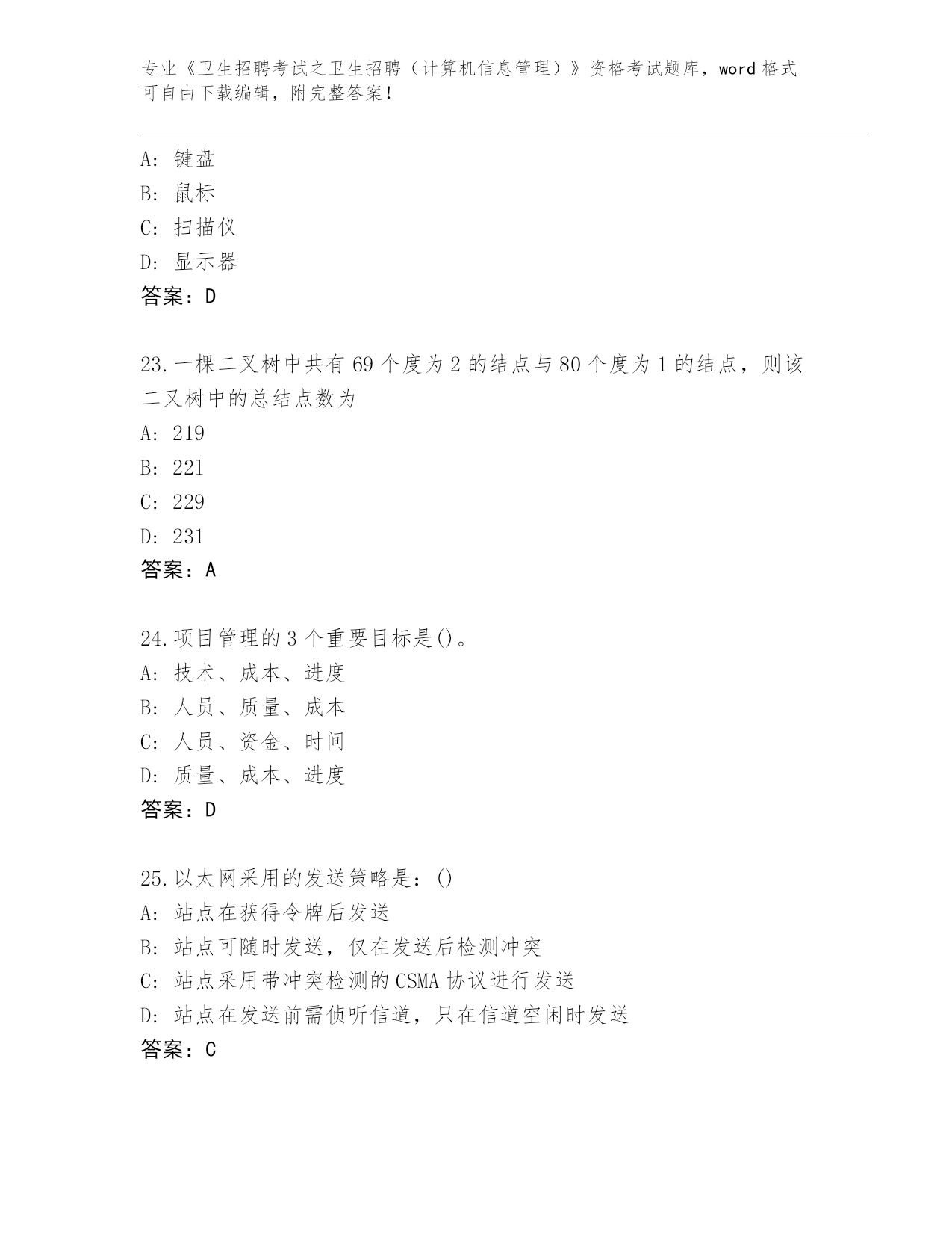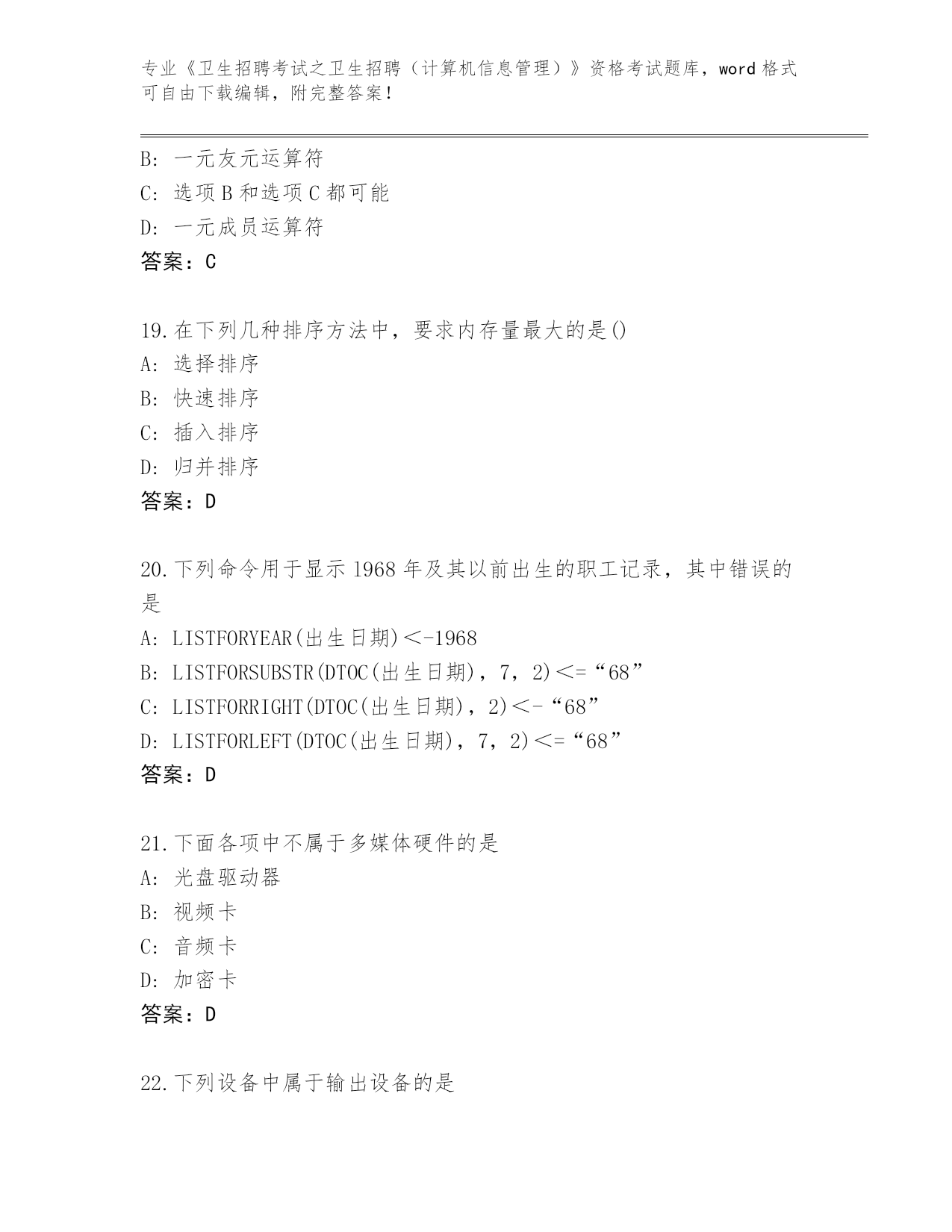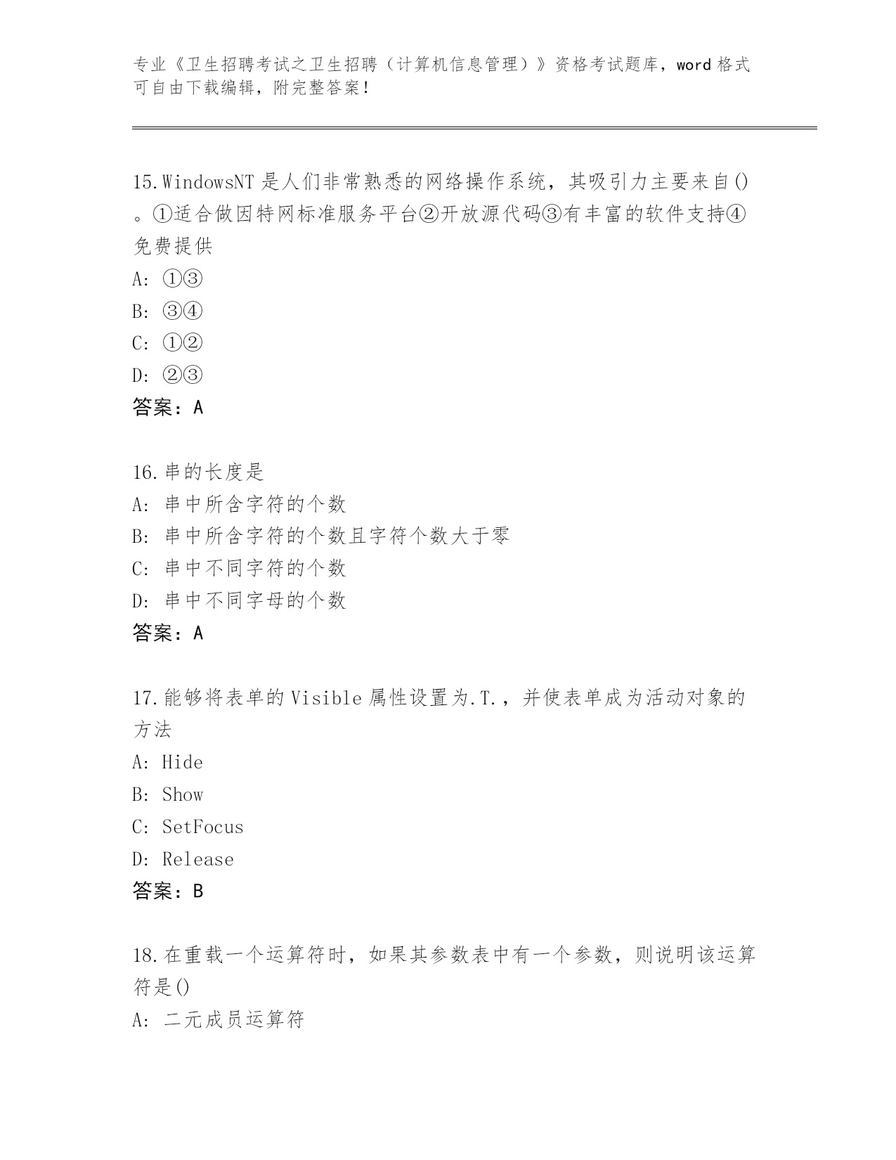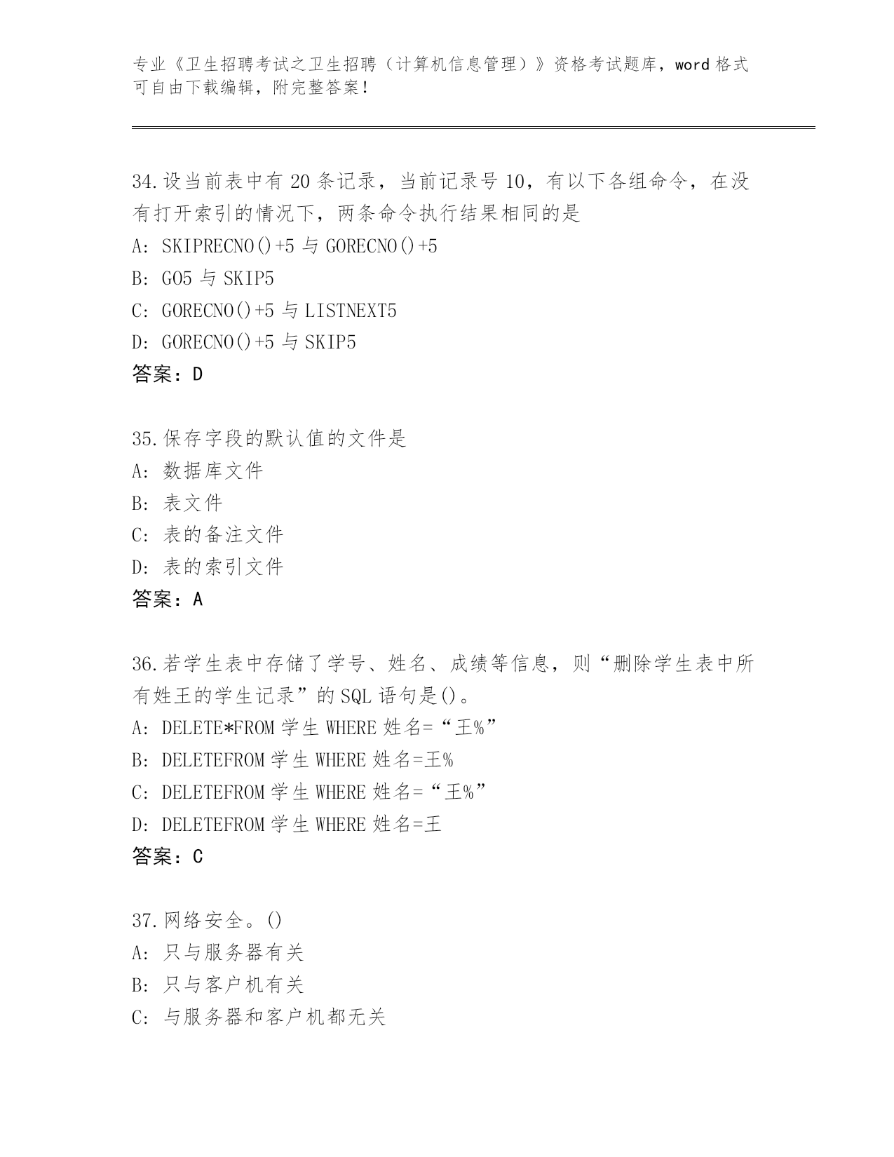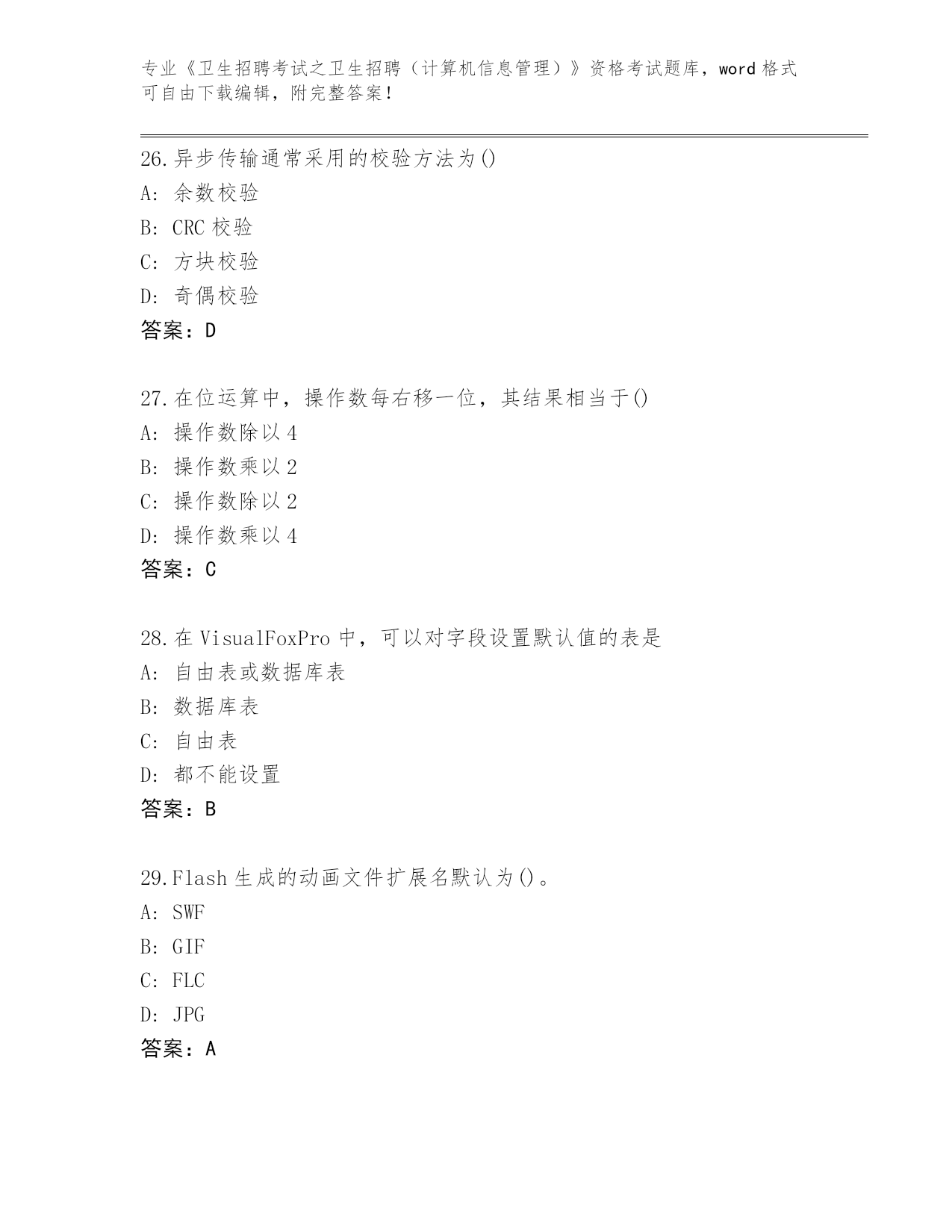 2024年安徽省大观区《卫生招聘考试之卫生招聘(计算机信息管理)》资格考试王牌题库含答案下载
