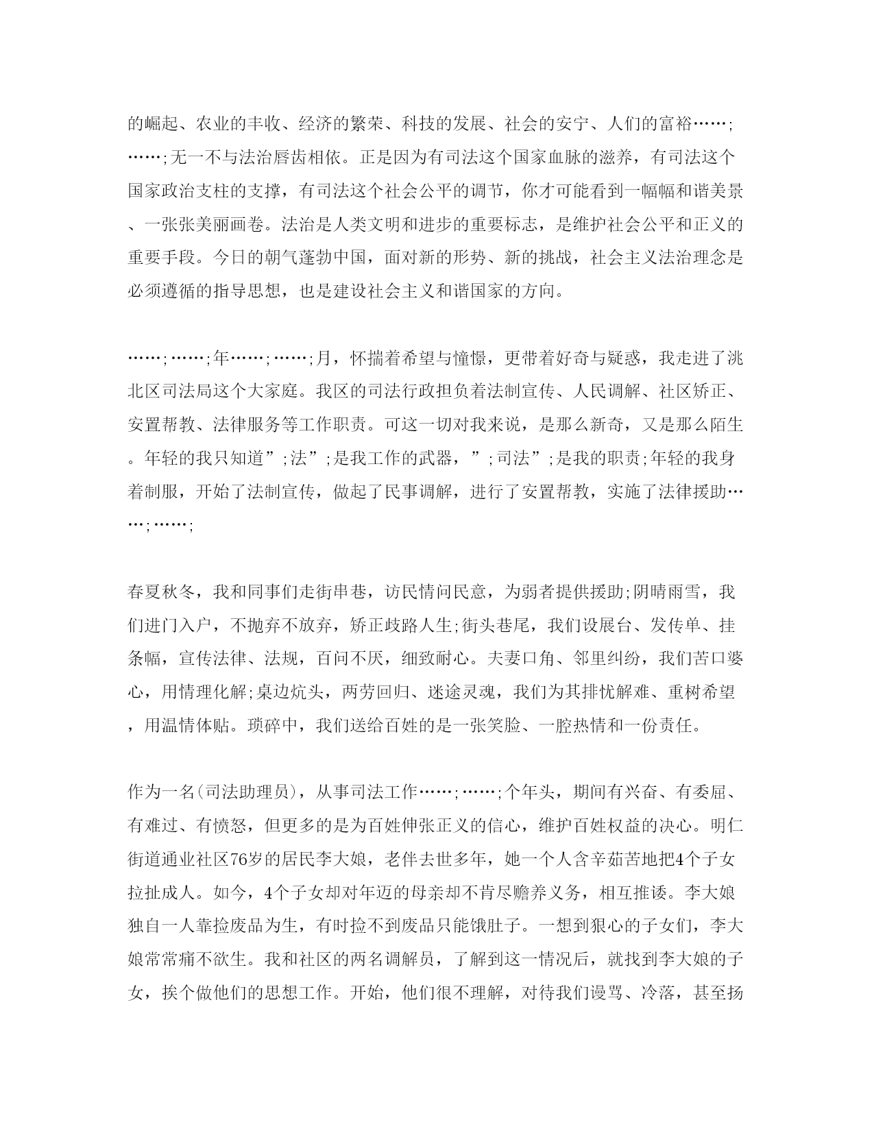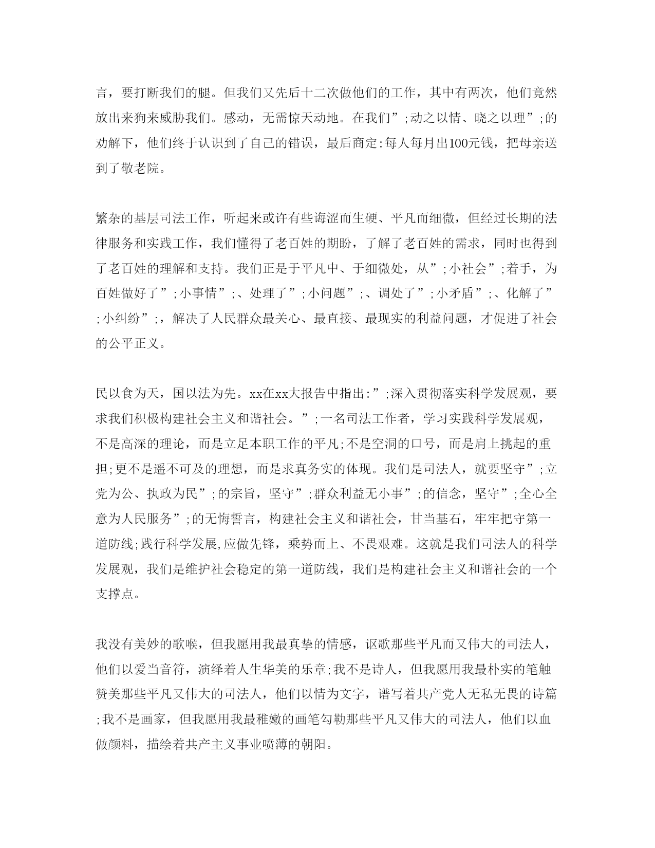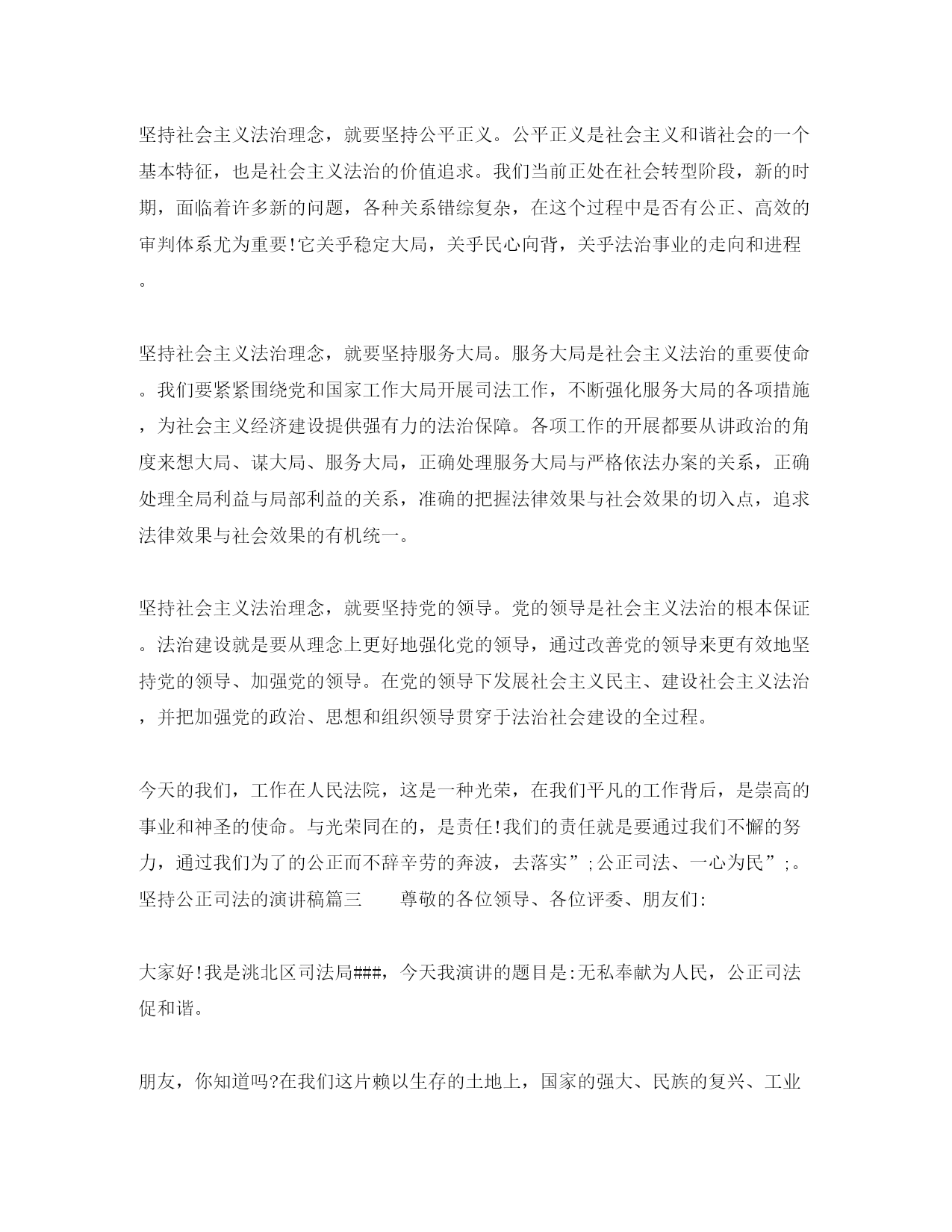 此资料由网络收集而来,如有侵权请告知上传者立即删除。资料共分享,我们负责传递知识。坚持公正司法的演讲稿演讲稿是演讲者为演讲活动撰写的文稿,其质量的高低直接影响着演讲的成败。下面是小编为你整理的几篇坚持公正司法的演讲稿,希望能帮到你哟。坚持公正司法的演讲稿篇一各位领导、各位同志:今天我演讲的题目是”;树立理想、坚定信念,为司法公正事业不断奋斗!”;今天在这里向大家演讲,我心中有很多感慨,就在短短的一年前,我还只是一名在社会上为了自己的前途努力奋斗的青年,而今天,我已经作为一名光荣的法院干警,胸前佩戴着光荣的天平标志,同大家一起探讨树立司法理念、维护司法公正这些宏大的命题,前后对比,感觉时间仿佛就像河流,我们每个人都在这不断流逝的河流中寻求符合我们自身的位置和立场,同时,我们每个人也应该不断的自觉寻求适合自己的位置和立场。经过在法院一年来的学习和实践,今天,我可以自豪的说,我已经找到了自己的位置和立场,那就是:”;时刻牢记自己是社会主义国家宪法和法律的执行者和实践者,牢固树立起社会主义的司法理念,不断完善自身的修养,为追求实现最大的公平正义而奋斗终身!”;。今年以来,全国政法系统都在开展”;树立社会主义法治理念”;教育活动,”;理念”;一词,其实是一个哲学名词,指在理性领域内的观念,简单的说,就是从实践中产生的超越了经验而形成的概念。从我自己的角度,我更加相信,社会主义法治理念就是我们每一个社会主义国家的执法者在执法活动中应当秉持的理想和信念,这个理想和信念,也就是党中央和中央政法委在这次社会主义法治理念中提出的必须树立起的”;依法治国、执法为民、公平正义、服务大局、党的领导”;理想和信念。这种理想和信念,对于我们达成”;公正与效率”;的人民法院世纪工作主题,具有十分重大的意义:伟大的俄罗斯作家托尔斯泰曾经说过:”;理想是明灯,没有明灯,就没有方向,没有生命”;。这句话正好完美的阐述了我们作为当代中国的司法工作者树立起远大的理想的重要性,如果我们每天只是庸庸碌碌的把工作当作自己谋生的饭碗,把自己的工作等同于蚂蚁找寻食物般的日常事务,缺乏相应的使命感和责任感,那么我们相信,在我们的队伍中不会产生默默奉献、舍身求法的蒋庆,不会产生辨法析理、胜败皆服的宋鱼水,不会产生扎根基层,一心为民的金桂兰,也不会在我们遵义法院系统内,短短的十年中连续涌现出祝吝宗、周其贵两位获得全国一等功表彰的先进典范。我们也看到,正是有了追求司法公正的不懈理想,我们身边正不断发生着种种感人的事迹,我看到有的法官常年坚持白天坐堂问案,晚上把厚厚的卷宗抱回家拟写法律文书;我看到有的同志不管是大年三十,还是清晨三点,坚持守候在被执行人的门口,只为了案件能够顺利地执行到位;我看到有的同志面对来访群众的怒气和怨气,把道理掰开来揉细了仔细的解释,照顾群众无微不至,自己却整天想不起吃饭喝水;我看到每到晚上,法院总有几个窗户的灯光,亮到深夜仍然放着光芒,照着那些精研法理的身影。是啊,一幕幕这样的情景,我们每一个法院的同志再熟悉不过,只是我们以往并没有深思,为了什么会有这样默默奉献的法官和法院工作人员,为什么会有这些看似平凡,却总能感动人的事情屡屡发生,我想,他们都是在为了自己的理想而奋斗、而奉献,是因为他们把建设社会主义的法治国家当作自己的毕生的理想。正是这些普普通通的事例教育了我,使我从一个原来曾经相信法院工作只是”;一杯茶、一张报、过一天”;,曾经怀疑”;盘盘帽、两头翘,吃了原告吃被告”;是否属实的简单青年,逐步变成了一个对于法制建设理念坚信不疑的法院工作者,变成一个把司法公正作为自己最高追求的法律人,变成一个逐步形成了远大的司法建设理想的光荣的法律人。当然,只有远大的理想是不够的,我们还应当看到离真正树立社会主义法治理念、实现社会主义法治的远大目标还有很多的艰难和阻隔,所以必须树立起坚定的信念。这个信念,首先是要有树立起正气,孟子说:”;吾善养吾浩然之气”;,文天祥则在他的《正气歌》中说:”;天地有正气,杂然赋流形。下则为河岳,上则为日星。于人曰浩然,沛乎塞苍溟”;。只有我们在心中培养出了坚持司法公正的信念,真正树立起了”;依法治国、执法为民、公平正义、服务大局、党的领导”;的正气,我们才能在每一次的执法活动中都坚持做到凛然正气,勇敢的排除各种阻挠和抗拒行为,作出符合党和人民需要的司法行为,为人民司法事业的不断前行打下坚实的基础。其次,我们要有长期坚持、不断努力的信念,没有一座大厦能够在一夜之间建起,同样,社会主义法治的事业同样需要我们长期的努力。只要我们认准了前进的方向,就要不懈的坚持。可能有的同志说,就算我再怎样努力,真正把社会主义法治理念贯彻到全社会每一个角落去,也不是我可以完成的任务,是啊,我们每一个人的能力都是渺小的,但是,我们的努力却绝不会是白费