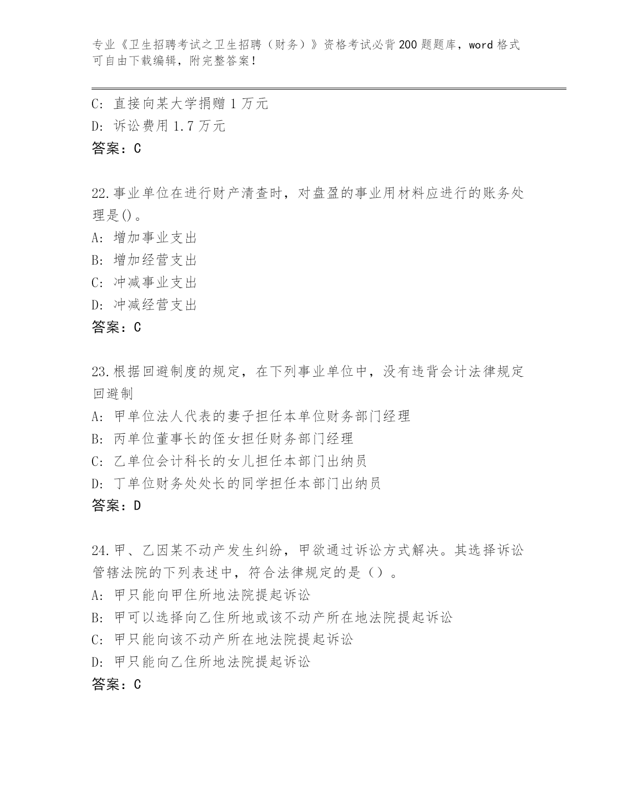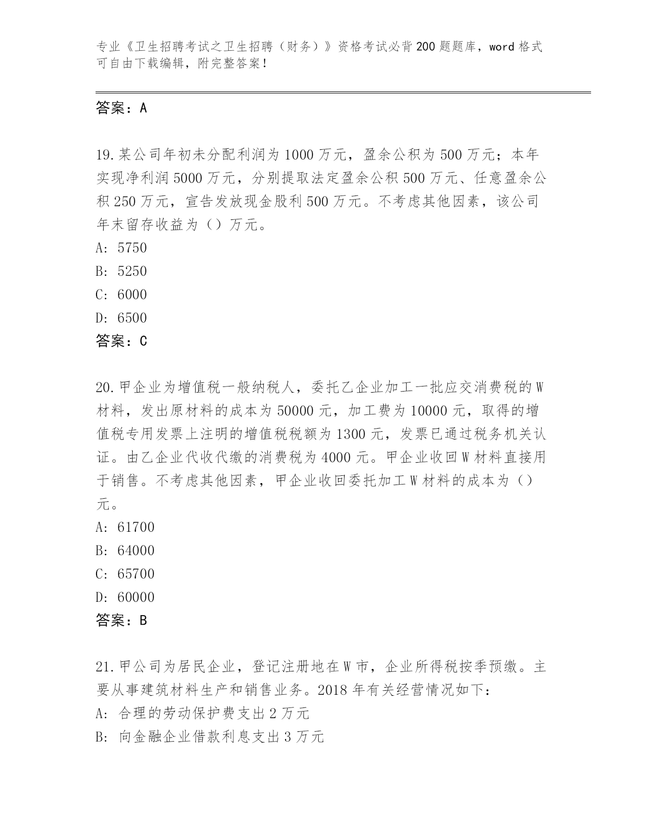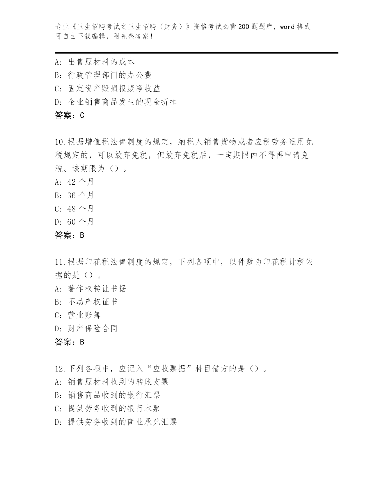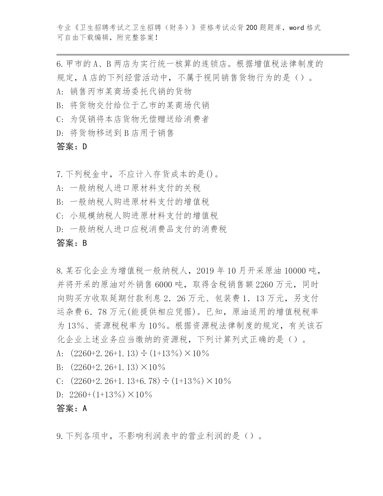 历年甘肃省岷县《卫生招聘考试之卫生招聘(财务)》考试必背200题内部题库精编答案