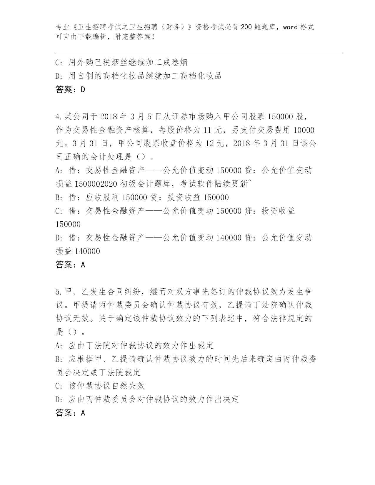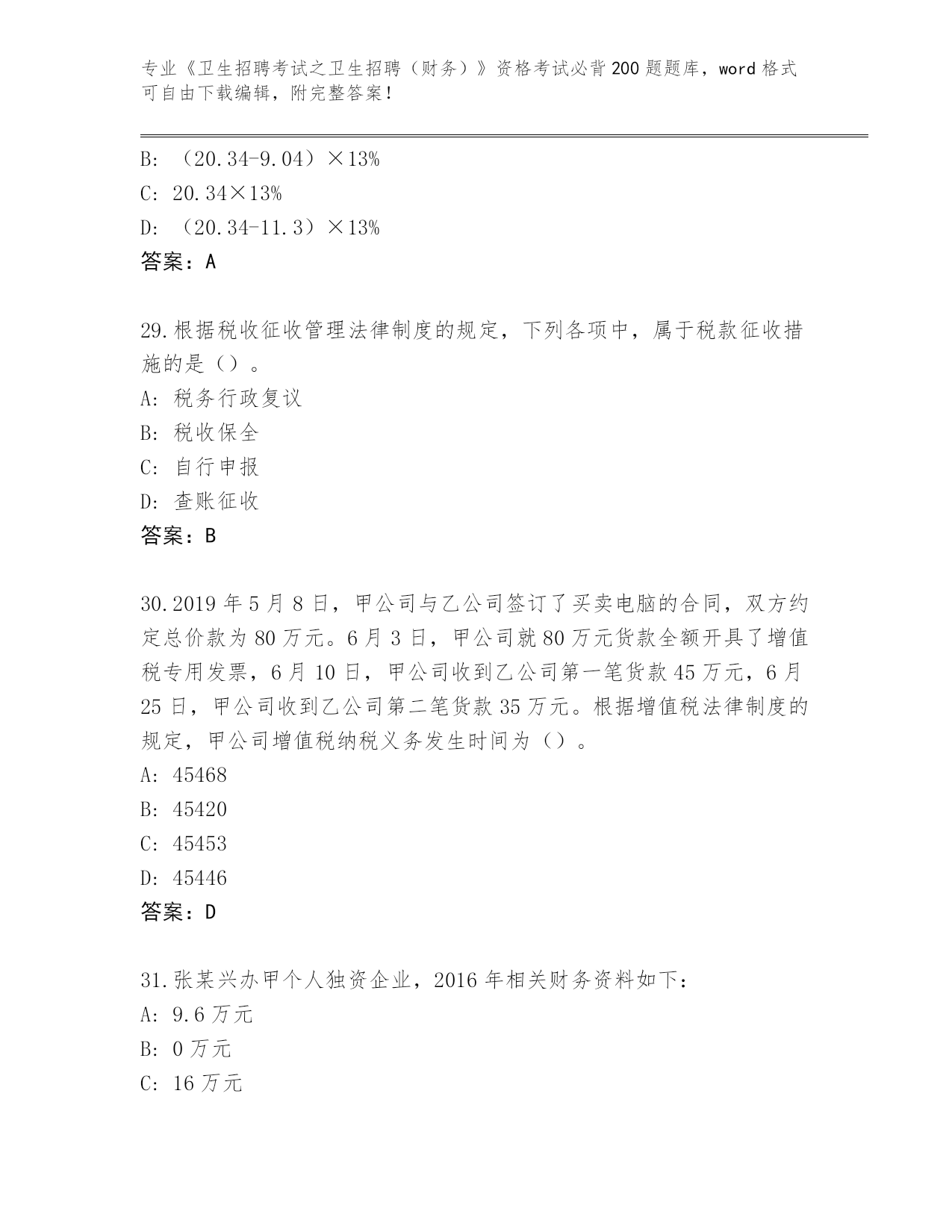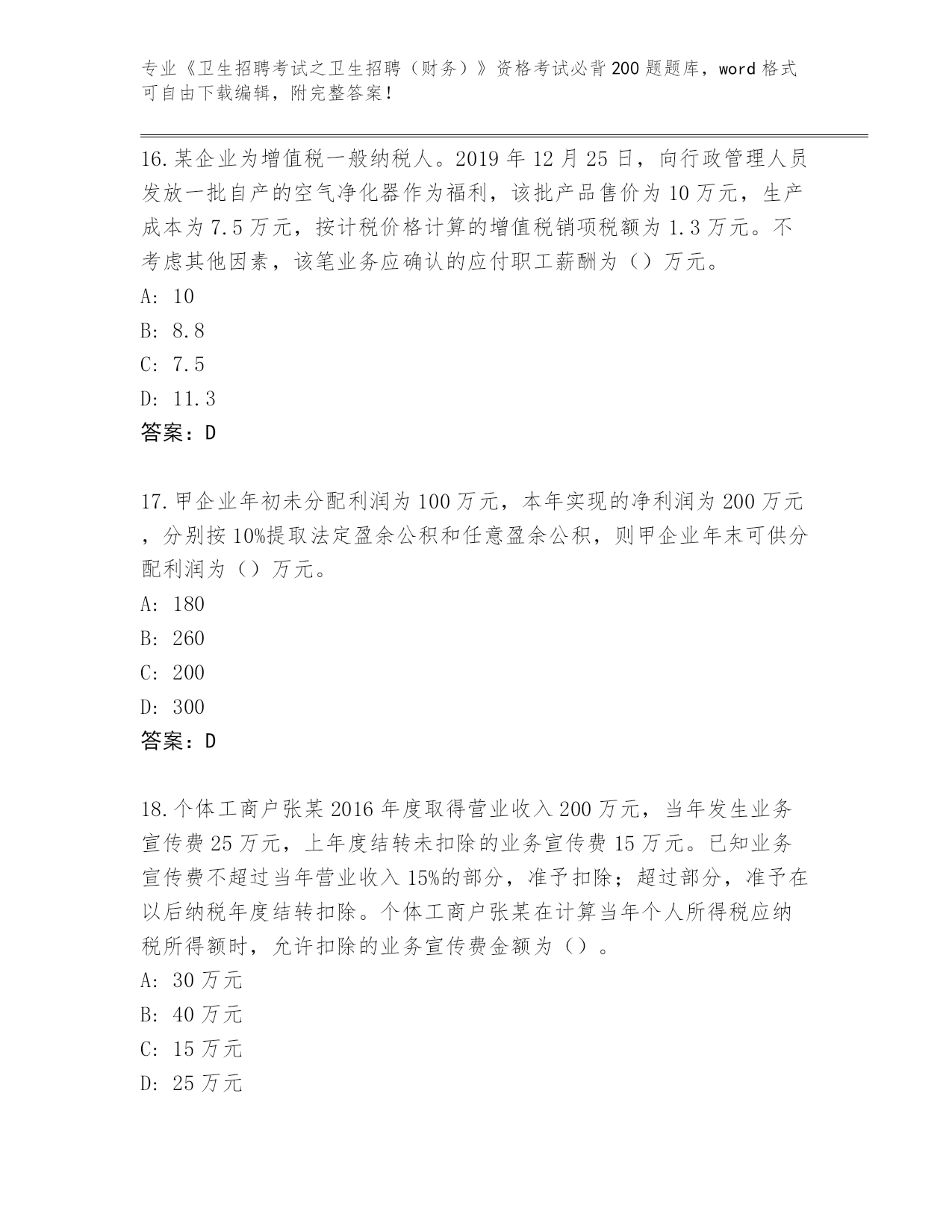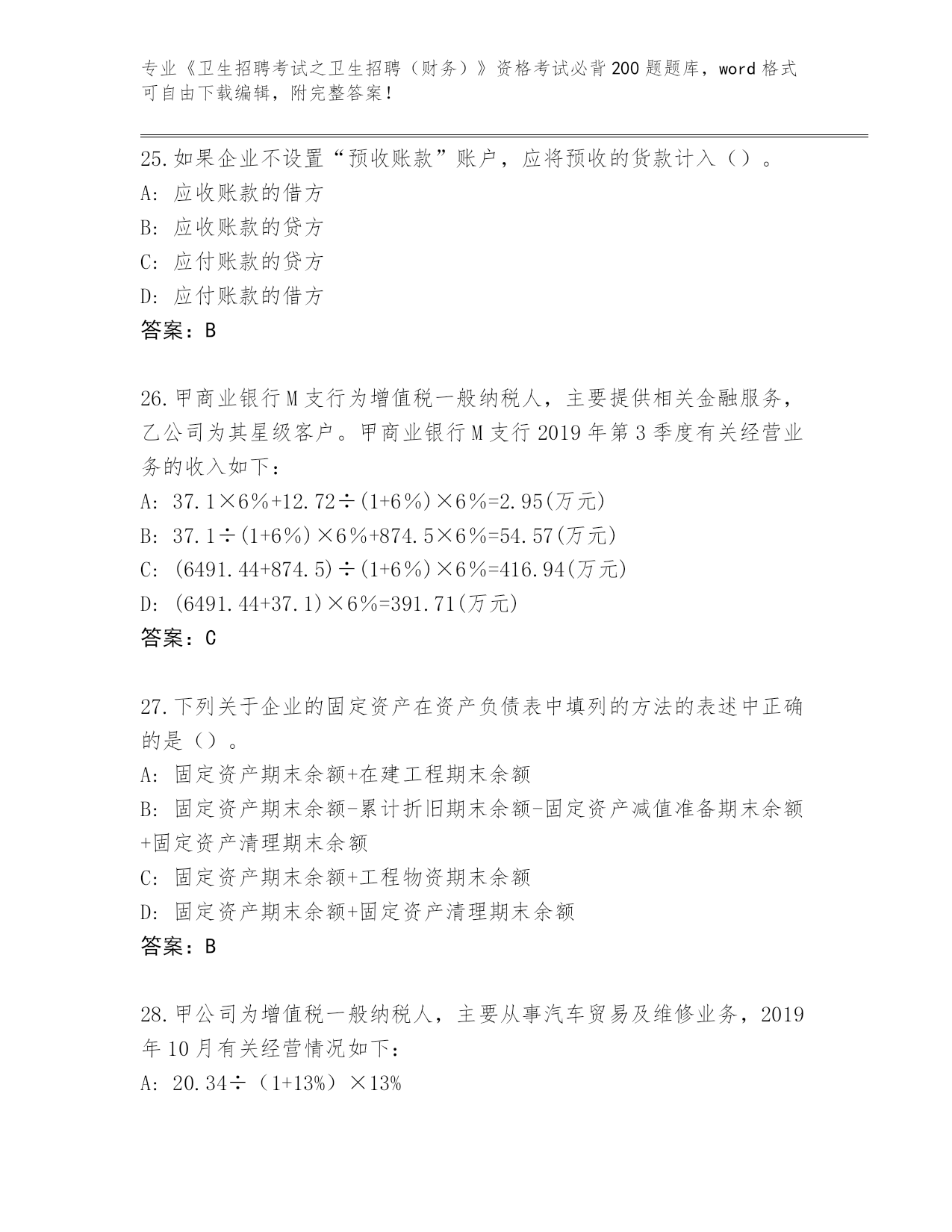 历年甘肃省岷县《卫生招聘考试之卫生招聘(财务)》考试必背200题内部题库精编答案