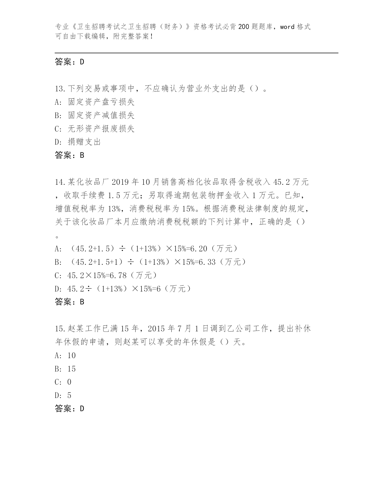 历年安徽省《卫生招聘考试之卫生招聘(财务)》资格考试必背200题大全(原创题)