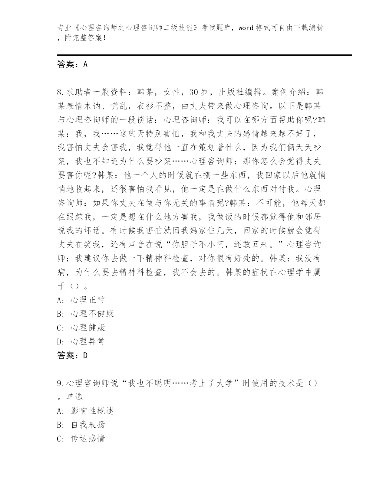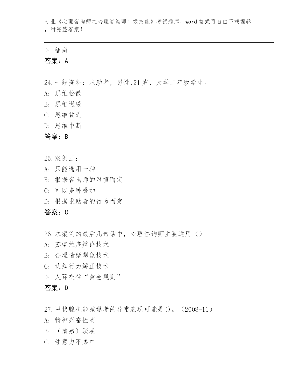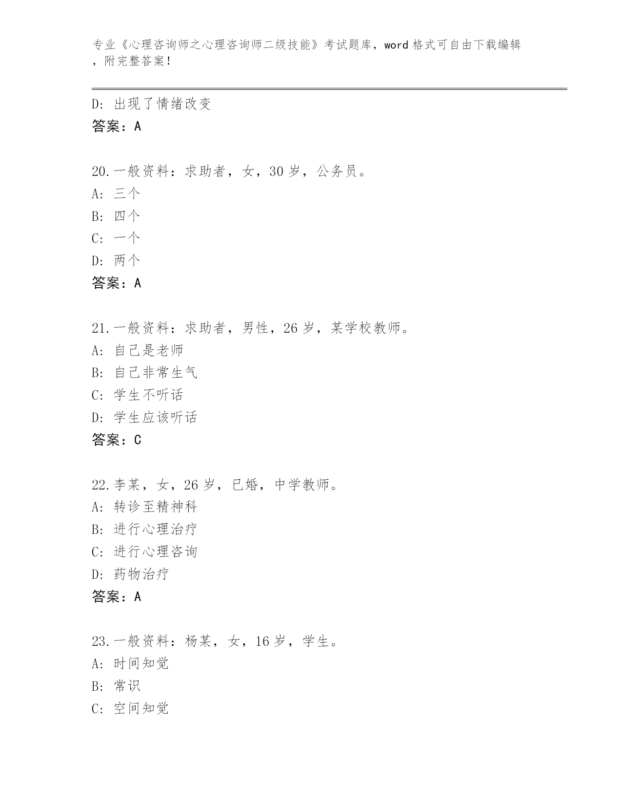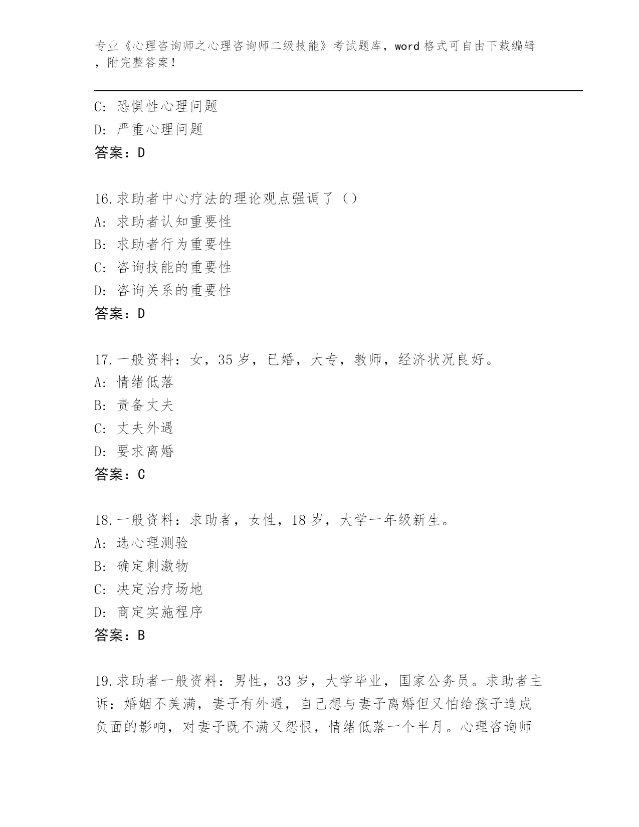 广东省端州区2024年《心理咨询师之心理咨询师二级技能》考试大全(名师推荐)