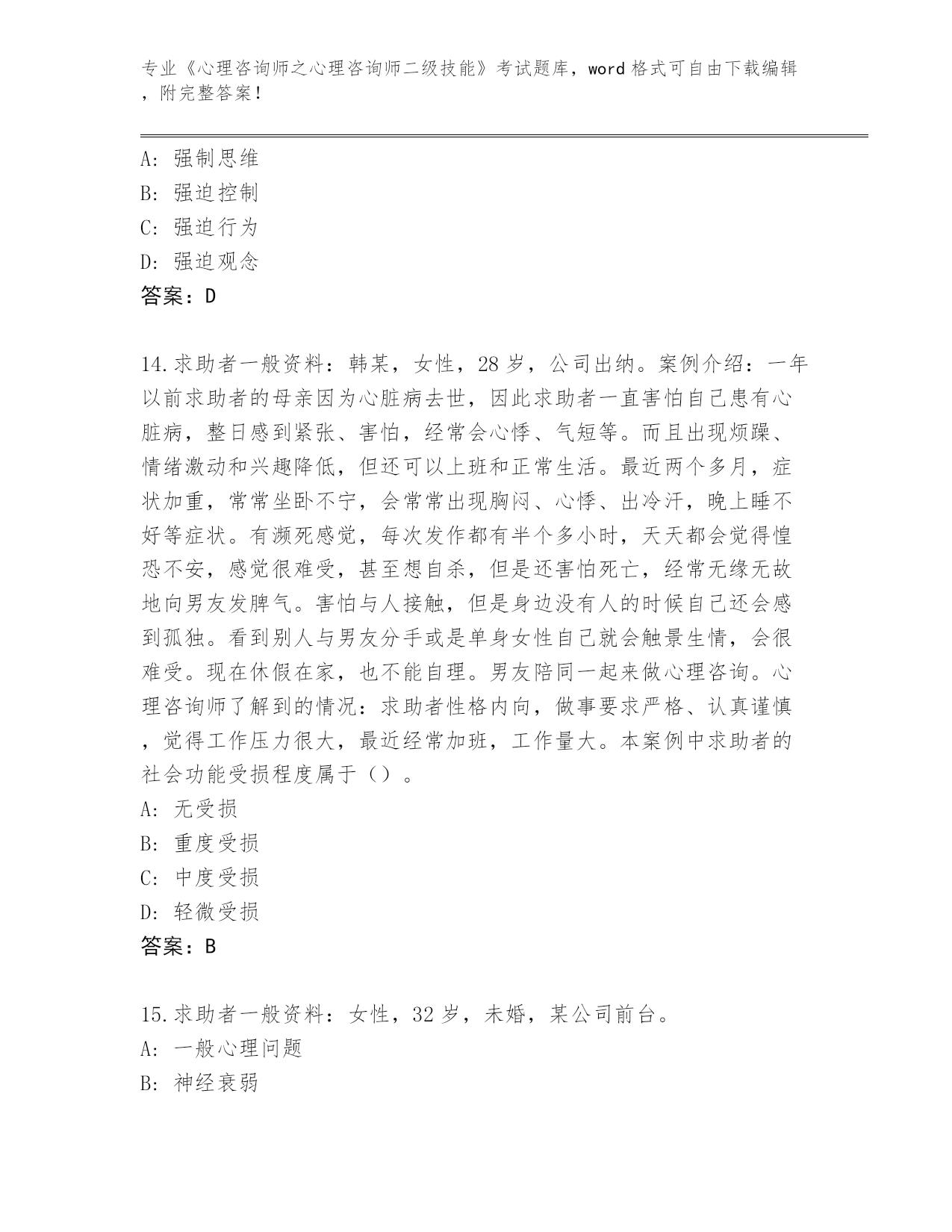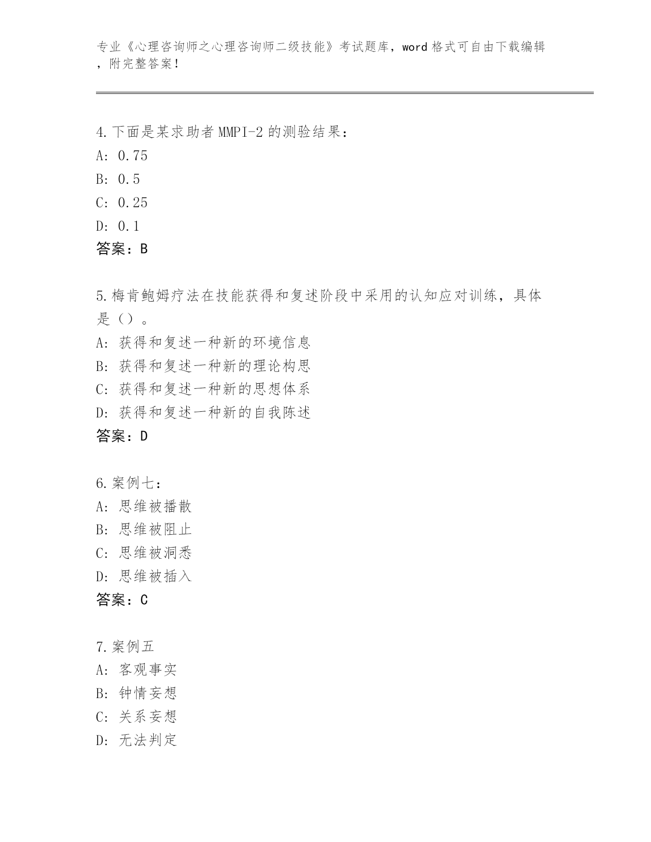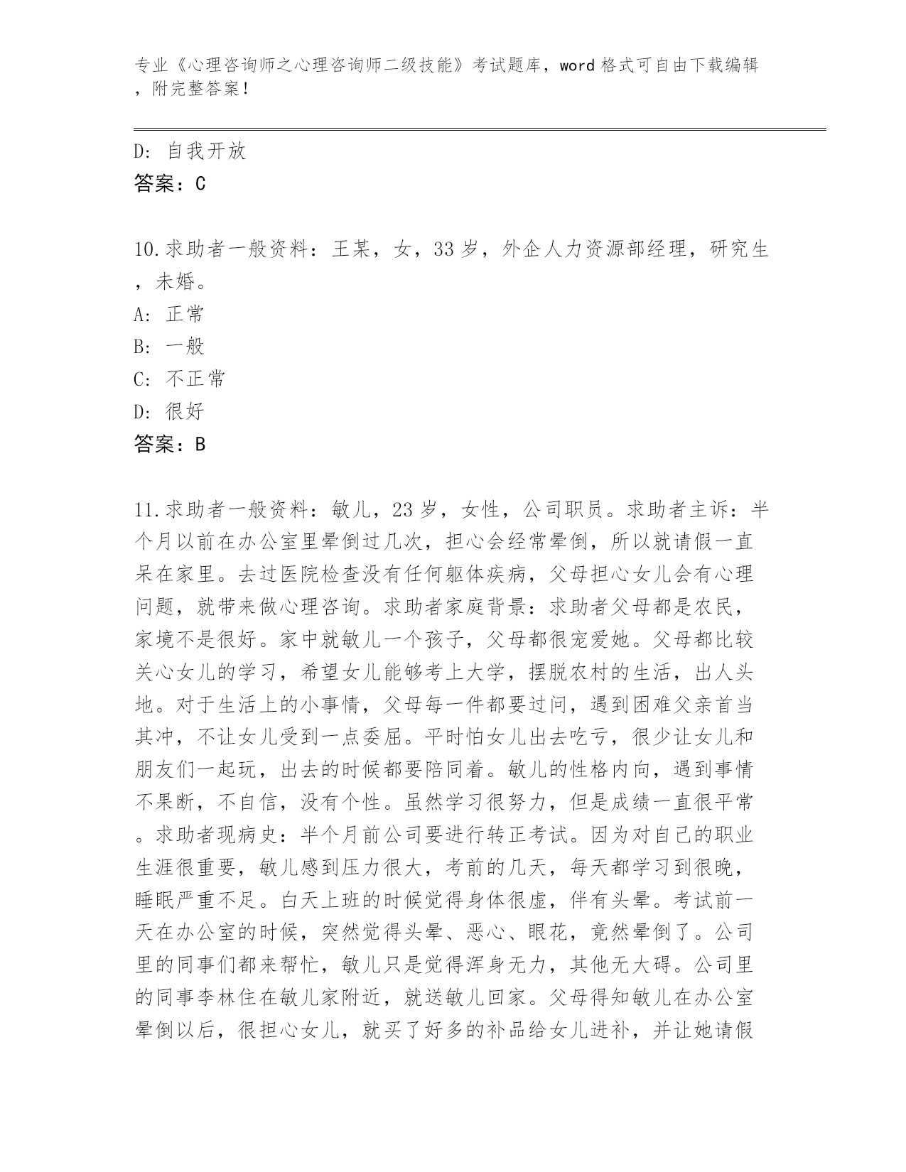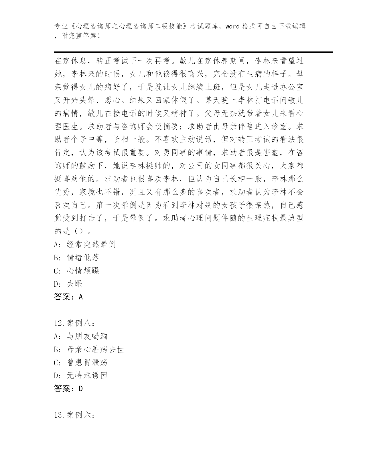 广东省端州区2024年《心理咨询师之心理咨询师二级技能》考试大全(名师推荐)