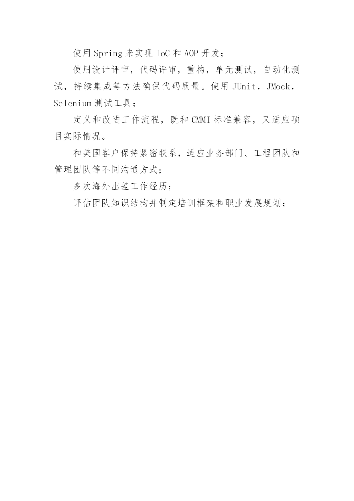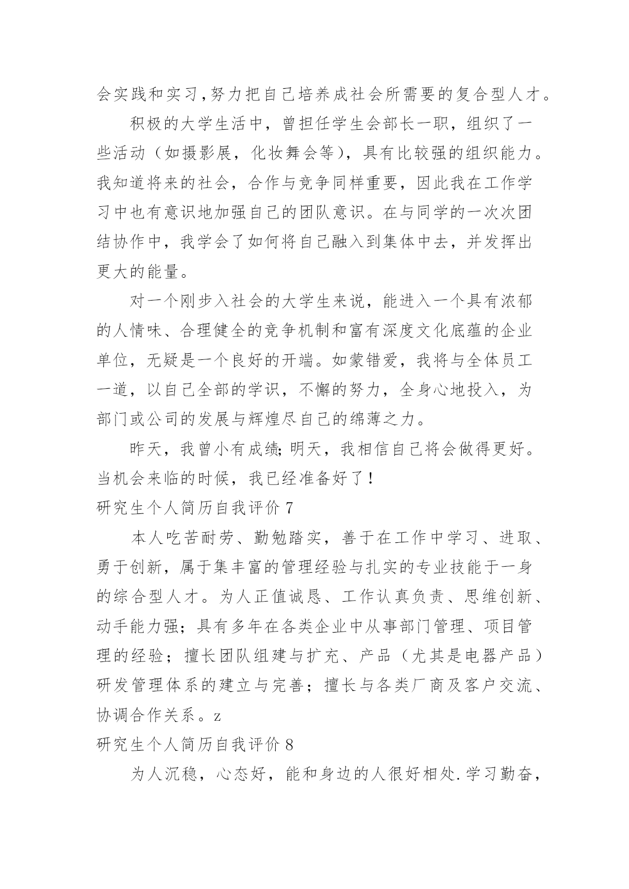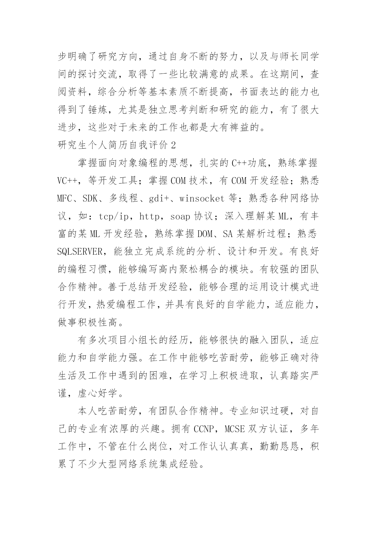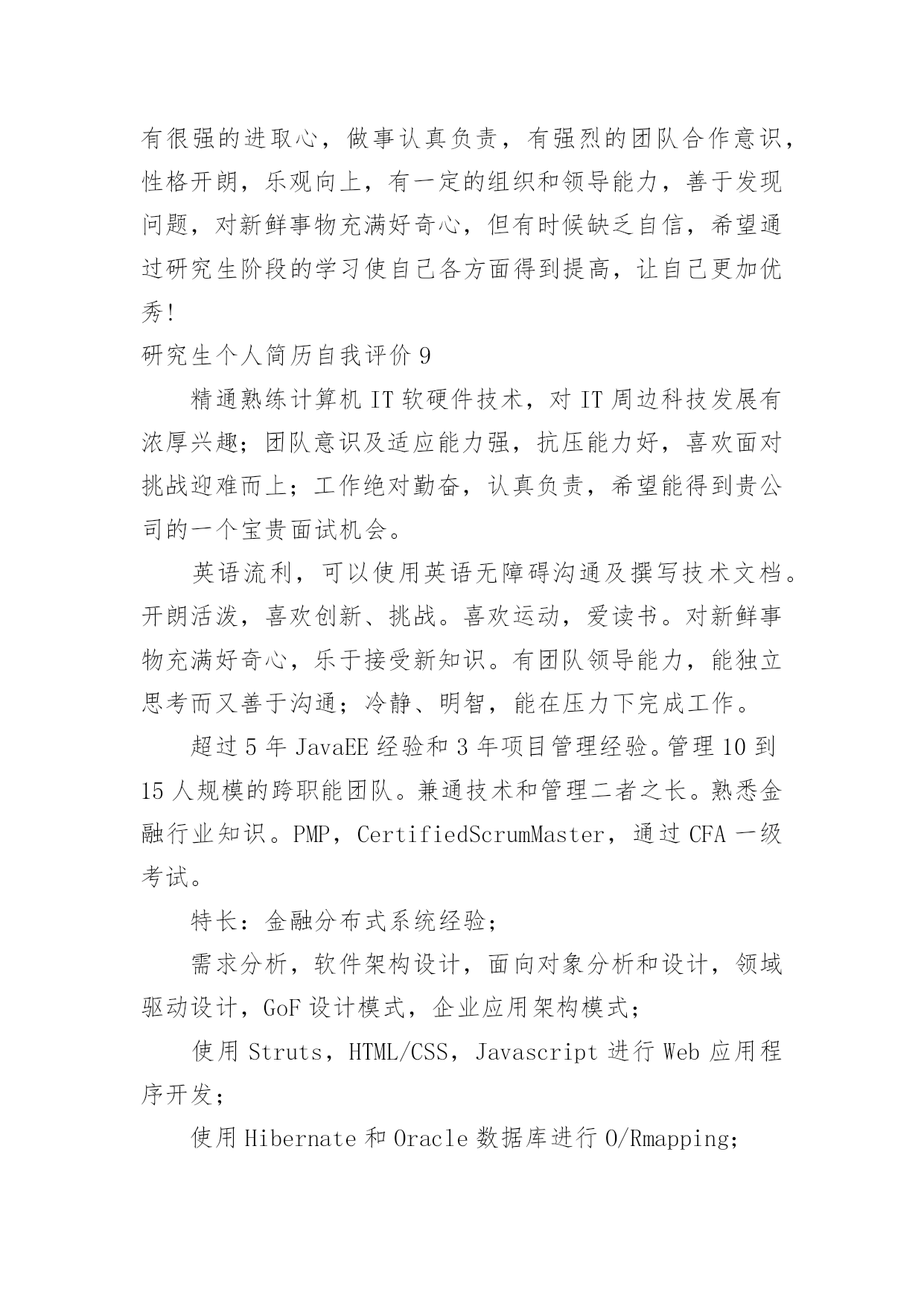 研究生个人简历自我评价研究生个人简历自我评价光阴如水,新一轮的招聘又朝我们走来,让我们一起来学习写简历吧。相信写简历是一个让许多人都头痛的问题,以下是小编精心整理的研究生个人简历自我评价,欢迎大家借鉴与参考,希望对大家有所帮助。研究生个人简历自我评价1本人作为研究生在复旦大学数学所攻读计算数学专业近三年,毕业之际,回顾三年来的学习、工作以及生活,做自我鉴定如下:本人在思想觉悟上始终对自己有较高的要求,能用科学发展观来认识世界认识社会,能清醒的意识到自己所担负的社会责任,对个人的人生理想和发展目标,有了相对成熟的认识和定位。在专业课程的学习上,根据自身研究方向的要求,有针对性的认真研读了有关核心课程,为自己的科研工作打下扎实基础;并涉猎了一部分其他课程,开阔视野,对本研究方向的应用背景以及整个学科的结构有了宏观的认识。学习成绩也比较理想。在外语方面,研究生阶段着重加强了书面写作的训练,并取得了一定效果。在科研工作上,根据导师的指导,研读了大量论著,逐步明确了研究方向,通过自身不断的努力,以及与师长同学间的探讨交流,取得了一些比较满意的成果。在这期间,查阅资料,综合分析等基本素质不断提高,书面表达的能力也得到了锤炼,尤其是独立思考判断和研究的能力,有了很大进步,这些对于未来的工作也都是大有裨益的。研究生个人简历自我评价2掌握面向对象编程的思想,扎实的C++功底,熟练掌握VC++,等开发工具;掌握COM技术,有COM开发经验;熟悉MFC、SDK、多线程、gdi+、winsocket等;熟悉各种网络协议,如:tcp/ip,http,soap协议;深入理解某ML,有丰富的某ML开发经验,熟练掌握DOM、SA某解析过程;熟悉SQLSERVER,能独立完成系统的分析、设计和开发。有良好的编程习惯,能够编写高内聚松耦合的模块。有较强的团队合作精神。善于总结开发经验,能够合理的运用设计模式进行开发,热爱编程工作,并具有良好的自学能力,适应能力,做事积极性高。有多次项目小组长的经历,能够很快的融入团队,适应能力和自学能力强。在工作中能够吃苦耐劳,能够正确对待生活及工作中遇到的困难,在学习上积极进取,认真踏实严谨,虚心好学。本人吃苦耐劳,有团队合作精神。专业知识过硬,对自己的专业有浓厚的兴趣。拥有CCNP,MCSE双方认证,多年工作中,不管在什么岗位,对工作认认真真,勤勤恳恳,积累了不少大型网络系统集成经验。研究生个人简历自我评价3作为学生我从不放松学习,在上研第一年,我修完了导师指定的各门研究生课程,总学分达到了研究生培养计划的要求,成绩优秀。另外我还参加了教学,带本专业本科生的遗传毒理学实验课,以及协助本科班的毕业生完成毕业论文。我从1998年初开始进入实验室工作,广泛查阅了国内外相关的文献资料,从准备实验材料、摸索实验方法到完成实验设计都投入了大量的劳动。上研期间整理的一篇文章被《xxxx技术学报》接收,最后还认真完成了毕业论文的写作,并顺利通过了硕士论文答辩。在学习和科研工作之余,我还热心社会工作,积极为同学服务。上研究生后我主动承担起临时班长的职务,在新生入学的一系列工作中充分发挥自己“老生”的优势,热情周到地为同学服务。尽管学业和科研任务繁重,但为了配合院学生工作组老师做好学生工作,我服从组织安排,在团学联中担任学生工作助理。高度的责任心和使命感促使我在工作中勇挑重担,坚决地执行党的教育方针,认真完成好每一项工作任务,并注意在中学习、提高。研究生个人简历自我评价4作为一名理工科学生,除了扎实的专业基础外,我具有比其他人优越的英语表达,写作与翻译能力;做人以诚信为本,做事认真踏实,有责任心,能吃苦耐劳,热心助人;善于与人沟通,注重团队精神,确信个人与团队如同螺丝与机器;可塑性较强,有较强的接受新事物的能力,自学能力和敏锐的洞察力。本人性格开朗、活泼,比较外向,容易与别人和睦相处,善于和别人交流与沟通,待人热情、真诚,坚强内敛,责任心强,能够正确对待生活及工作中遇到的困难。有较强的学习能力和对环境的适应能力,组织纪律性强,团队精神强,善于工作和学习,遇事沉稳,能顾全大局,认真负责,面对挑战,自信能很好的完成各项工作。研究生个人简历自我评价5自从20xx年9月成为一名硕士研究生以来,这三年我的学习、工作和生活充实而有意义,收获很多,成长很快。我在政治上、思想上一直积极要求进步。进入xx后,通过参加业余党校和入党积极分子培训班的学习,我对建设有中国特色的社会主义理论和党的基本路线有了较深刻的认识,树立了坚定的共产主义信念,并于20xx年x月光荣加入了中国共产党。经过党组织1年预备期的考察,于20xx年x月如期转为正式党员。我决心要做一名合格的、模范的共产党员,在学习、工作、思想上起带头作用,特别是在政治上起先锋模范作用。自入党以来,我时刻以