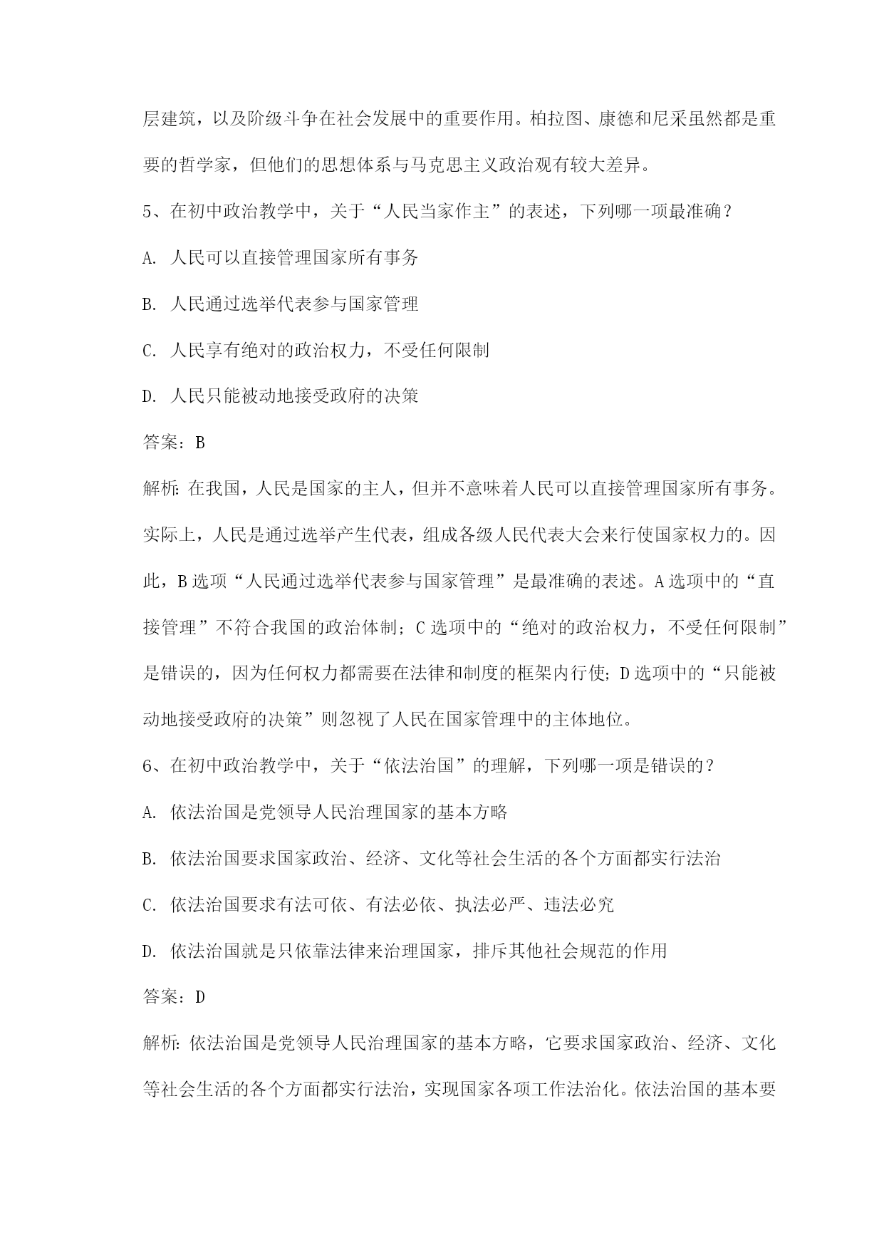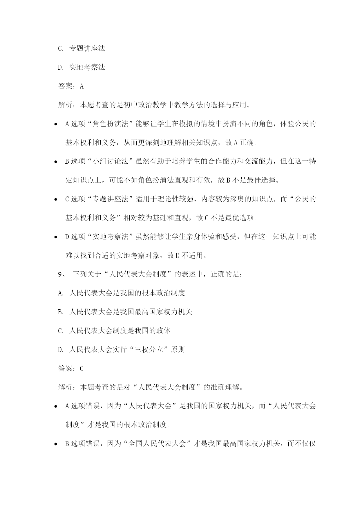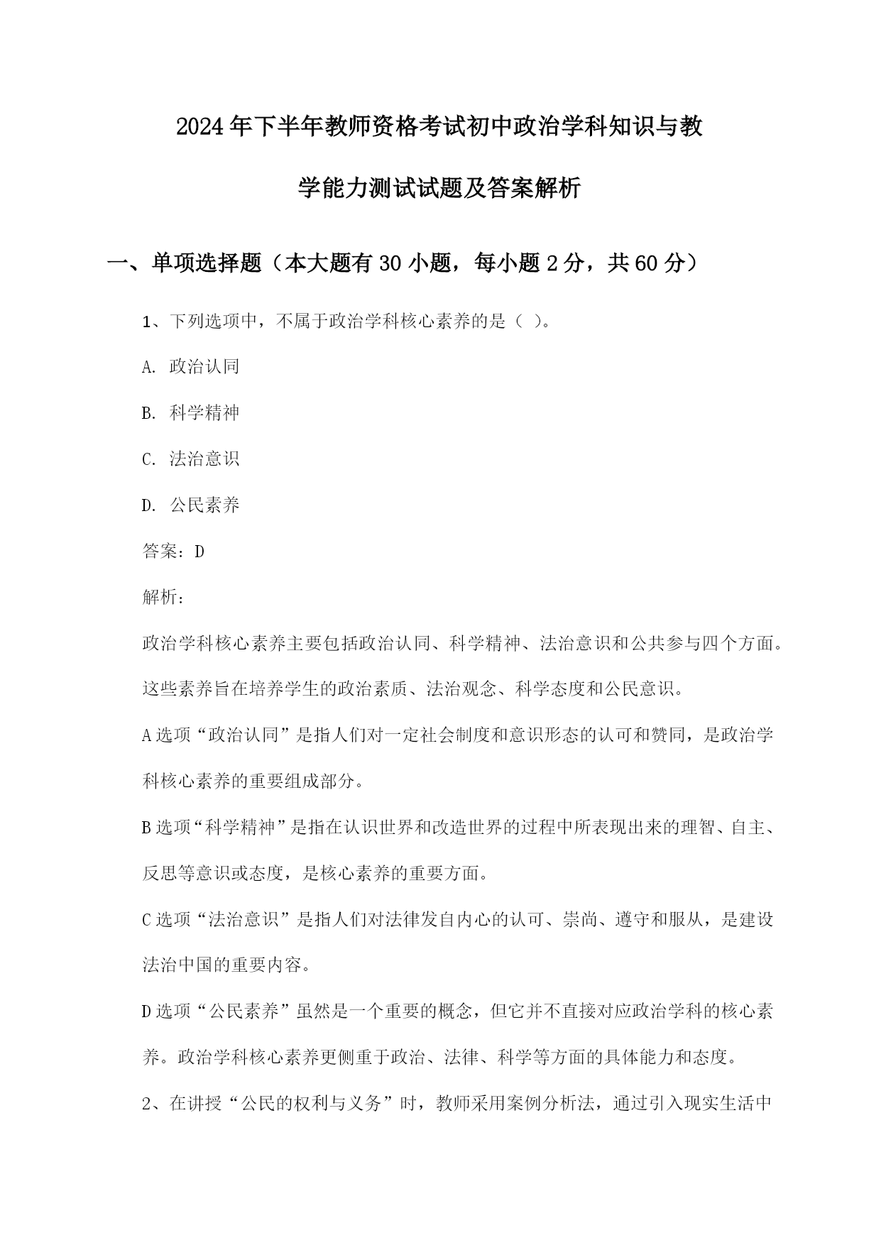 2024年下半年教师资格考试初中政治学科知识与教学能力测试试题及答案解析.docx