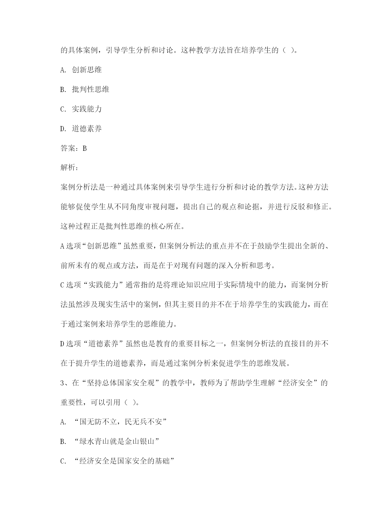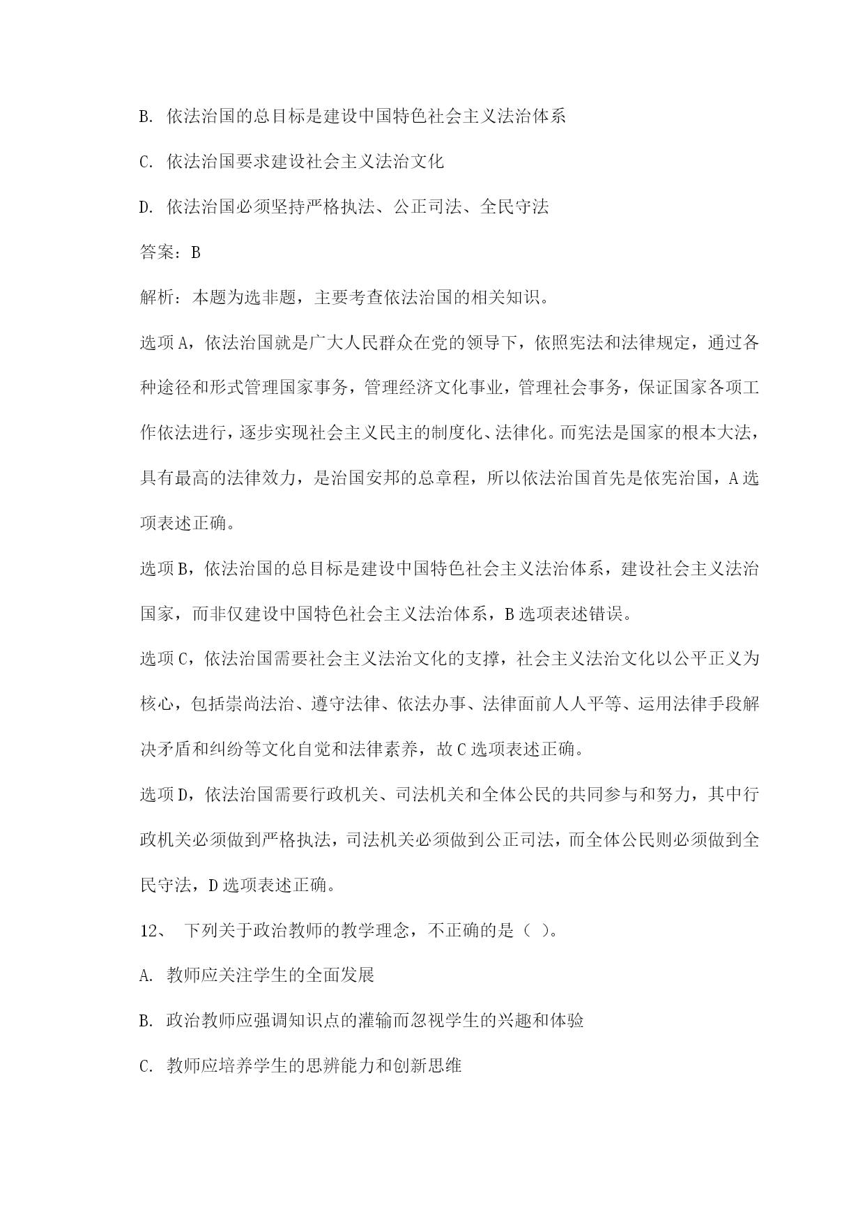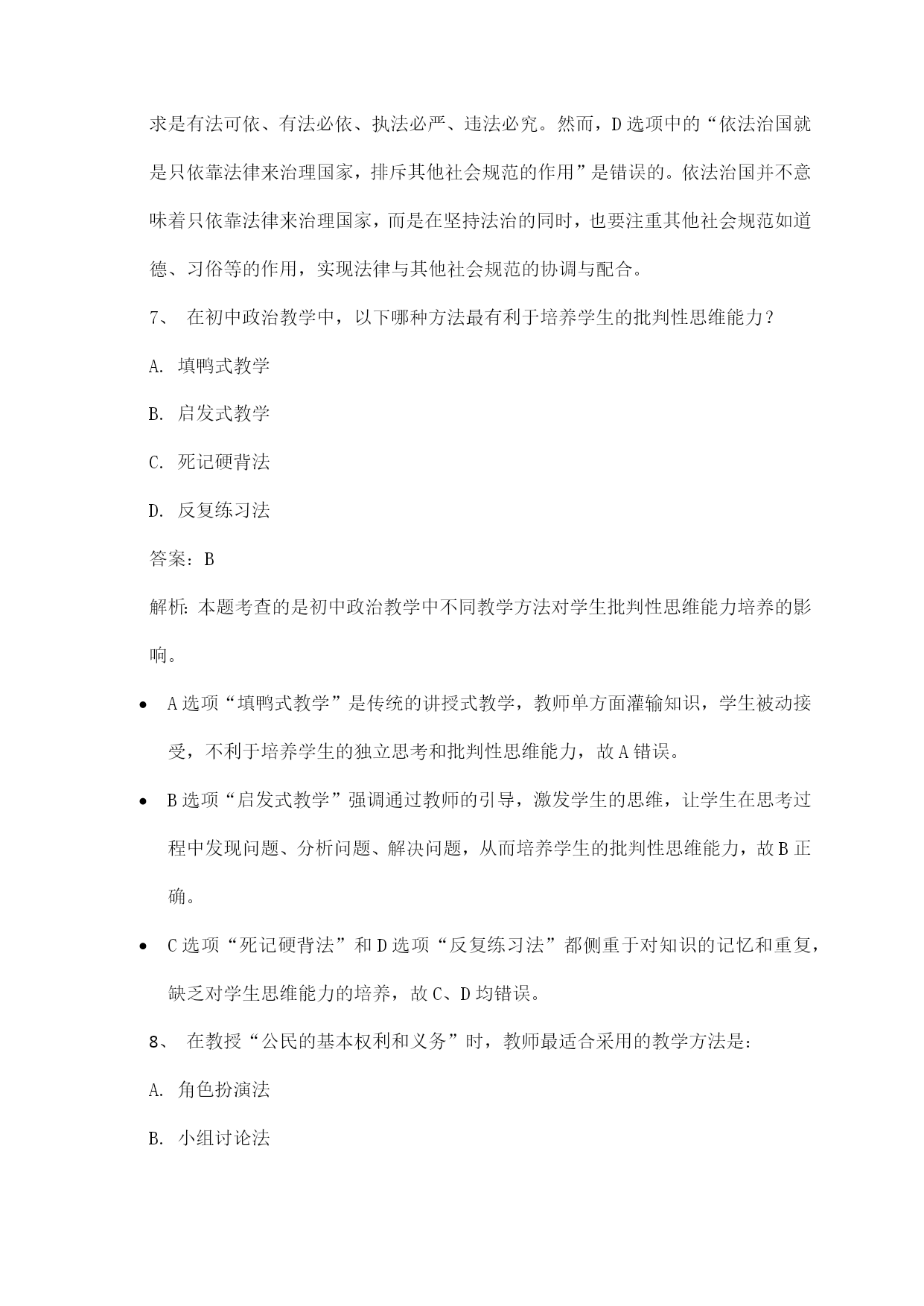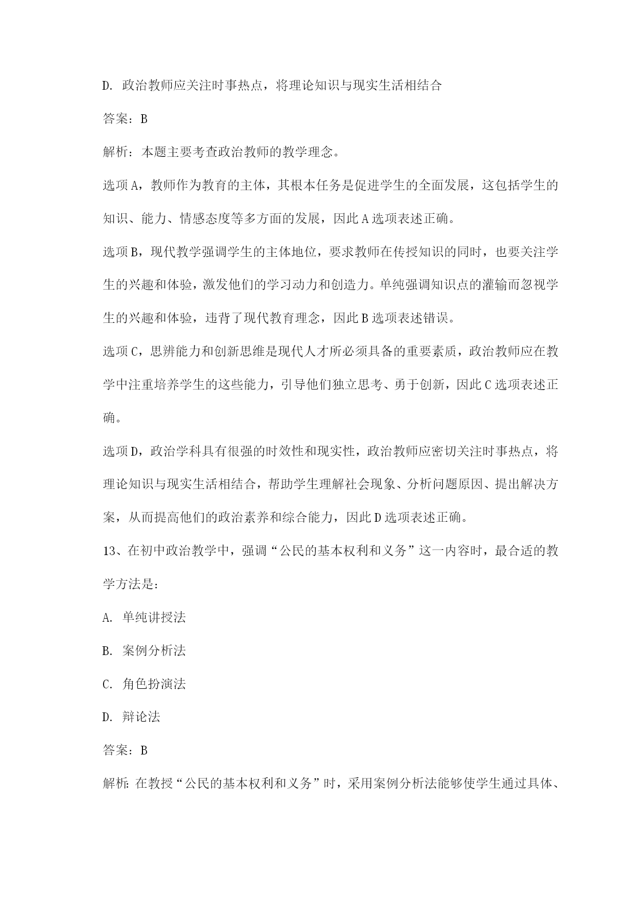 2024年下半年教师资格考试初中政治学科知识与教学能力测试试题及答案解析.docx