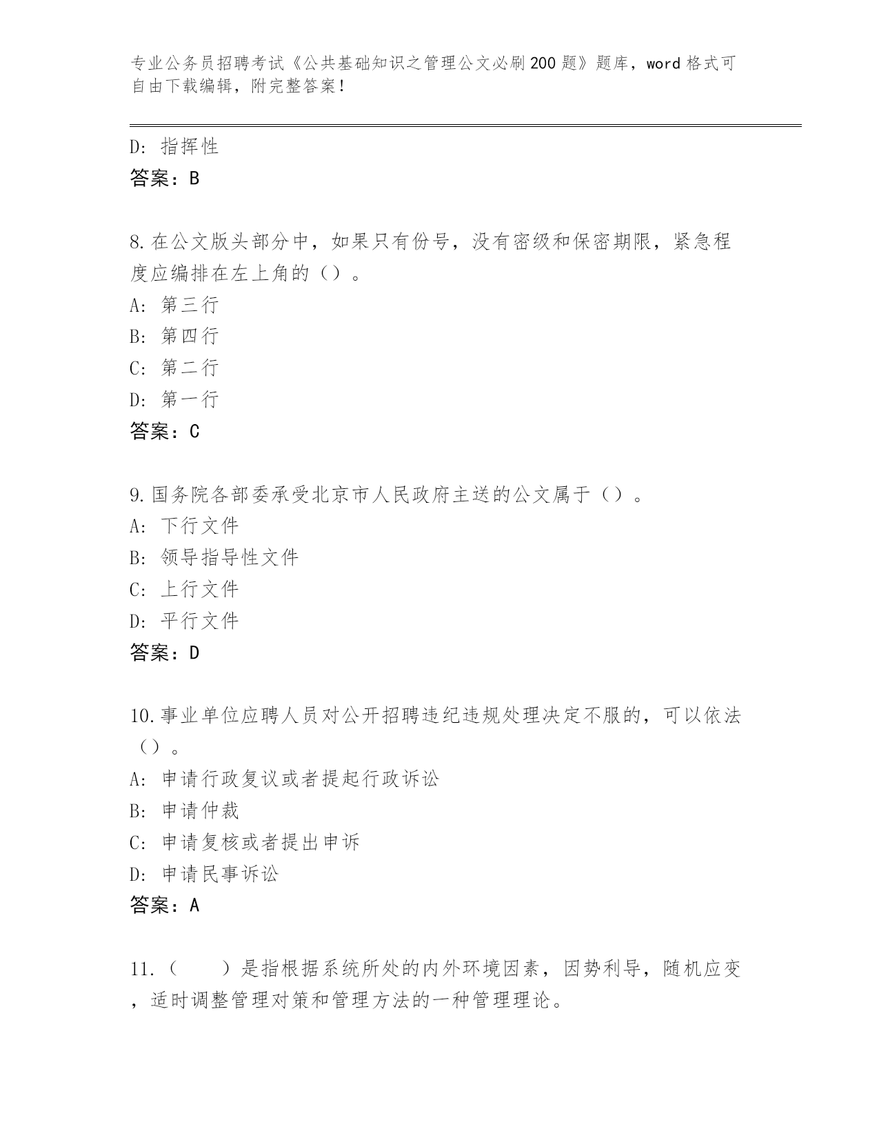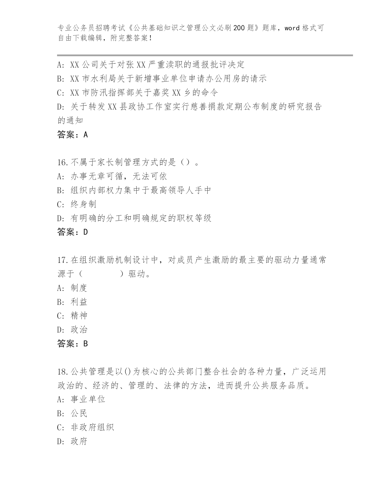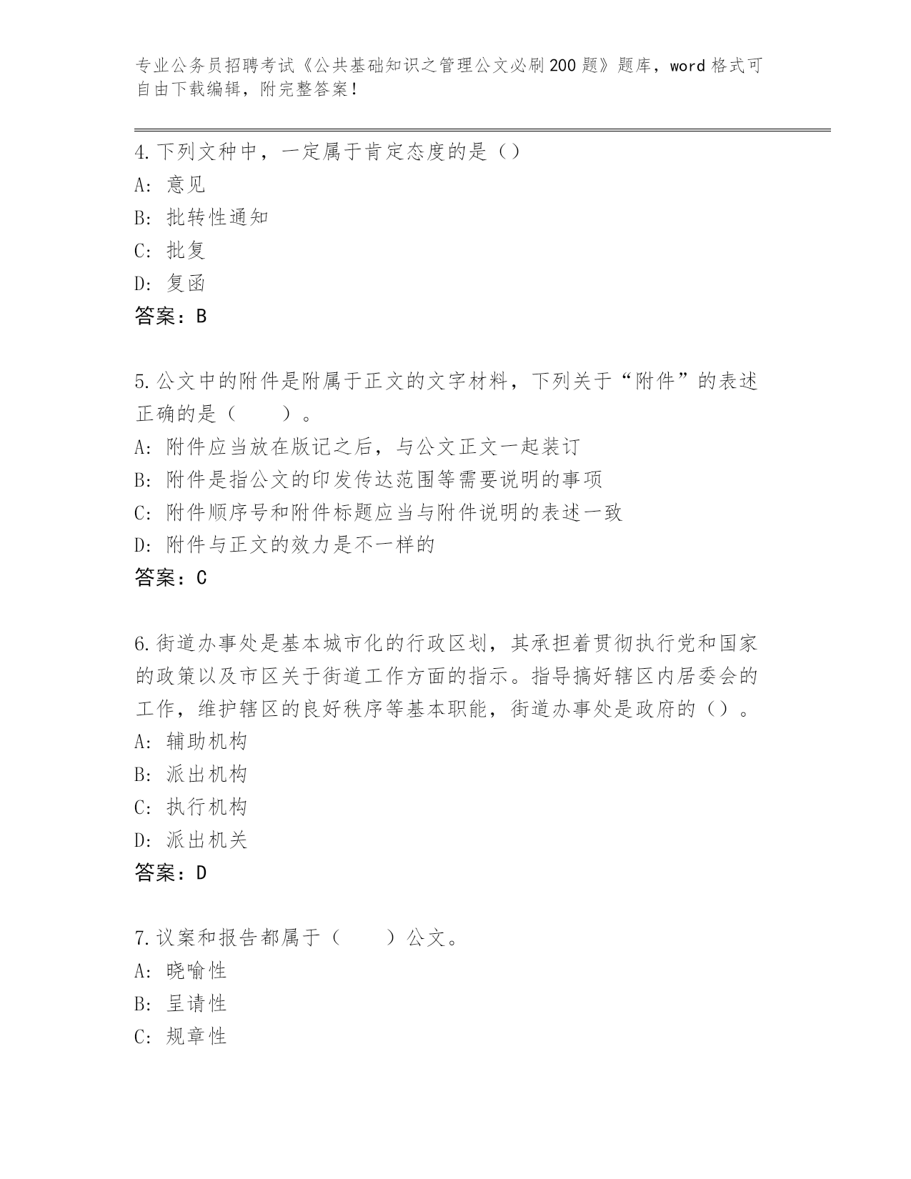 2024年山东省公务员招聘考试《公共基础知识之管理公文必刷200题》题库【实用】.docx