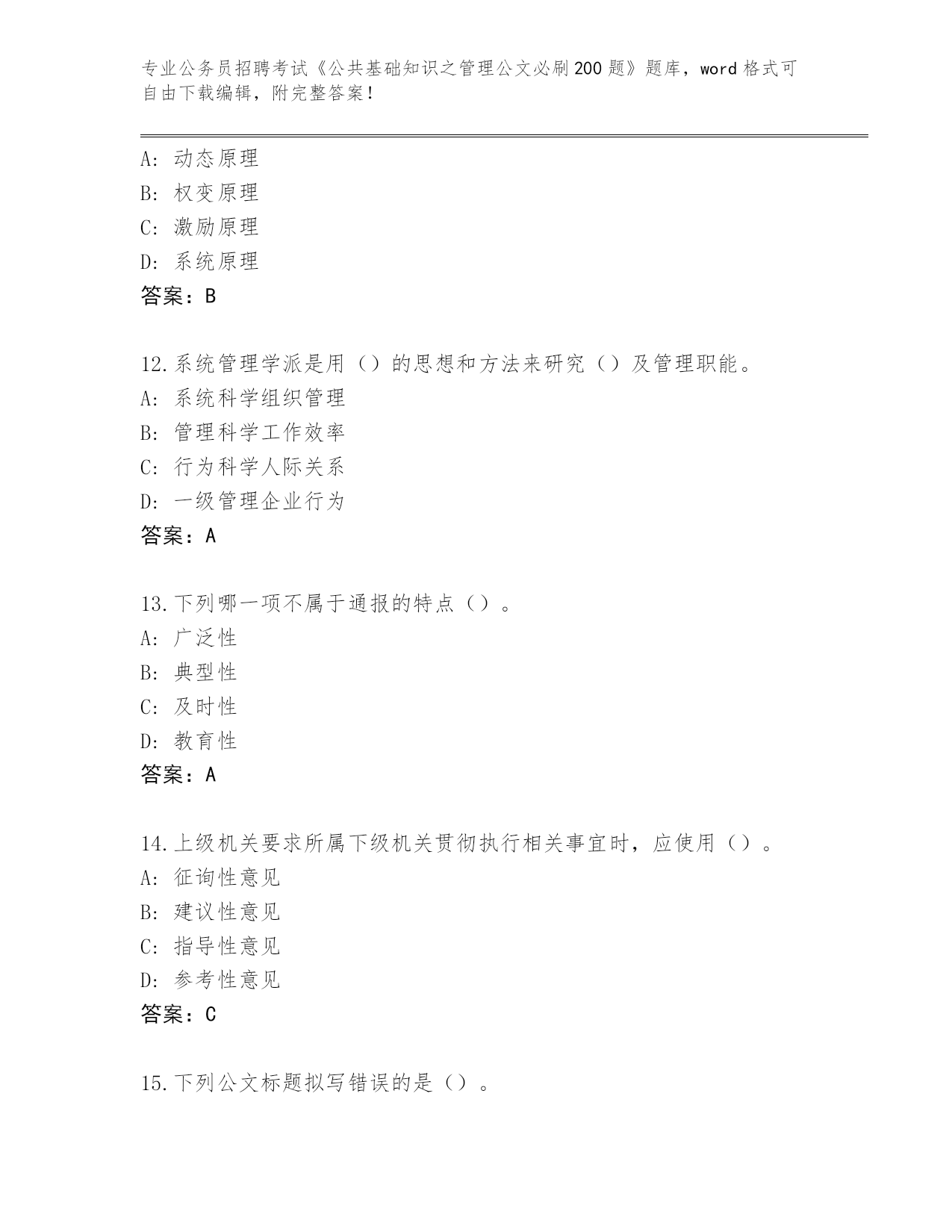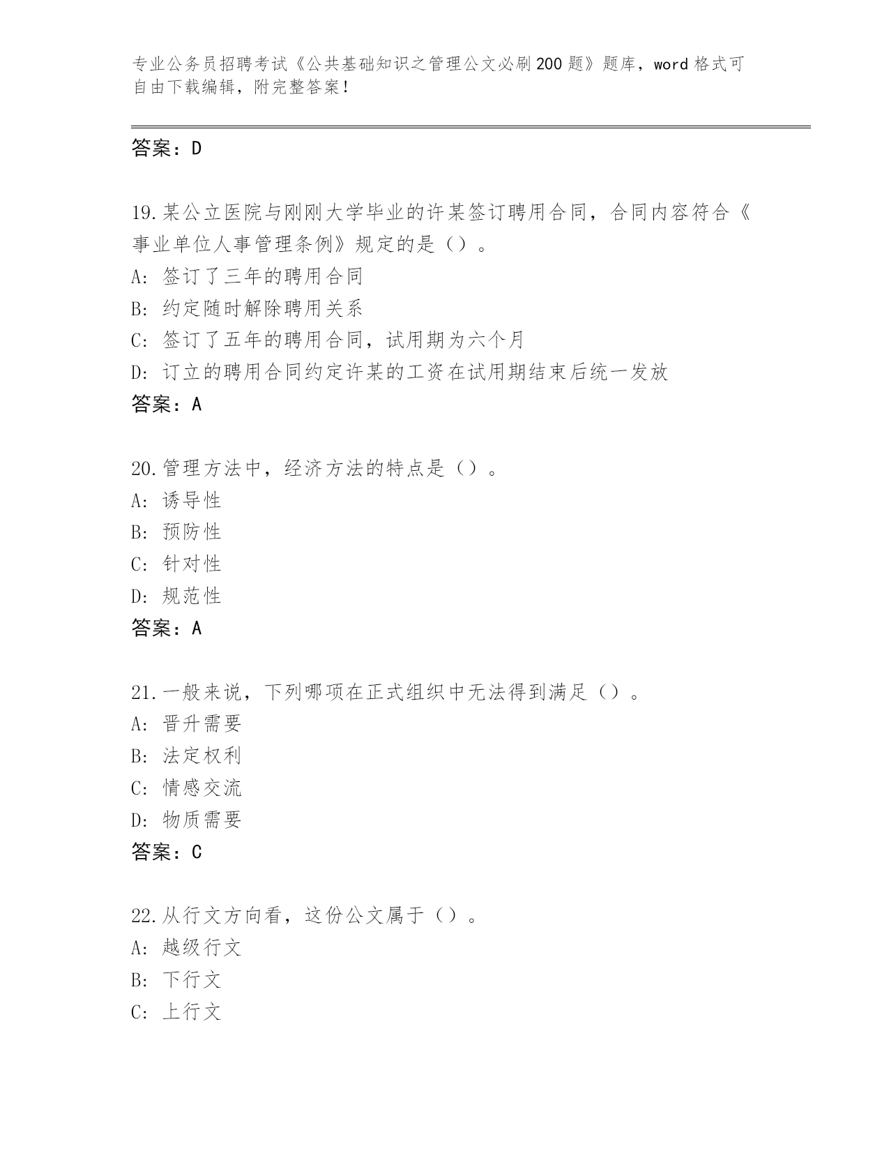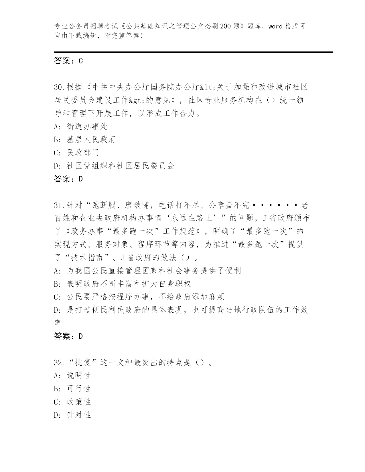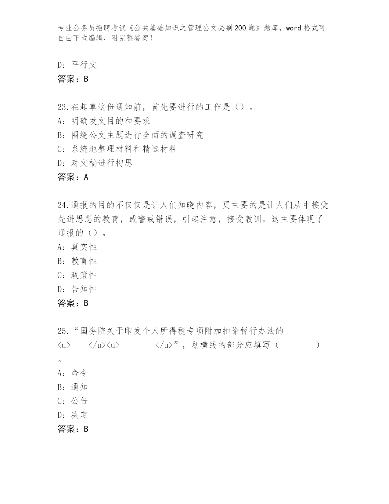 2024年山东省公务员招聘考试《公共基础知识之管理公文必刷200题》题库【实用】