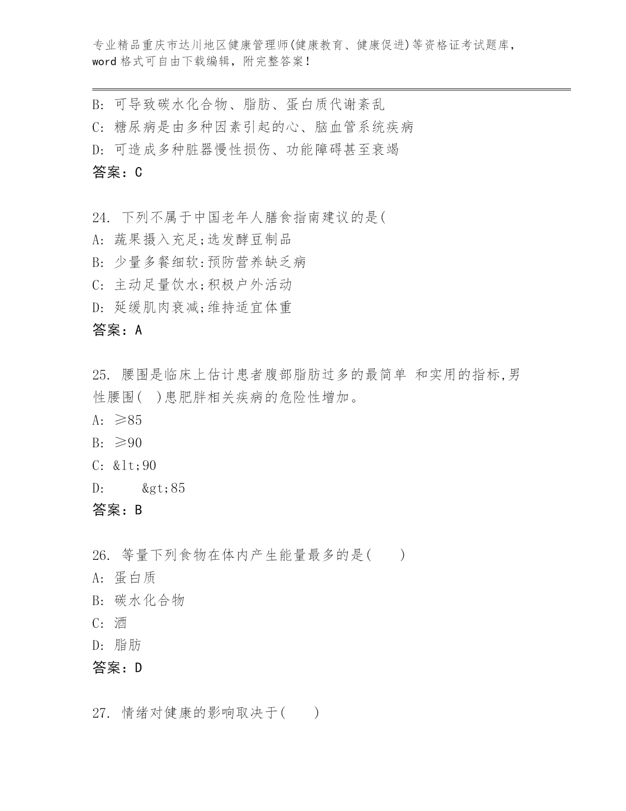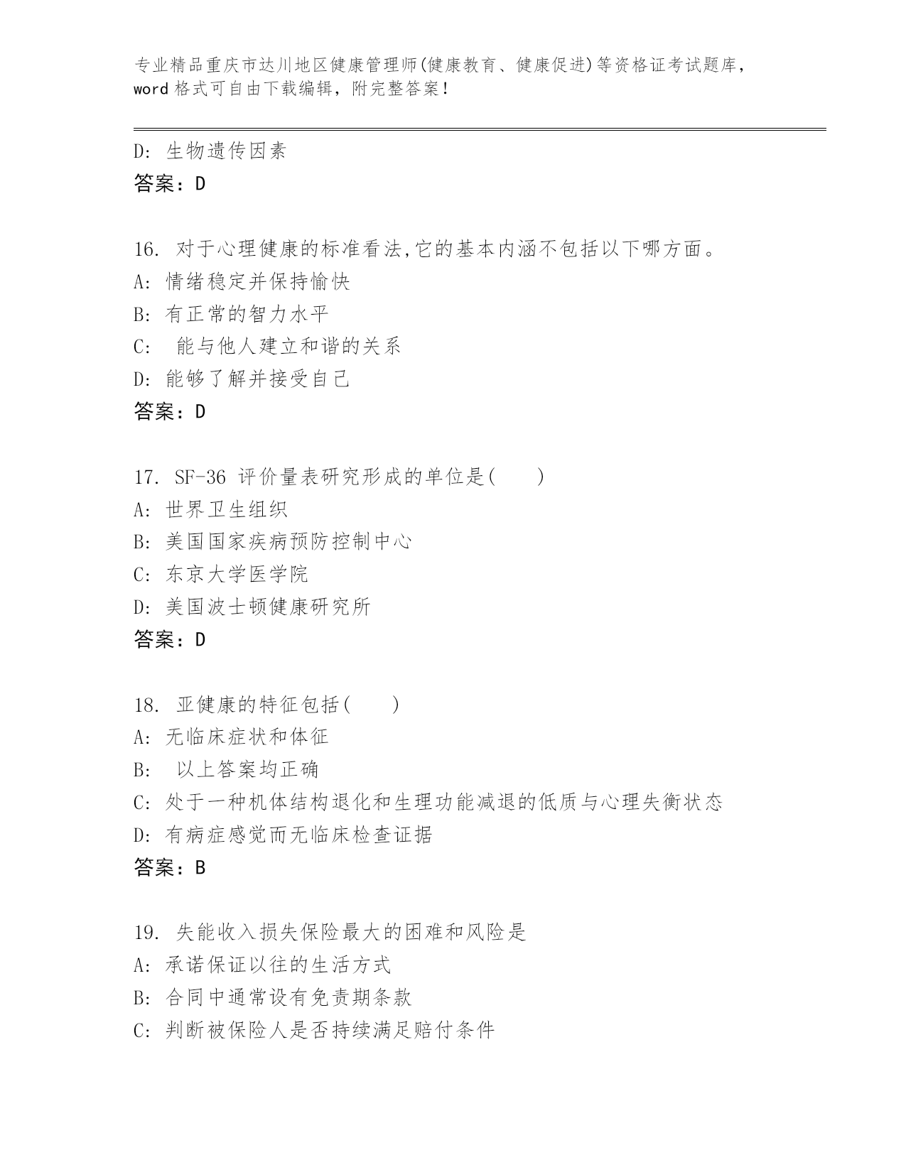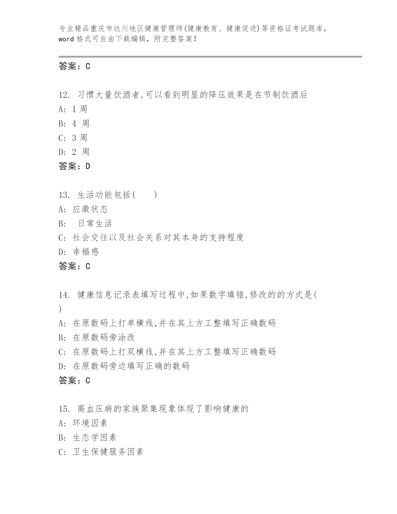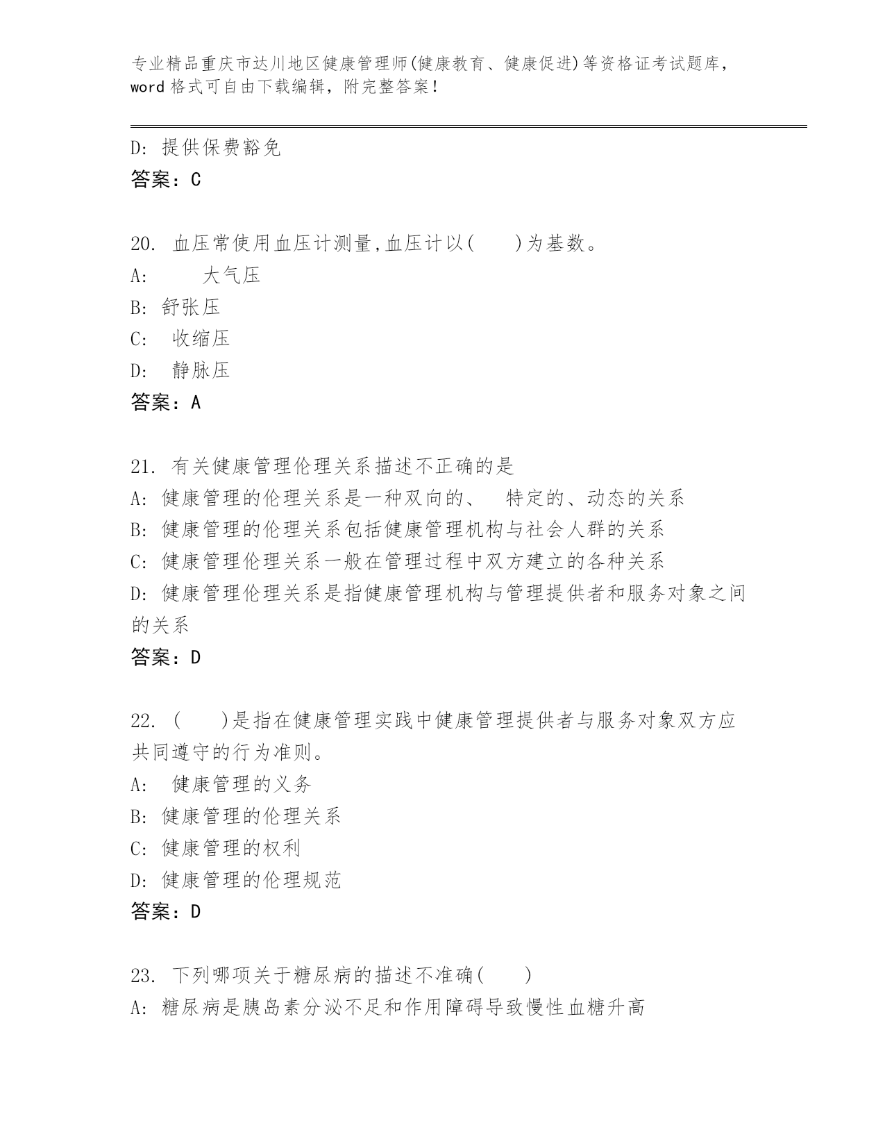 重庆市达川地区健康管理师(健康教育、健康促进)等资格证考试精品(能力提升).docx