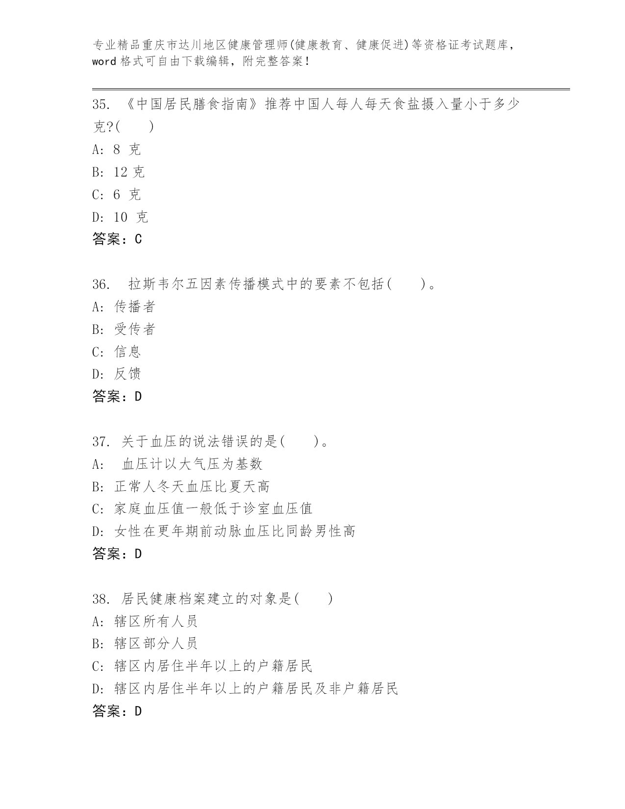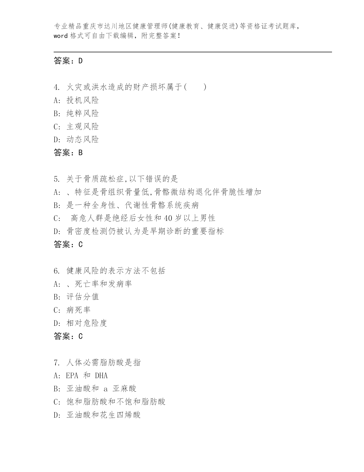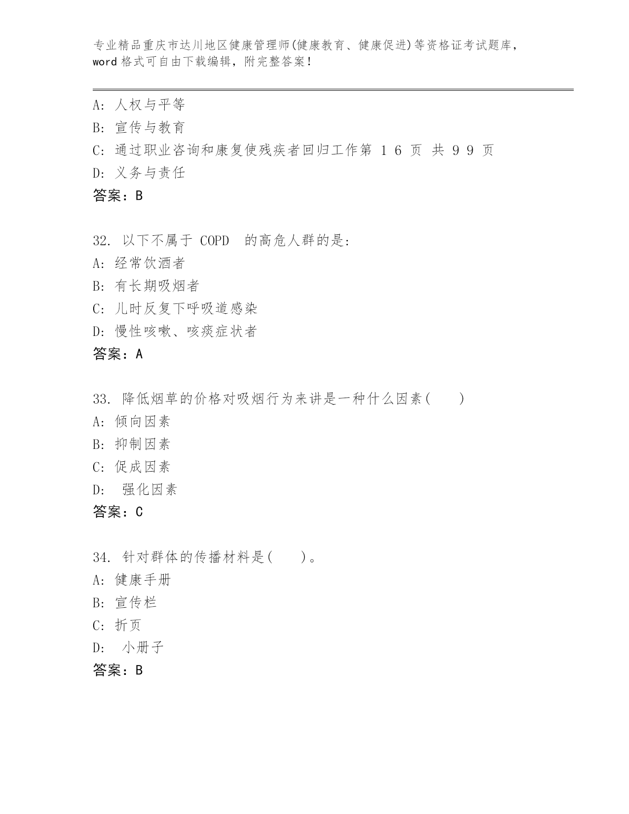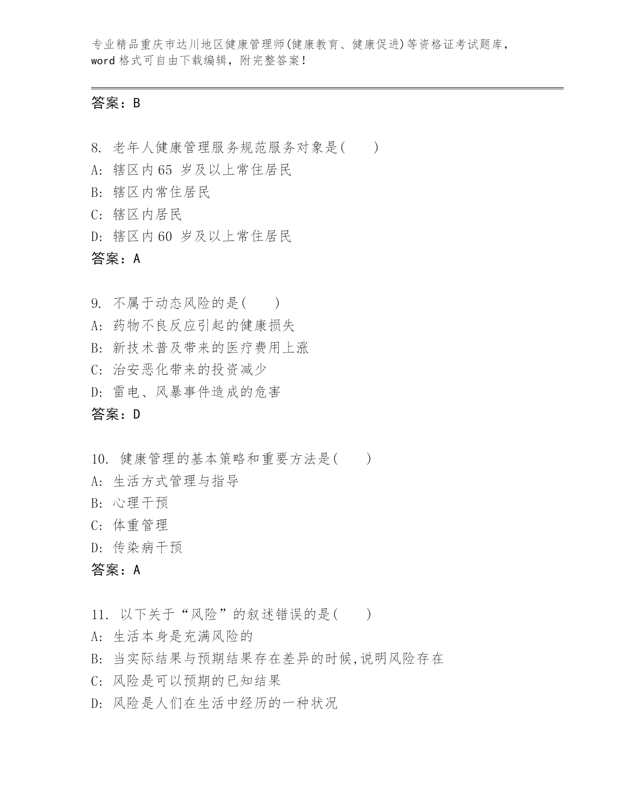 重庆市达川地区健康管理师(健康教育、健康促进)等资格证考试精品(能力提升).docx