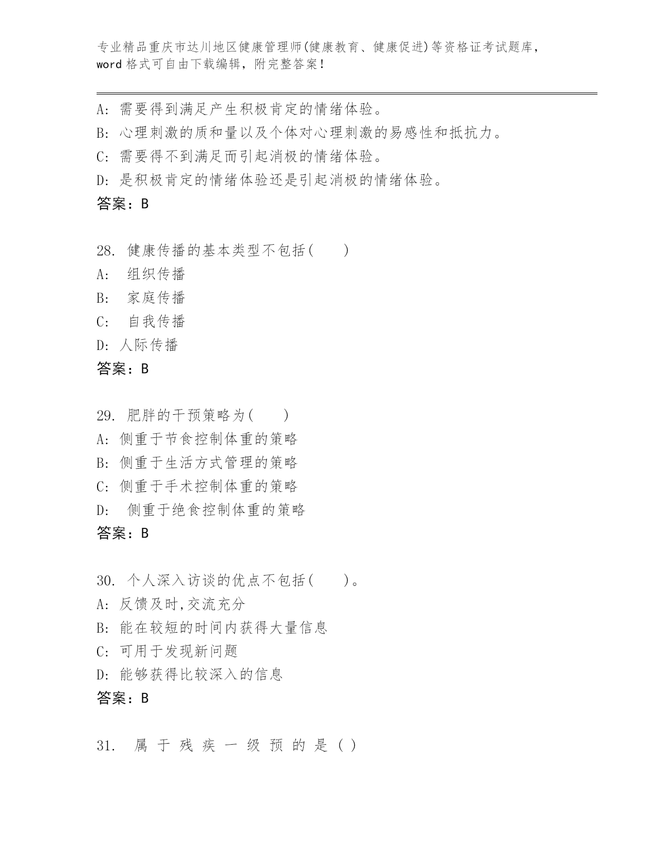 重庆市达川地区健康管理师(健康教育、健康促进)等资格证考试精品(能力提升)