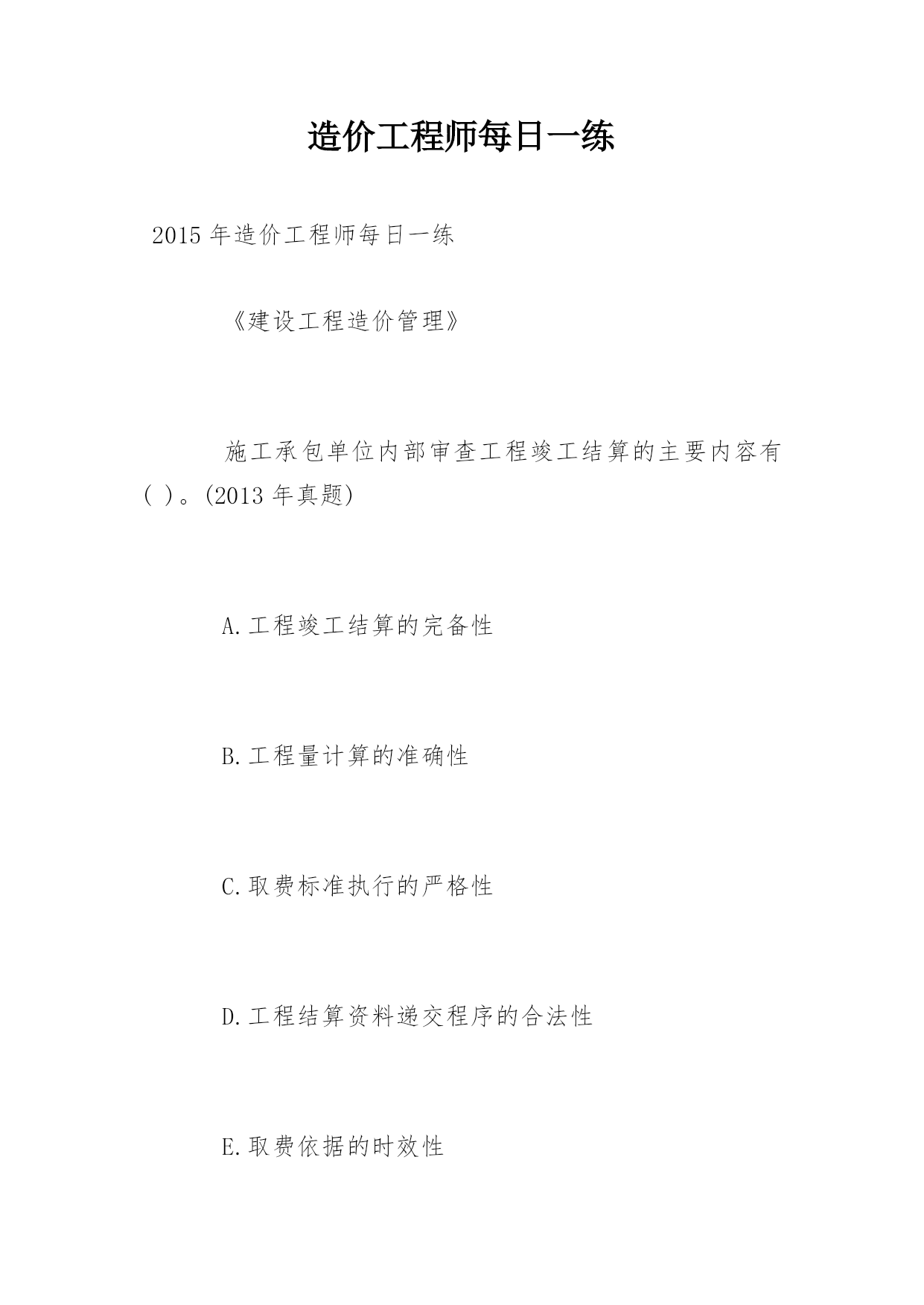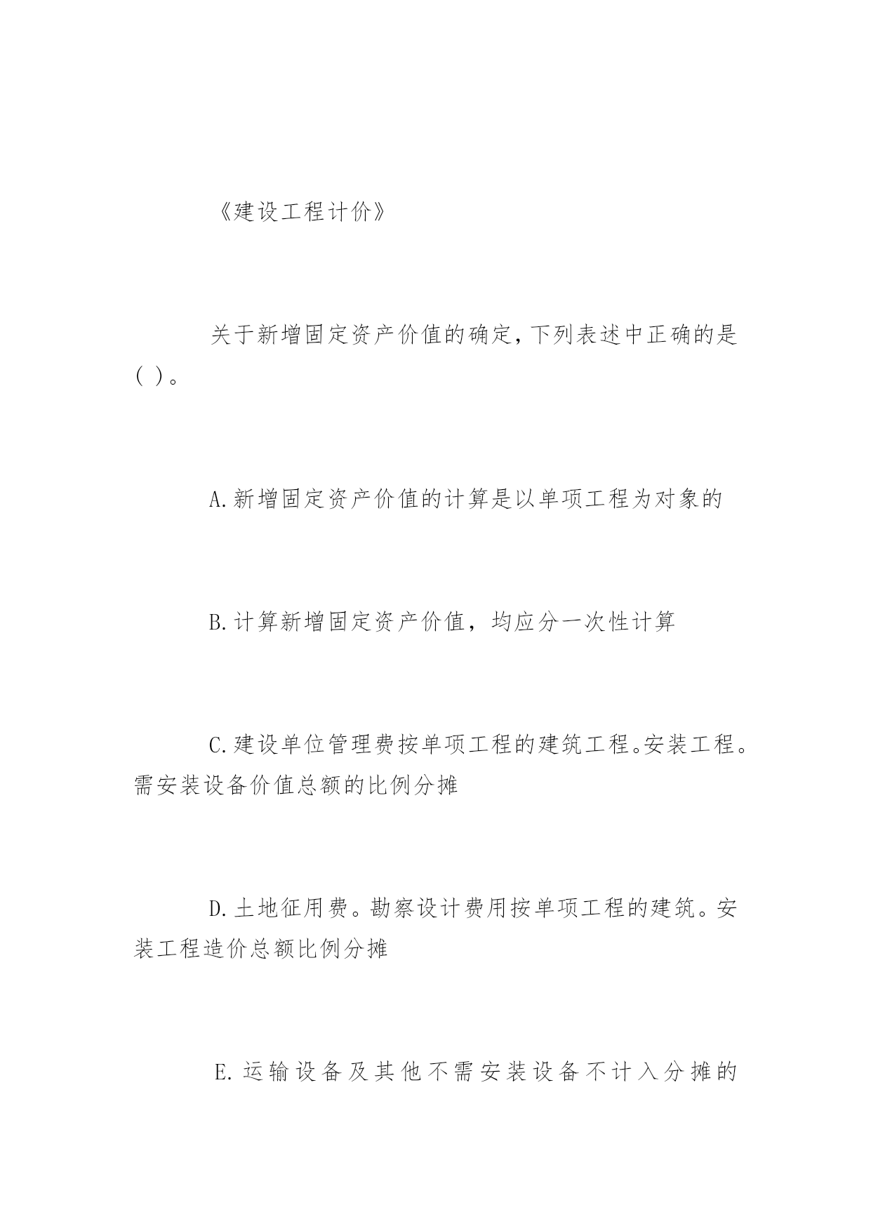 造价工程师每日一练2015年造价工程师每日一练《建设工程造价管理》施工承包单位内部审查工程竣工结算的主要内容有()。(2013年真题)A.工程竣工结算的完备性B.工程量计算的准确性C.取费标准执行的严格性D.工程结算资料递交程序的合法性E.取费依据的时效性《建设工程计价》关于新增固定资产价值的确定,下列表述中正确的是()。A.新增固定资产价值的计算是以单项工程为对象的B.计算新增固定资产价值,均应分一次性计算C.建设单位管理费按单项工程的建筑工程。安装工程。需安装设备价值总额的比例分摊D.土地征用费。勘察设计费用按单项工程的建筑。安装工程造价总额比例分摊E.运输设备及其他不需安装设备不计入分摊的“待摊投资”《建设工程技术与计量(土建)》轻骨料混凝土与同等级普通混凝土相比,其特点主要表现在()。A.表观密度小B.耐久性明显改善C.弹性模量小D.导热系数大E.节约能源《建设工程技术与计量(安装)》焊前预热的好处是()。A.提高含氧量B.提高焊接接头温度C.避免在热影响区中形成脆性马氏体D.有利于排气。排渣=========答案及解析=========《建设工程造价管理》【答案】BCE【解析】施工承包单位内部审查工程竣工结算的主要内容包括:(1)审查结算的项目范围、内容和合同约定的'项目范围、内容的一致性;(2)审查工程量计算的准确性、工程量计算规则与计价规范或定额的一致性;(3)审查执行合同约定或现行的计价原则、方法的严格性;(4)审查变更签证凭据的真实性、合法性、有效性,核准变更工程费用;(5)审查索赔是否依据合同约定的索赔处理原则、程序和计算方法以及索赔费用的真实性、合法性、准确性;(6)审查取费标准执行的严格性,并审查取费依据的时效性、相符性。参见教材P356。《建设工程计价》【答案】ACE【解析】一次交付生产或使用的工程一次计算新增固定资产价值,分期分批交付生产或使用的工程,应分期分批计算新增固定资产价值。新增固定资产价值是投资项目竣工投产后所增加的固定资产价值。土地征用费、地址勘察和建筑工程设计费等费用则按建筑工程造价比例分摊。参见教材P293。《建设工程技术与计量(土建)》【答案】ABCE【解析】轻骨料混凝土与同强度等级的普通混凝土相比耐久性明显改善,其表观密度比普通混凝土低25%~50%.轻骨料混凝土的弹性模量比普通混凝土低20%~50%,保温隔热性能较好。参见教材P137。《建设工程技术与计量(安装)》【正确答案】BCD【答案解析】预热的作用在于提高焊接接头温度,减少焊缝金属与母材间的温差,降低焊缝冷却速度,控制钢材组织转变,避免在热影响区中形成脆性马氏体,减轻局部硬化,改善焊缝质量,同时由于预热减缓熔池冷却速度,有利于排气、排渣,故可减少气孔、夹渣等缺陷。参见教材P88。