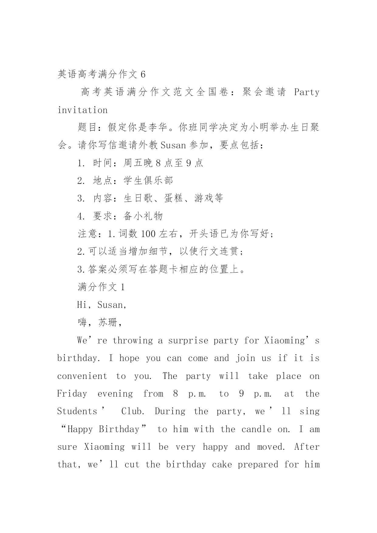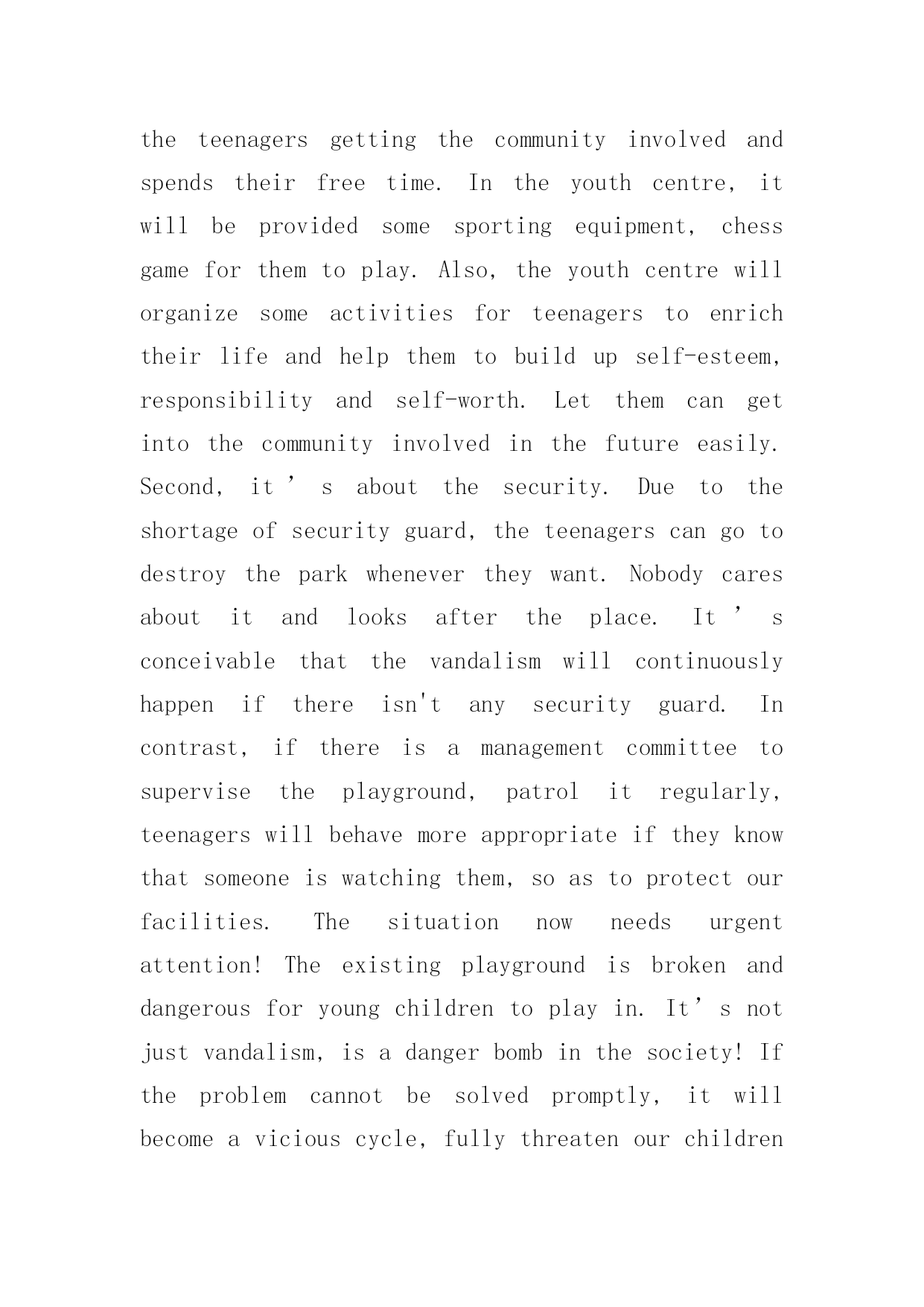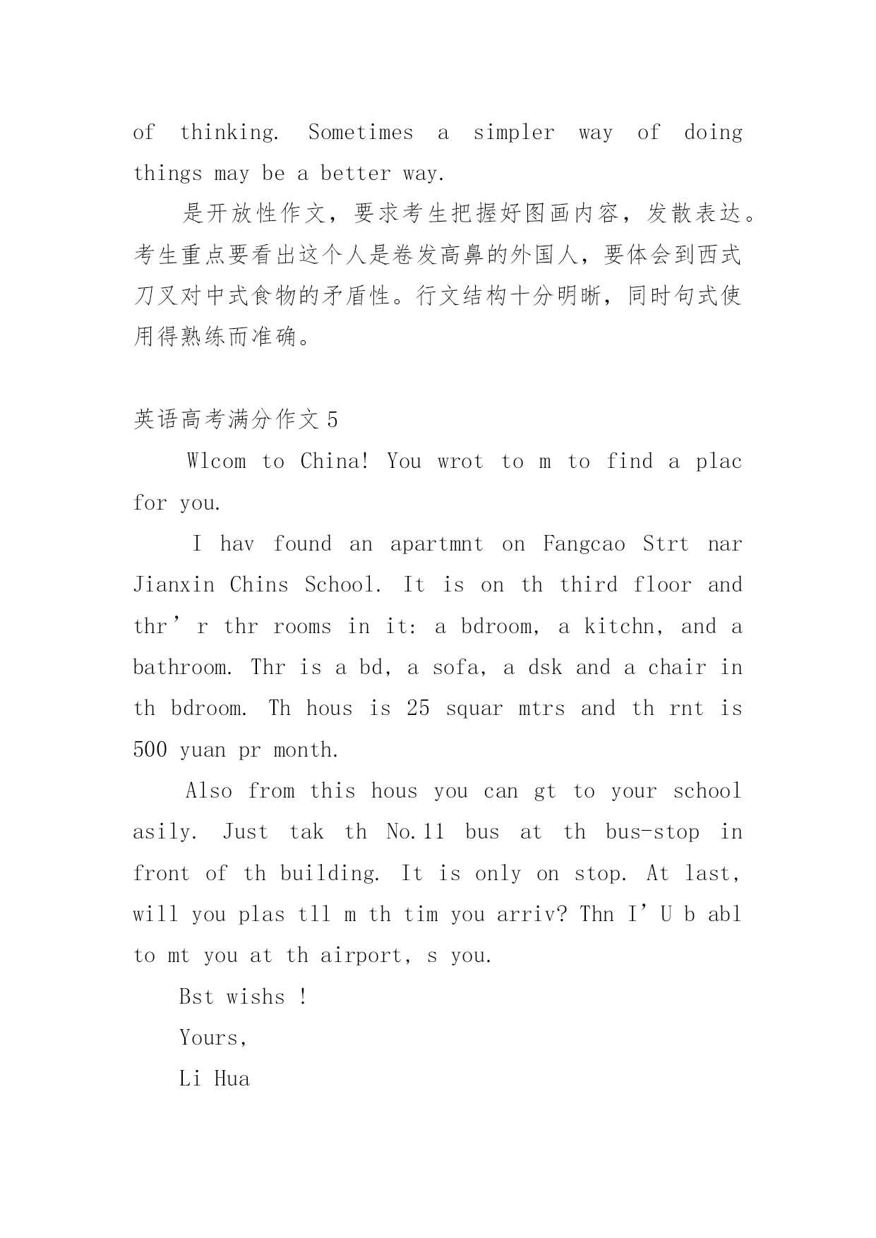 英语高考满分作文在学习、工作、生活中,大家都不可避免地要接触到作文吧,通过作文可以把我们那些零零散散的思想,聚集在一块。你知道作文怎样写才规范吗?以下是小编为大家整理的英语高考满分作文,希望能够帮助到大家。英语高考满分作文1Atpresent,everyoneisgreatlyconcernedaboutthesouthwestdrought.SomethinkwecanfightthedroughtbyprayingforrainbymeansoftheInternet——usingthemoderntooltodotheprimitivething,whichIthinkisinvain.Facedwiththeterribledrought,weshouldtakeeffectivemeasurestosettletheissue.Firstly,wemustprotecttrees.Treesplayanimportantpartinwaterandsoilconservation.Peoplearesufferingfromthedroughtbecauseplentyoftreeshavebeencutdownwithoutlimits.Ifwecontinuetodoso,wewillbepunishedbynature.Secondly,weshouldtrytosavewater.Waterisanecessityinourdailylife.Besides,waterresourcesarelimited,soweshouldn'twasteit.Ifwedon’tkickthebadhabitofwastingwater,wewillsurelysuffermoreinthefuture.It'snevertoolatetomend.Afterthedisaster,weshouldrealizeprotectingnaturemeansprotectingourselves.Onlyinthiswaycanweliveabetterlifeinthefuture.英语高考满分作文2Deareditor,Iamwritingtoexpressmyviewsontheplaygroundvandalismnearmyhousingestate.ThehousingestatewhereIliveinintheNewTerritorieshasmanyexcellentfacilities.Whilemostpeopletreatthemproperly,therearesomepeopledestroyallthesevaluablepublicresources.Theplaygroundequipmentisheavilydamaged.Somefacilitiesareburnedandbroken.Thegraffitiarecompletelycoveredallovertheplace.Someofthegraffitievenincludesbadlanguage.It’sadverselyinfluencethechildrensafetyandourpreciouspublicresources.Thereasonofthisvandalismismainlyrelatedtothepeoplewhoareoutofboredomandtheshortageofsecurity.Nowadays,mostteenagersliketospendtheirtimethroughhangingoutwithfriends.Whentheyhavenothingtoplayoranyrecreationalactivities,theplaygroundmaybetargetedasanamusementforspendingtheirtime.Duetoteenagersarenowintheprocessofbuildingself-worthandself-esteem,theywilltrytodosomethingoverinordertogetthepeerrecognition.Forinstant,theteenagerspretendtobealeaderthroughdestroyingthefacilities.Intheserecentyears,theseselfishandirresponsiblebehaviorsunderthefabricating,exaggeratingfromsocialmedia,startedbecomingrationalized