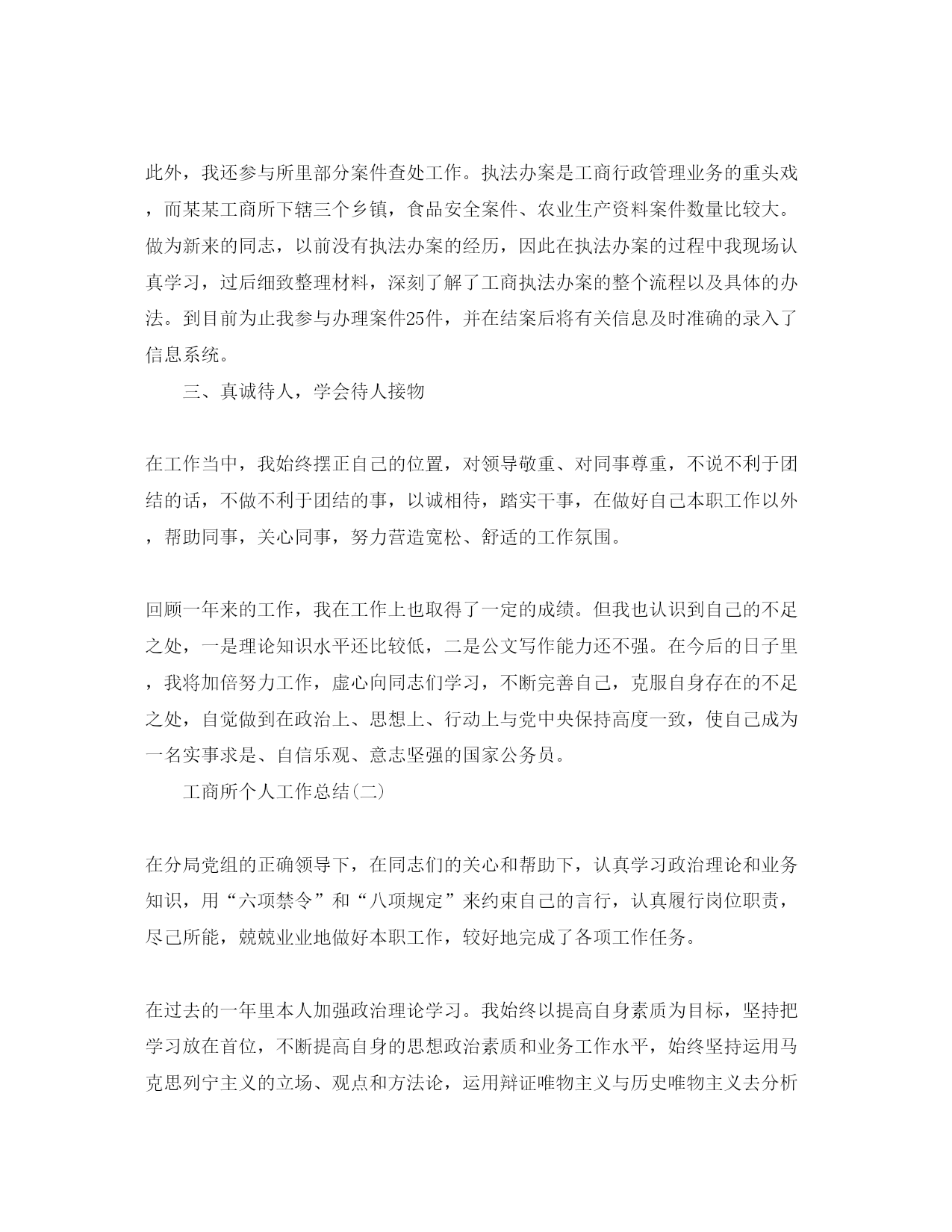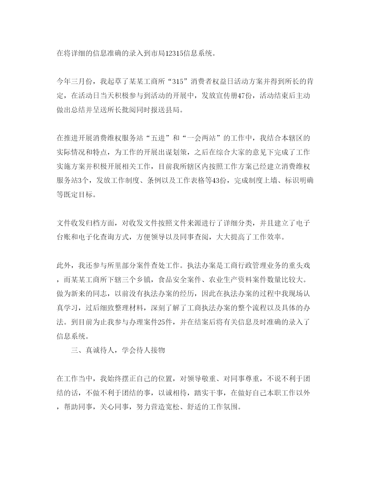 此资料由网络收集而来,如有侵权请告知上传者立即删除。资料共分享,我们负责传递知识。工商所的个人工作总结相信很多的职业都会写工作总结,那么你知道工商所的工作总结怎么写吗?下面小编就和大家分享工商所个人工作总结,来欣赏一下吧。工商所个人工作总结(一)一年来,在县局领导、三位所长的关心和全所同事的帮助下,经过坚持不懈的努力和充满信心的工作,我在工作、生活方面获得了不小进步。为便于县局对我个人的考察和了解,我将自己一年来的实际思想工作业务学习情况进行如下汇报。现总结如下:一、自觉加强理论学习,提高个人素质首先,我主动加强政治学习,除了经常看电视、看报纸、关心时事政治外,我还利用业余时间认真学习党章,了解党的光荣历史,并积极要求加入党组织,在思想上和党组织保持高度一致;其次,我还认真学习了国家公务员条例,认真与自己平时行为进行对照,改正不良习惯,继续发扬优秀传统。另外,除了干好自己的本职工作外,还积极参加各项活动,对于工商局组织的活动,能够积极参加与配合,在生活上乐于助人,关心集体荣誉。通过以上努力,我感到自己的政治素质有了长足进步,希望在以后的学习中进一步提高。二、踏实肯干,努力完成好各项业务工作一年来,我始终坚持严格要求自己,勤奋努力,时刻牢记公务员全心全意为人民服务的宗旨,努力实践“三个代表”重要思想,在自己平凡而普通的工作岗位上,努力做好本职工作。在某某工商所工作期间,我工作的岗位主要为内勤,具体内容包括财务管理、办照登记、123xx消费者维权工作,文件收发归档、案卷整理归档等。在财务管理工作上,我严格遵守相关财务制度,认真保管和使用各类票据,按时上缴规费xxxx元、罚没款xxx元到账目清晰,收支明确,为所里确保正常工作开展提供了良好的经费使用计划。在办照登记工作中,我认真审查、受理每一份申请,将每一份受理的材料整理归档,掌握了个体工商户营业执照的办理、更换、注销等业务。到目前为止,经手办理个体户执照157份,个人独资微型企业执照7份。12315消费者维权工作是工商行政管理业务重要一个方面,我按照本所本辖区的实际情况,认真做好每个工作细节。到目前受理消费者举报投诉5起,接受咨询27起,每一起举报投诉都及时汇报所长,处理完成及时向举报人反馈处理情况,最后在将详细的信息准确的录入到市局12315信息系统。今年三月份,我起草了某某工商所“315”消费者权益日活动方案并得到所长的肯定,在活动日当天积极参与到活动的开展中,发放宣传册47份,活动结束后主动做出总结并呈送所长批阅同时报送县局。在推进开展消费维权服务站“五进”和“一会两站”的工作中,我结合本辖区的实际情况和特点,为工作的开展出谋划策,之后在综合大家的意见下完成了工作实施方案并积极开展相关工作,目前我所辖区内按照工作方案已经建立消费维权服务站3个,发放工作制度、条例以及工作表格等43份,完成制度上墙、标识明确等既定目标。文件收发归档方面,对收发文件按照文件来源进行了详细分类,并且建立了电子台账和电子化查询方式,方便领导以及同事查阅,大大提高了工作效率。此外,我还参与所里部分案件查处工作。执法办案是工商行政管理业务的重头戏,而某某工商所下辖三个乡镇,食品安全案件、农业生产资料案件数量比较大。做为新来的同志,以前没有执法办案的经历,因此在执法办案的过程中我现场认真学习,过后细致整理材料,深刻了解了工商执法办案的整个流程以及具体的办法。到目前为止我参与办理案件25件,并在结案后将有关信息及时准确的录入了信息系统。三、真诚待人,学会待人接物在工作当中,我始终摆正自己的位置,对领导敬重、对同事尊重,不说不利于团结的话,不做不利于团结的事,以诚相待,踏实干事,在做好自己本职工作以外,帮助同事,关心同事,努力营造宽松、舒适的工作氛围。回顾一年来的工作,我在工作上也取得了一定的成绩。但我也认识到自己的不足之处,一是理论知识水平还比较低,二是公文写作能力还不强。在今后的日子里,我将加倍努力工作,虚心向同志们学习,不断完善自己,克服自身存在的不足之处,自觉做到在政治上、思想上、行动上与党中央保持高度一致,使自己成为一名实事求是、自信乐观、意志坚强的国家公务员。工商所个人工作总结(二)在分局党组的正确领导下,在同志们的关心和帮助下,认真学习政治理论和业务知识,用“六项禁令”和“八项规定”来约束自己的言行,认真履行岗位职责,尽己所能,兢兢业业地做好本职工作,较好地完成了各项工作任务。在过去的一年里本人加强政治理论学习。我始终以提高自身素质为目标,坚持把学习放在首位,不断提高自身的思想政治素质和业务工作水平,始终坚持运用马克思列宁主义的立场、观点和方法论,运用辩证唯物主义与历史唯物主义去分析和观察事物,明辨是非,坚持真理,用正确的世界观、人生观、价值观来对待生活