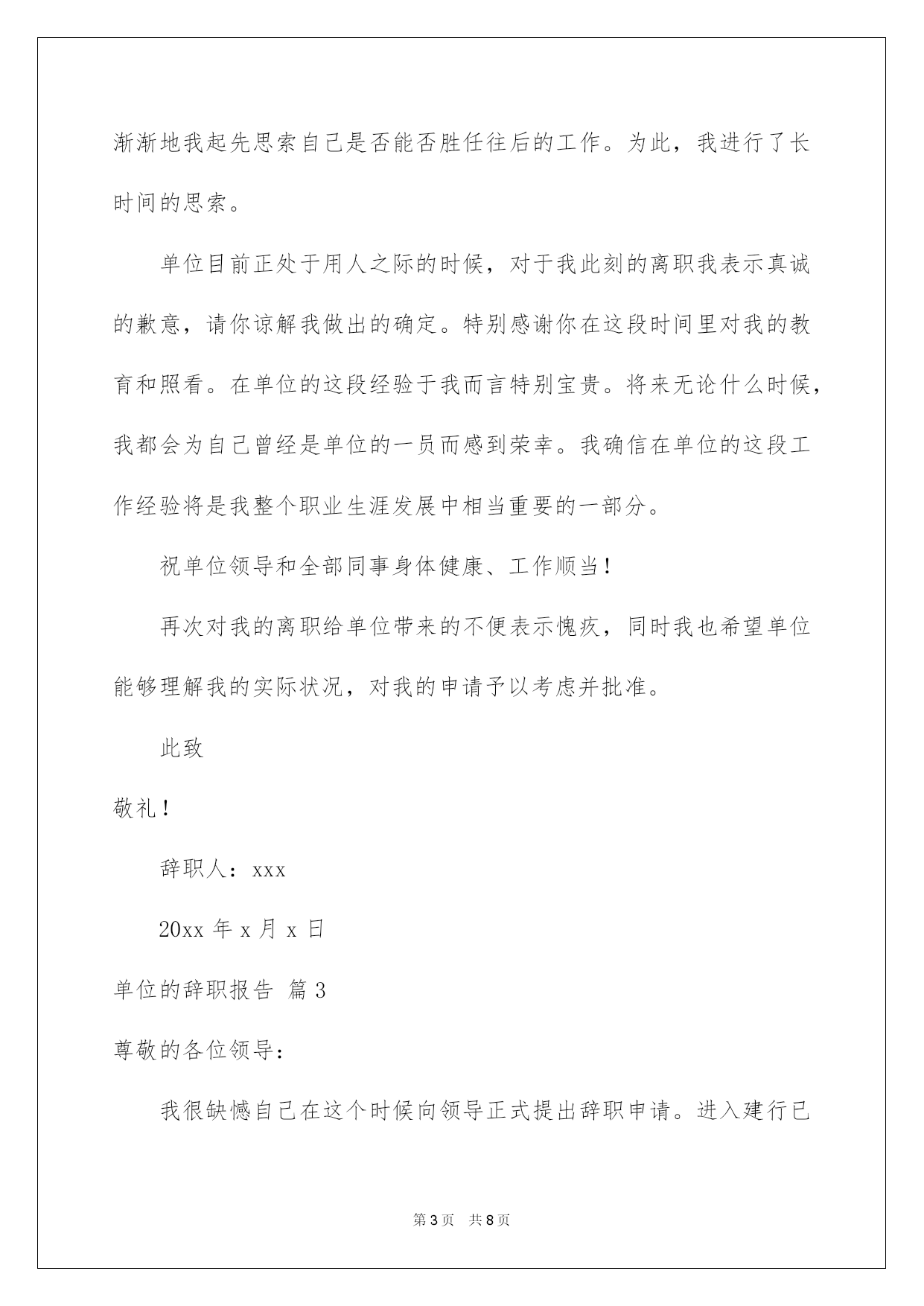 第PAGE\*Arabic\*MERGEFORMAT8页共NUMPAGES\*Arabic\*MERGEFORMAT8页第PAGE\*MERGEFORMAT8页共NUMPAGES\*MERGEFORMAT8页第PAGE\*MERGEFORMAT8页共NUMPAGES\*MERGEFORMAT8页第PAGE\*MERGEFORMAT8页共NUMPAGES\*MERGEFORMAT8页第PAGE\*MERGEFORMAT8页共NUMPAGES\*MERGEFORMAT8页第PAGE\*MERGEFORMAT8页共NUMPAGES\*MERGEFORMAT8页第PAGE\*MERGEFORMAT8页共NUMPAGES\*MERGEFORMAT8页第PAGE\*MERGEFORMAT8页共NUMPAGES\*MERGEFORMAT8页第PAGE\*MERGEFORMAT8页共NUMPAGES\*MERGEFORMAT8页第PAGE\*MERGEFORMAT8页共NUMPAGES\*MERGEFORMAT8页第PAGE\*MERGEFORMAT8页共NUMPAGES\*MERGEFORMAT8页2022单位的辞职报告单位的辞职报告范文汇编6篇随着个人素养的提升,报告与我们的生活紧密相连,报告具有双向沟通性的特点。那么你真正懂得怎么写好报告吗?下面是我收集整理的单位的辞职报告6篇,欢迎阅读与保藏。单位的辞职报告篇1敬重的**领导:我带着困难的心情写这篇辞职报告,单位辞职报告范文。由于大家对我的实力的报告任,使我得以加入**,并且在此期间获得了很多的机遇和挑战。经过这些年在单位从事的科研工作,我学到了很多珍贵的科研阅历和实践技能,对科研工作有了初步的了解。生活上,得到大家无微不至的关怀;思想上,得到领导与同事们的指导与帮助,有了更成熟与深刻的人生观。这八年多的工作阅历将是我今后工作和生活中的一笔珍贵财宝。由于个人职业发展的缘由,经过慎重考虑,我不得不向单位提出辞职申请,并希望能于今年4月25日正式离职。在这里,特殊感谢**部门的领导和同事们在过去的工作、生活中赐予的大力扶持与帮助。不便,我深感愧疚。但同时也希望单位能体恤我的个人实际,对我的申请予以考虑并批准为盼。在正式离开之前我将仔细接着做好目前的每一项工作。申请人:**20xx年*月*日单位的辞职报告篇2敬重的单位领导:您好!我是单位的财务人员,首先感谢你在百忙之中抽出时间阅读我的辞职信。我是怀着非常困难的心情写这封辞职信的。进入xx单位工作不知不觉已经快三年了。很感谢单位对我的培育和照看,也很感谢领导对我的关切、指导和信任,使我获得了更多的发展空间和成长机会。由于我自身阅历的不足,近期的工作让我觉得力不从心。通过这段时间的工作,我发觉自己对这工作缺少一份热忱,缺少一股干劲。渐渐地我起先思索自己是否能否胜任往后的工作。为此,我进行了长时间的思索。单位目前正处于用人之际的时候,对于我此刻的离职我表示真诚的歉意,请你谅解我做出的确定。特别感谢你在这段时间里对我的教育和照看。在单位的这段经验于我而言特别宝贵。将来无论什么时候,我都会为自己曾经是单位的一员而感到荣幸。我确信在单位的这段工作经验将是我整个职业生涯发展中相当重要的一部分。祝单位领导和全部同事身体健康、工作顺当!再次对我的离职给单位带来的不便表示愧疚,同时我也希望单位能够理解我的实际状况,对我的申请予以考虑并批准。此致敬礼!辞职人:xxx20xx年x月x日单位的辞职报告篇3尊敬的各位领导:我很缺憾自己在这个时候向领导正式提出辞职申请。进入建行已经两年了,我特别地感谢各级领导两年来对我的关切与培育,同时也感谢在这里结交下深厚友情的同事。正是在这里我有过欢乐,也有过泪水,更有过收获。建行人的奉献精神及工作作风,一度让我有着找到了依靠的感觉,在这里我能快乐的工作,快乐的学习,两年的风风雨雨让我倍感珍惜与留恋。对于我此刻的离开,我只能表示深深的歉意.尤其对于领导赐予了我许多熬炼的机会,更加让我感觉愧对领导的赏识与厚爱。由于个人缘由我不得不离开曾经满怀激情工作过的地方,以及我密切的.同事。离开建行,离开这些曾经同甘共苦的同事,很舍不得,舍不得领导们的谆谆训诲,舍不得同事之间的那片真诚和友善。我很缺憾不能为建行辉煌的明天贡献自己的微薄力气,但我诚心祝福建行的业绩蒸蒸日上,并为之鼓掌!希望领导能够赐予支持!并且感谢领导的支持!祝各位领导及同事身体健康工作顺当!此致敬礼!辞职人:xxxxx年x月x日单位的辞职报告篇4敬重的**领导:我带着困难的心情写这篇辞职报告,单位辞职报告范文。由于大家对我的