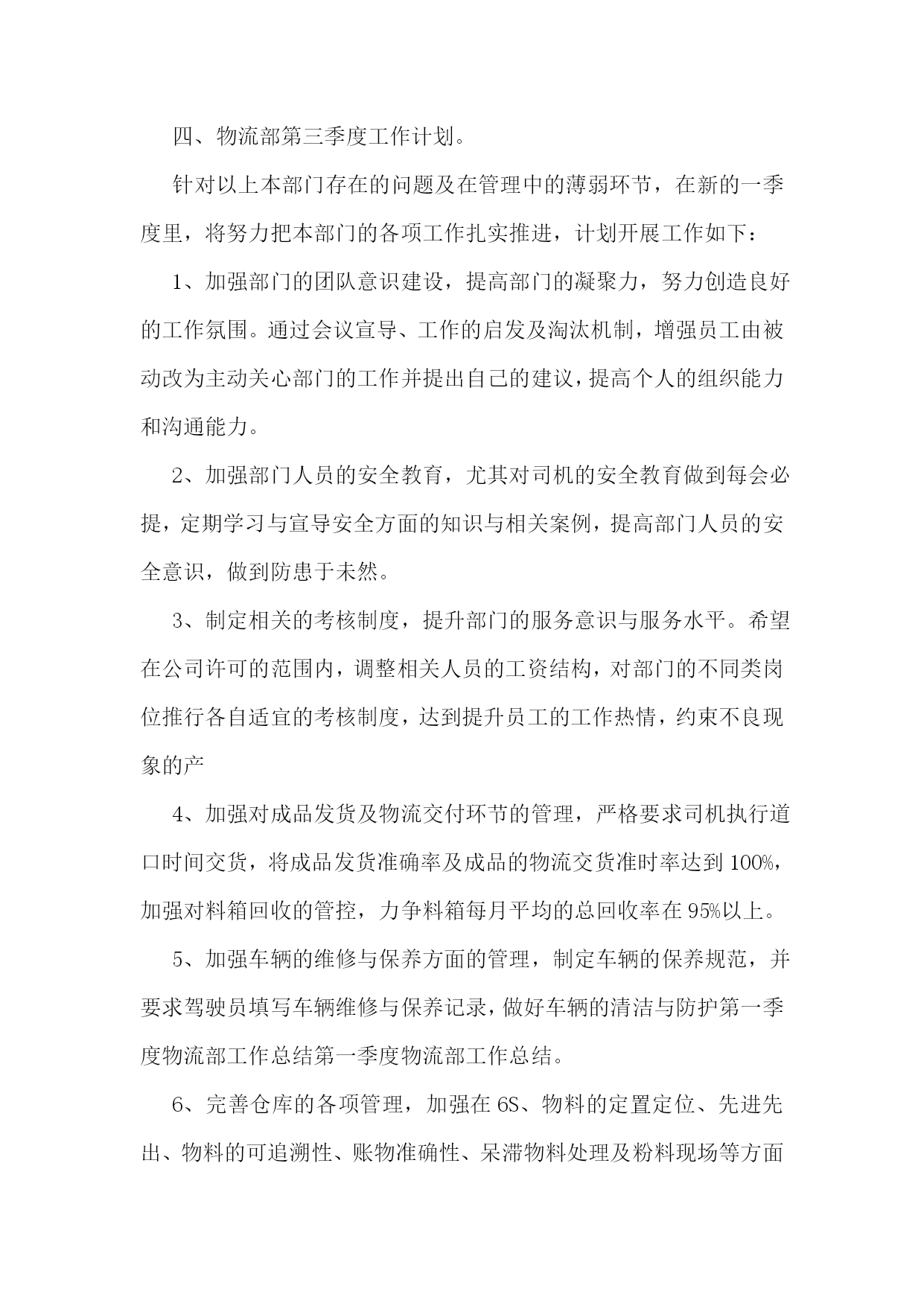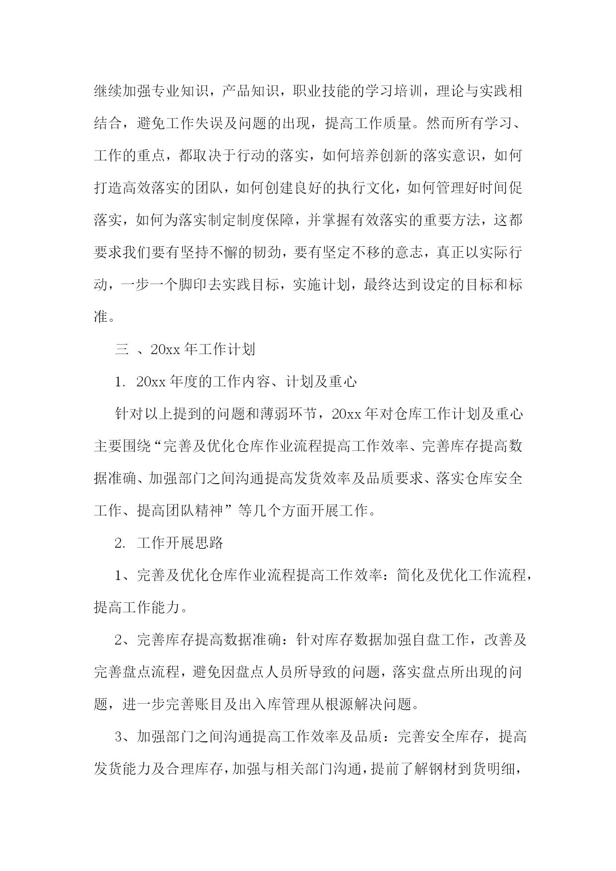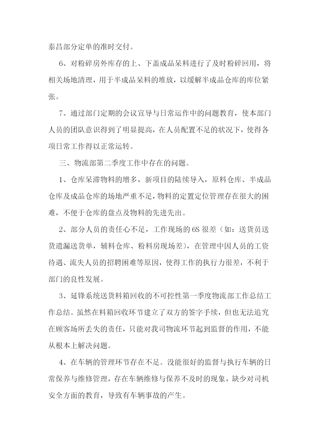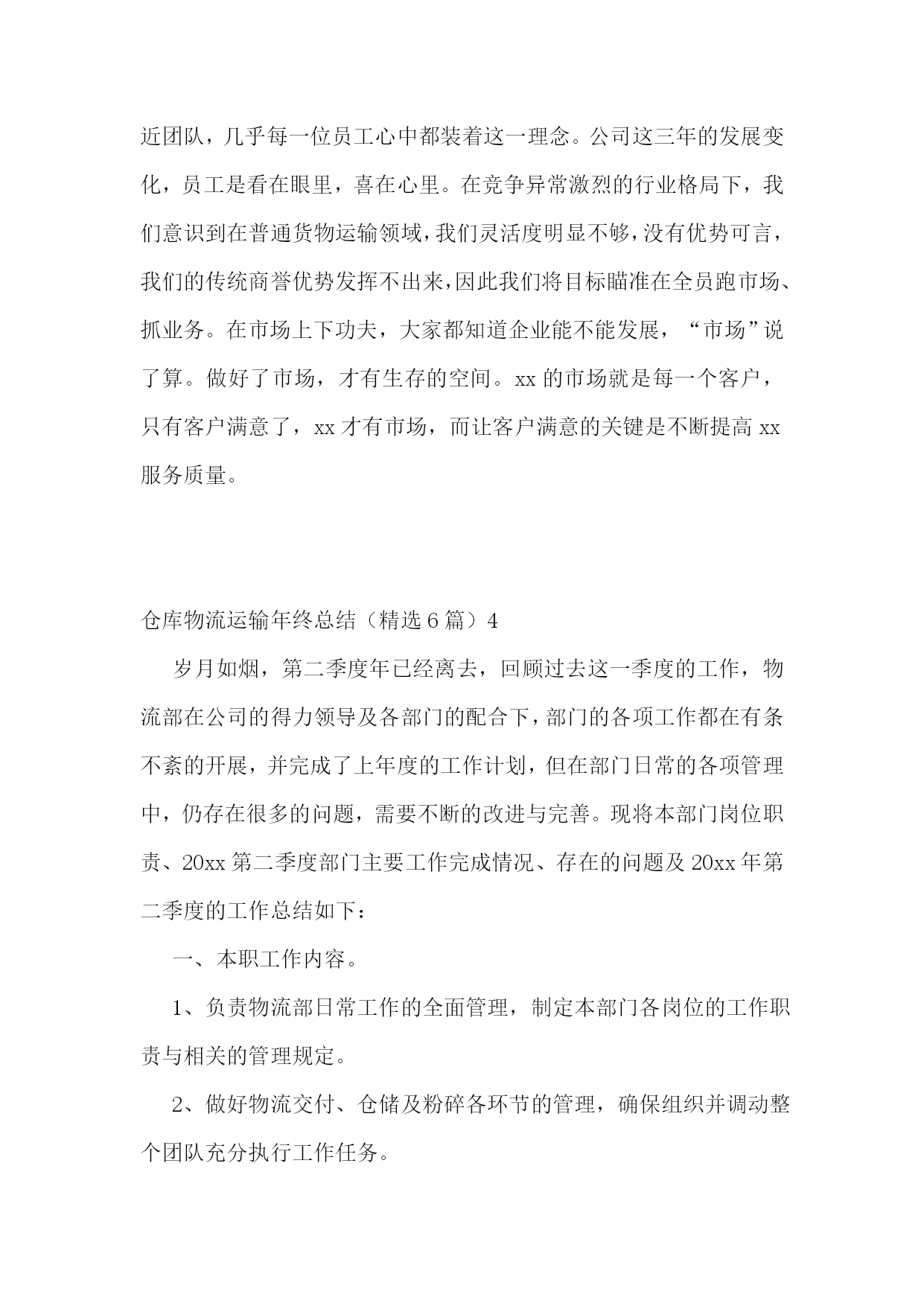 仓库物流运输年终总结仓库物流运输年终总结(精选6篇)1回顾20xx年的工作,在公司领导的带领下,在各部门同事的通力协作下,仓储物流中心经过了一年的努力,从人员的不稳定再到组织框架的重新修订,仓储物流中心克服了各种困难,有条不紊的完成了各项工作任务。现在总结如下:一、仓储物流中心20xx年度完成工作情况1、20xx年度仓储物流中心进钢材数量总共15万吨,出货数量为15万吨。其中工程物流部进货10万吨,出货10万吨。现货贸易部进货5万吨,出货5万吨。2、完成了仓储物流中心道路的全面硬化工作。为了能让钢材更好的堆放以及更好的保护,修建了钢材堆位。对钢材存货区进行了编码,使得更快、更准的找到钢材所放的位置。3、为了更好的规范仓库钢材的作业工作,仓储物流中心与海南荣程投资有限公司达成一致增添了两台大型龙门吊。使得装卸货效率逐渐提高。4、为了更好的协调货物进出规范。仓储物流中心与海南元力通运输服务有限公司达成合作,使得钢材从入库到出库不管效率还是人员安全等方面有了质的飞跃。二、20xx年仓储物流中心工作中遇到的问题仓储物流工作的进步是显著的,然而,也存在许多问题和不足。如接收货中的货物损坏及包装破损处理不及时;出库配送中的货物错发、交接不明、货物少发;钢材保管中安全防范不严等都有发生。货物堆码不标准,进货计划性不强,导致货物库存量不足;帐物对应数据不符;作业流程的不畅;部门协调不力;执行力不够等问题。主要有以下问题:1、责任心不足。工作态度上的被动性,从而导致责任心不强,所以出现问题较多。如,发货中的数量少发、货物错发、部门内部间的交接问题等。责任心的大小,源与责任感的高低,而责任感的高低,则取决于个人意识对企业文化(包括规章制度、绩效考核、竞争机制、奖罚标准、成本观念及自我管理等)的认知度。2、仓储意识及安全意识不够。如仓储环境卫生、平时整理、上下班办公室门不关、理货员理货时不佩戴安全帽等问题。进出安全及存放安全是仓储物流的首要目标。3、执行力不高。在公司内控及绩效考核还没有完善的情况下,部分员工表面工作太明显。领导在的情况下拼命干,领导一走马上丢下不管。通过上述问题,可以看到未来仓储物流工作的任务是艰巨的,许多工作有待于加强、落实。面对公司快速发展,还会出现新的矛盾和问题,如何解决当前管理工作中的问题和错误,应对出现的新矛盾和问题,是摆在我们每一个人面前的课题。对当前出现的问题,首先应当加强认识,培养敢于承担责任的勇气,培养敬业精神,层层落实岗位职责;坚持规章制度面前人人平等,奖罚分明;继续加强素质培训和进行有效沟通,引导、帮助员工端正态度,施教于心,心系于业;继续加强专业知识,产品知识,职业技能的学习培训,理论与实践相结合,避免工作失误及问题的出现,提高工作质量。然而所有学习、工作的重点,都取决于行动的落实,如何培养创新的落实意识,如何打造高效落实的团队,如何创建良好的执行文化,如何管理好时间促落实,如何为落实制定制度保障,并掌握有效落实的重要方法,这都要求我们要有坚持不懈的韧劲,要有坚定不移的意志,真正以实际行动,一步一个脚印去实践目标,实施计划,最终达到设定的目标和标准。三、20xx年工作计划1.20xx年度的工作内容、计划及重心针对以上提到的问题和薄弱环节,20xx年对仓库工作计划及重心主要围绕“完善及优化仓库作业流程提高工作效率、完善库存提高数据准确、加强部门之间沟通提高发货效率及品质要求、落实仓库安全工作、提高团队精神”等几个方面开展工作。2.工作开展思路1、完善及优化仓库作业流程提高工作效率:简化及优化工作流程,提高工作能力。2、完善库存提高数据准确:针对库存数据加强自盘工作,改善及完善盘点流程,避免因盘点人员所导致的问题,落实盘点所出现的问题,进一步完善账目及出入库管理从根源解决问题。3、加强部门之间沟通提高工作效率及品质:完善安全库存,提高发货能力及合理库存,加强与相关部门沟通,提前了解钢材到货明细,规划好库存,提高仓库储存能力。4、落实仓库安全工作:做好安全教育及上下班仓库安全,让每位员工每时每刻都有安全第一观念,防范于未然。5、团队精神塑造:不定期组织人员户外活动或聚餐,从中取得了对员工的了解和合理沟通,得到了和谐及积极的工作气氛,增强员工由原被动改为主动关心仓库的工作并提出自己建议的积极性,提高个人的组织能力和沟通能力。总结的目的是为了更好的计划,因此,我们必须根据公司及仓库的实际情况,制定和实施相应的改进和创新计划,跟踪改进和创新计划的实施进展,验证改进和创新计划的效果,并将行之有效的改进和创新成果在公司各部门进行分享和推广。通过我们不断改进和创新的行动去超越自我,实现仓库管理工作的持续改进,实现卓越。仓库物流运输年终总结(精选6篇)2回顾近一年的工作,对