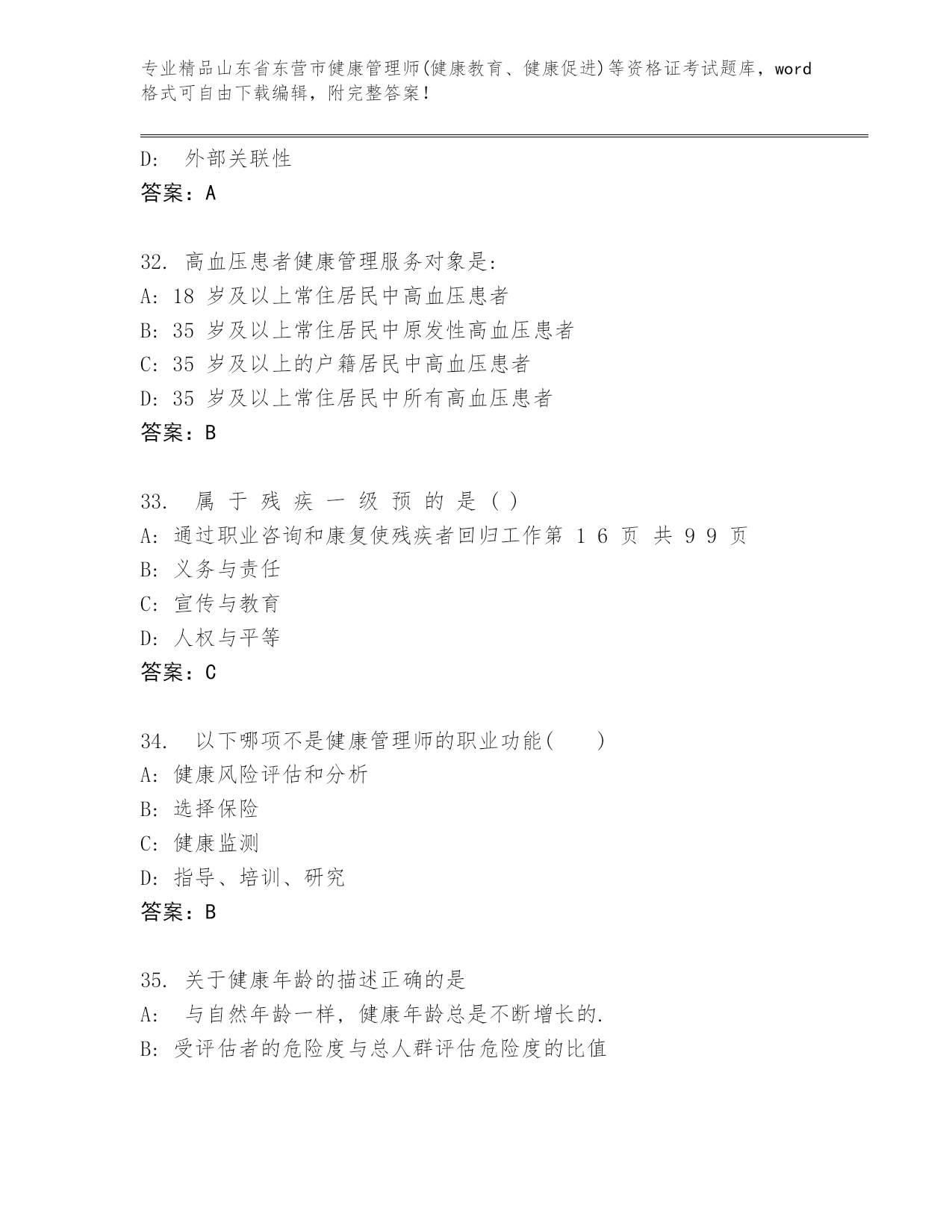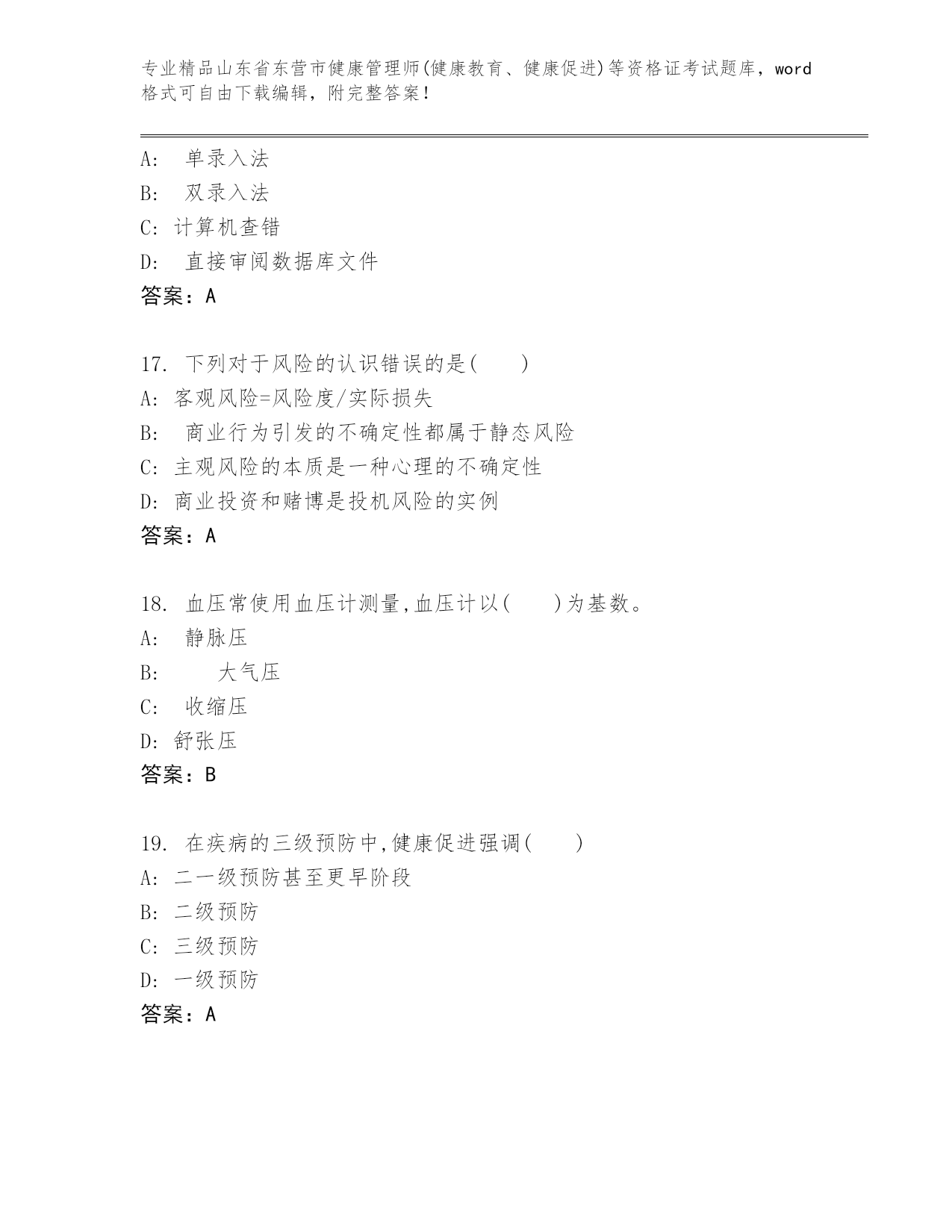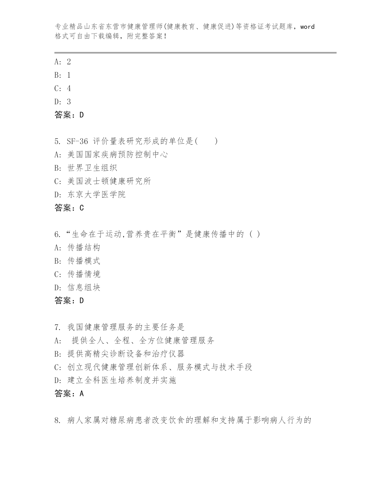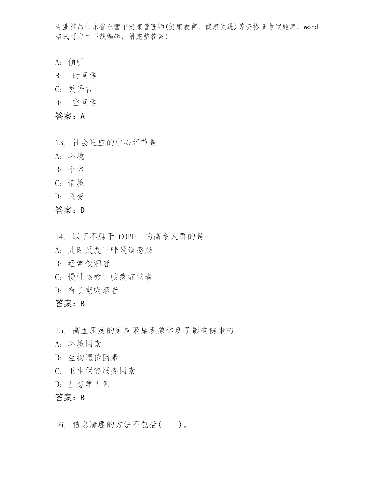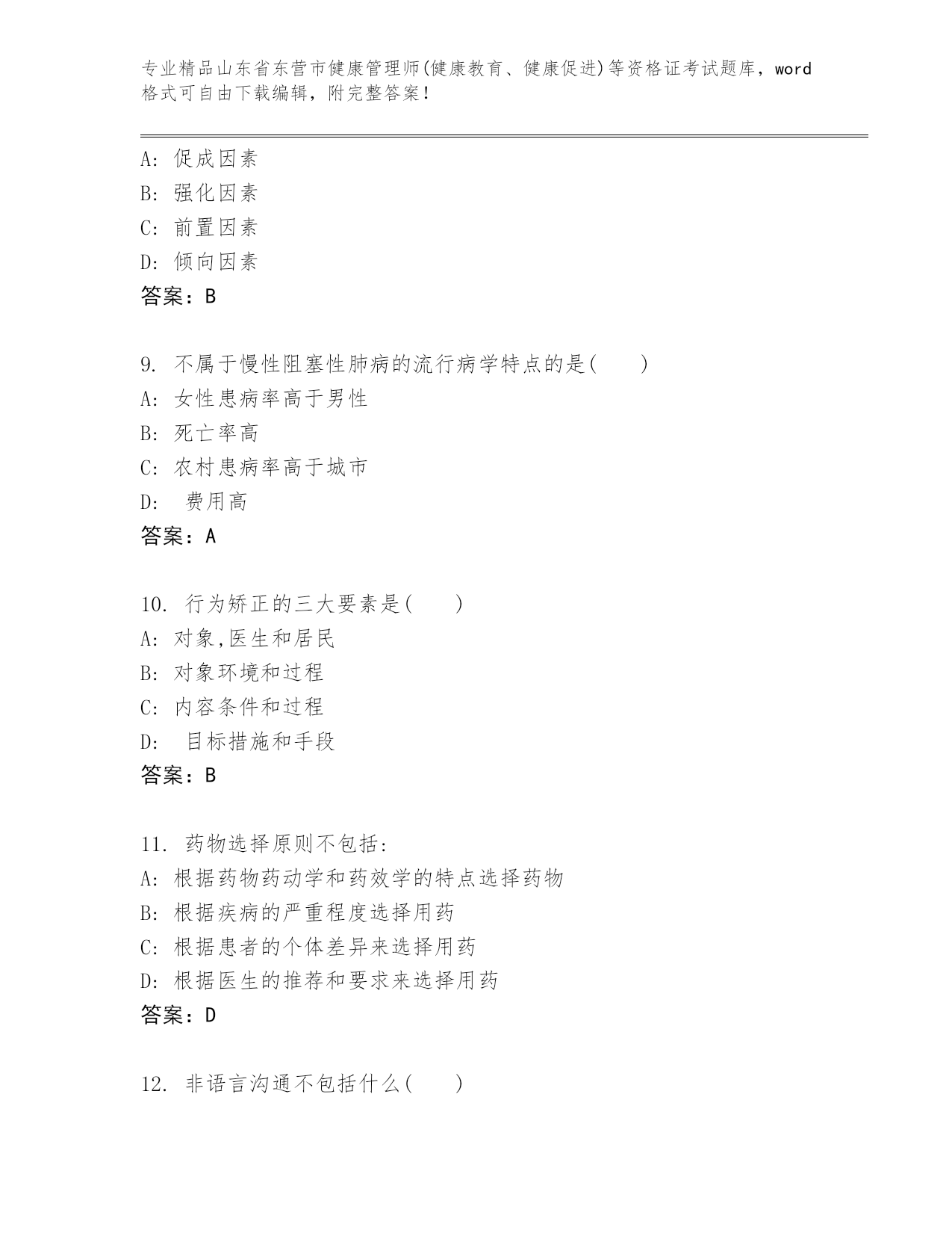山东省东营市健康管理师(健康教育、健康促进)等资格证考试真题及答案免费下载