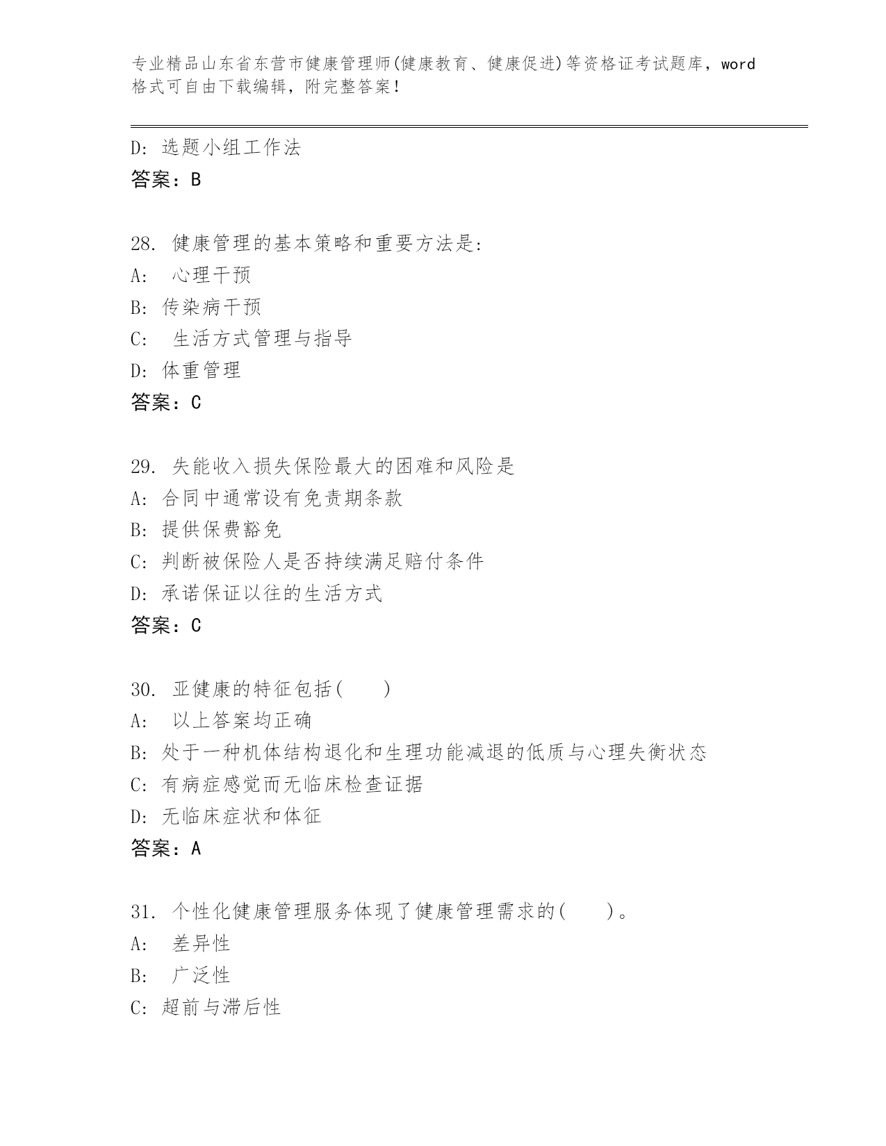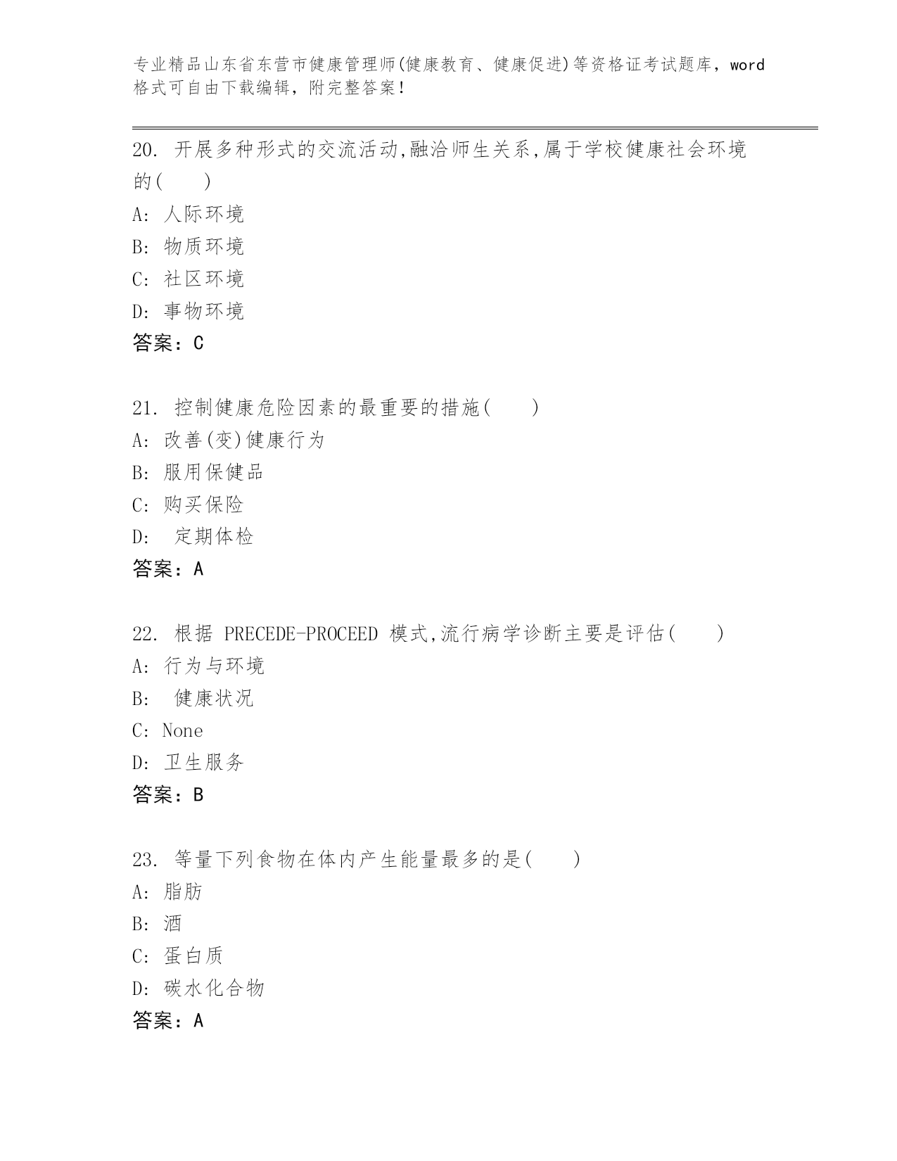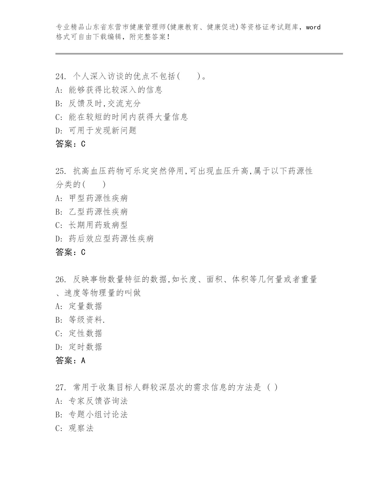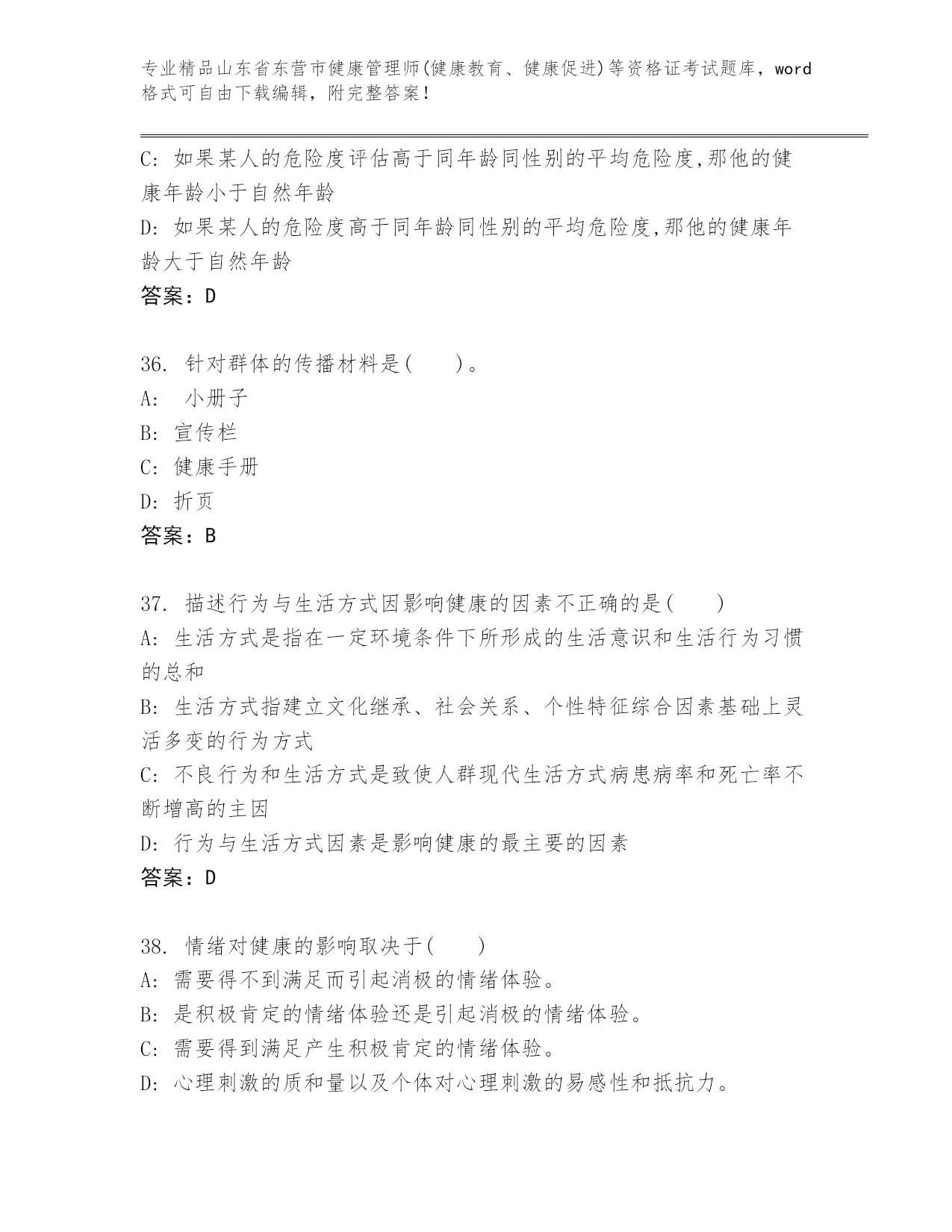 山东省东营市健康管理师(健康教育、健康促进)等资格证考试真题及答案免费下载.docx