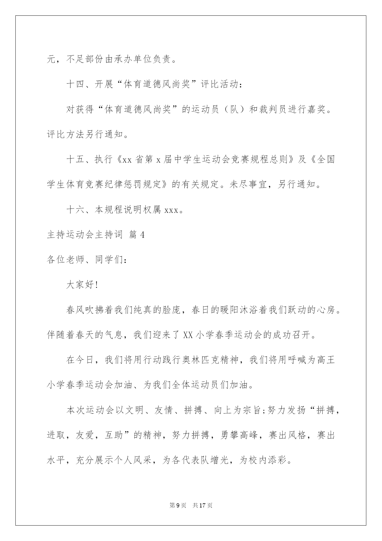 第PAGE\*Arabic\*MERGEFORMAT17页共NUMPAGES\*Arabic\*MERGEFORMAT17页第PAGE\*MERGEFORMAT17页共NUMPAGES\*MERGEFORMAT17页第PAGE\*MERGEFORMAT17页共NUMPAGES\*MERGEFORMAT17页第PAGE\*MERGEFORMAT17页共NUMPAGES\*MERGEFORMAT17页第PAGE\*MERGEFORMAT17页共NUMPAGES\*MERGEFORMAT17页第PAGE\*MERGEFORMAT17页共NUMPAGES\*MERGEFORMAT17页第PAGE\*MERGEFORMAT17页共NUMPAGES\*MERGEFORMAT17页第PAGE\*MERGEFORMAT17页共NUMPAGES\*MERGEFORMAT17页第PAGE\*MERGEFORMAT17页共NUMPAGES\*MERGEFORMAT17页第PAGE\*MERGEFORMAT17页共NUMPAGES\*MERGEFORMAT17页第PAGE\*MERGEFORMAT17页共NUMPAGES\*MERGEFORMAT17页2022主持运动会主持词关于主持运动会主持词合集6篇主持词要尽量增加文化内涵、寓教于乐,不断提高观众的文化学问和素养。时代不断在进步,主持词的好用频率越来越高,信任大家又在为写主持词犯愁了吧!下面是我整理的主持运动会主持词6篇,希望对大家有所帮助。主持运动会主持词篇1各位领导各位老师、同学们:大家上午好!健康的体魄,充足的精力是每一个人工作和学习的重要基础。在全面实施素养教化的今日,发展体育运动,增加身体素养,是我们最迫切的愿望。为丰富全校师生业余文化生活,提高身体素养和竞争意识,增加班级凝合力,经探讨确定我们要在今日举办常庄镇初级中学20xx冬季运动会。本次运动会参赛的各个班级都派出了实力雄厚的最强阵容,众志成城,誓夺全胜。希望各班运动员,坚韧拼搏,赛出风格赛出水平,希望同学们能够以此为契机,掀起全校运动健身的高潮,树立全民健身,终生健身的意识,做一个德智体美全面发展的人才。我们诚心预祝运动会圆满胜利!1、接下来有请我们的校长至开幕词2、下面有请总裁判长郑主任宣读竞赛规则并代表裁判员宣誓3、请运动员和裁判员就位竞赛正式起先其间广播赛事项目通知,和各班送来的广播稿4、颁奖仪式宣布成果,颁奖主持运动会主持词篇2各位老师、同学们:大家好!春风吹拂着我们纯真的脸庞,春日的暖阳沐浴着我们跃动的心房。伴随着春天的气息,我们迎来了xx小学小学第xx届田径运动会的成功召开。在今日,我们将用行动践行奥林匹克精神,我们将呼喊为xx小学第xx届运动会加油、为我们全体运动员们加油。本次运动会以文明、友情、拼搏、向上为宗旨;努力发扬“拼搏,进取,友爱,互助”的精神,努力拼搏,勇攀高峰,赛出风格,赛出水平,充分展示个人风采,为各代表队增光,为校内添彩。在此,我们代表全体师生向参与竞赛的运动员表示热情地庆贺!一、下面请武校长宣布xx小学第xx届田径运动会开幕式现在起先!二、请各代表队入场。(播放运动员《进行曲》)入场式)三、奏国歌。请全体起立,升国旗,奏国歌,敬礼,礼毕四、下面我们请本次运动会组委会主任武校长致运动会开幕词。五、下面我们中心学校的领导讲话,大家欢迎!六、下面我们请裁判员代表-----同学宣誓。七、下面我们请运动员代表------老师宣誓。主持人语:万里长空,任我们尽情翱翔;大地无边,让我们随意纵横!我祝福参赛的运动员能够在这届运动会上创新的佳绩!能够在我校运动史上谱写新的篇章!祝福本届运动会圆满胜利!祝福xx小学的明天会更好!主持运动会主持词篇3一、主办单位:二、承办单位:三、参赛单位:四、竞赛日期及地点:(一)时间:x年x月x日(二)地点:x五、竞赛项目:中学组男子团体、女子团体、男子单人、女子单人、混合双人。六、参赛条件:(一)运动员必需具有x年12月31日前的xx省正式户籍和正式学籍。(二)文化课考试合格,经医院检查证明身体健康,相宜参与所报名项目竞赛的中学、初中在校学生。(三)必需在xx省学生体育联合会履行中学生运动员正式注册手续,并获得广东省学生运动员注册卡者。(四)双重学籍的学生(即中学和体育运动学校一般班学生),在填写“运动员参赛资格审查表”时须注明在何校上文化课。(五)参赛运动员参赛年龄为x周岁。七、报名方法:(一)各参赛队限报领队1人,教练员2人,男、女子运动员各4人。(二)各组别单人项目每单位限报二人、混合双人限报二对。(三)每名运动员只能