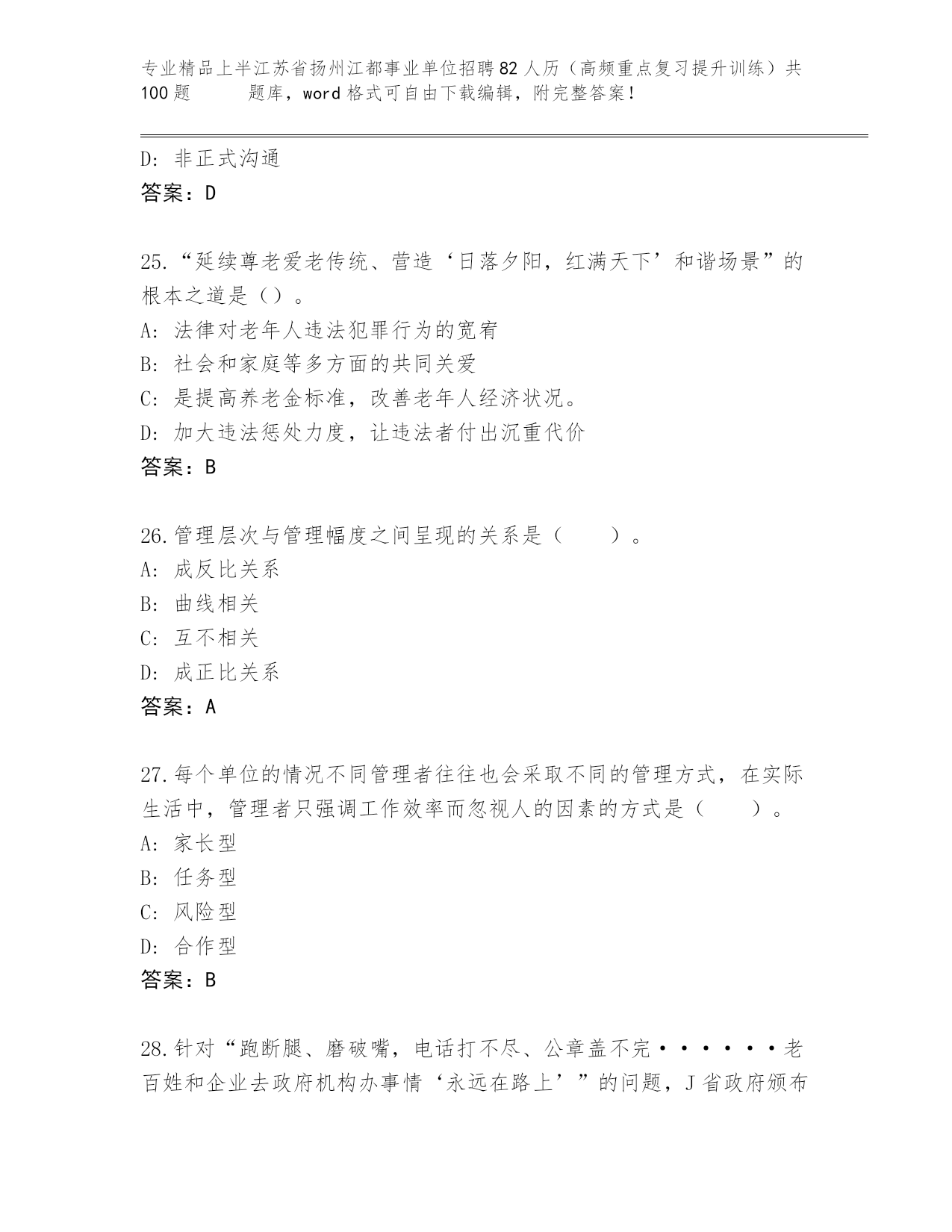 上半江苏省扬州江都事业单位招聘82人历(高频重点复习提升训练)共100题 真题题库精品(各地真题)