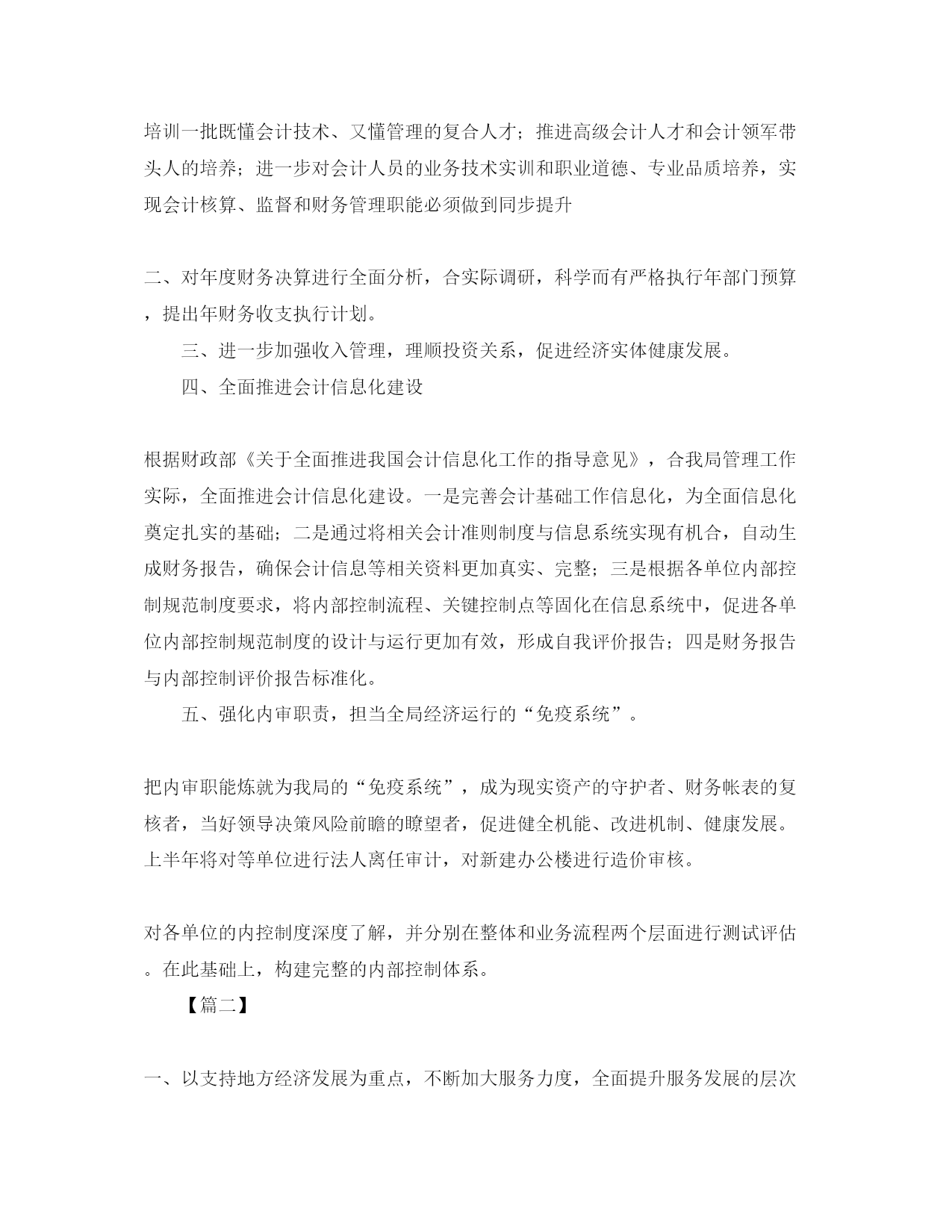 此资料由网络收集而来,如有侵权请告知上传者立即删除。资料共分享,我们负责传递知识。工商部门工作计划例文【篇一】围绕全局中心工作,明确工作重心,寻求科学的方式方法,研究具体对策,进一步推进财务管理水平,为构建安全、健康、和谐工商的长远目标努力。主要工作目标在继续抓好会计基础工作的同时,致力于工作重心从会计核算向会计监督和财务管理稳步推进。构建科学完整的内控体系,积极推动内审工作的监督职能,强化预算和资金风险的管理,建立有效的激励机制。【3】有计划有步骤促进和稳妥解决原有双轨管理体制下遗留的突出财务问题。【4】做好资产管理工作,进一步对往来款项清理,加大财务规范化管理。【5】进一步加强会计电算网络化信息工程建设,推进会计信息化工作全面实施。继续做好会计人员职业道德教育和专业知识、实践能力培训。【6】坚持积极稳妥的原则,对重大投资和基建项目进行财务评审,防范资金风险,提高资金使用效果。围绕上述目标,做好五个方面工作一、严格抓好会计基础工作,规范会计机构设置和人员配置,强化会计核算和监督职能。培训一批既懂会计技术、又懂管理的复合人才;推进高级会计人才和会计领军带头人的培养;进一步对会计人员的业务技术实训和职业道德、专业品质培养,实现会计核算、监督和财务管理职能必须做到同步提升二、对年度财务决算进行全面分析,合实际调研,科学而有严格执行年部门预算,提出年财务收支执行计划。三、进一步加强收入管理,理顺投资关系,促进经济实体健康发展。四、全面推进会计信息化建设根据财政部《关于全面推进我国会计信息化工作的指导意见》,合我局管理工作实际,全面推进会计信息化建设。一是完善会计基础工作信息化,为全面信息化奠定扎实的基础;二是通过将相关会计准则制度与信息系统实现有机合,自动生成财务报告,确保会计信息等相关资料更加真实、完整;三是根据各单位内部控制规范制度要求,将内部控制流程、关键控制点等固化在信息系统中,促进各单位内部控制规范制度的设计与运行更加有效,形成自我评价报告;四是财务报告与内部控制评价报告标准化。五、强化内审职责,担当全局经济运行的“免疫系统”。把内审职能炼就为我局的“免疫系统”,成为现实资产的守护者、财务帐表的复核者,当好领导决策风险前瞻的瞭望者,促进健全机能、改进机制、健康发展。上半年将对等单位进行法人离任审计,对新建办公楼进行造价审核。对各单位的内控制度深度了解,并分别在整体和业务流程两个层面进行测试评估。在此基础上,构建完整的内部控制体系。【篇二】一、以支持地方经济发展为重点,不断加大服务力度,全面提升服务发展的层次和效果(一)强力推行12315“五进”工作,促进社会和谐发展。科学整合12315网络,实现*服务网络的全覆盖,以保护社区居民、农村村民、学校学生等弱势群体消费权益为重点,突出抓好消费*教育“进校园、进社区、进农村、进超市、进企业”工作,以全新的面貌迎接全国消费*“五进”工作现场会的召开。(二)建立健全服务制度,为促进地方经济的发展出谋划策。一是建立“工商顾问制度”。向企业提出有针对性、可操作性的政策建议。二是进一步完善市场主体登记发布制度。为推进经济结构调整和增长方式转变搞好服务。三是进一步发挥工商联络员作用。拓宽“绿色通道”,对企业进行行政指导,帮助解决企业在组建和发展过程中遇到的问题。(三)制定具体措施,为促进地方经济的发展创造条件。一是继续细化我局制定的42条措施,围绕推进民营经济发展和招商引资工作搞好服务。二是关注社会就业问题。做到培养一家,发展一家,壮大一家,形成“数质并举”的民营经济发展导向。三是大力支持市工业园区建设、招商引资项目和新农村建设。(四)认真实施商标战略,支持企业做大做强。一是大力推进“品牌宁夏”建设。以全市6大特色产业集群为重点,加快产业集群自主品牌建设,促进特色产业的快速发展。二是开展“商标强企”活动。帮助企业建立品牌培育库,形成重点商标企业品牌帮扶机制。三是稳步推进全市注册商标总量持续增长。力争到年底,全市注册商标申请量同比增长25%,证明商标、驰、着名商标认定取得新的进展。(五)推进“红盾护农”工程,支持社会主义新农村建设。一是继续推进“红盾护农”。探索实施农资经营户分级、分类监管制度。二继续推进“经纪活农”。不断提升农村经纪人的经纪业务水平和能力,使其健康发展。三是继续推进“合同助农”。规范涉农合同管理,调解涉农合同纠纷,查处涉农合同欺诈行为。二、以营造规范有序的市场环境为目标,切实加强市场监管,着力保障全市经济平稳较快发展(一)全面加强流通环节食品安全监管。一是进一步建立健全长效监管机制巩固整治成果。继续依法监督食品经营户建立并执行“一单通”台账制度,积极推进食品安全长效监管机制。二是积极研究制定流通环节食品安全信用分类监管办法