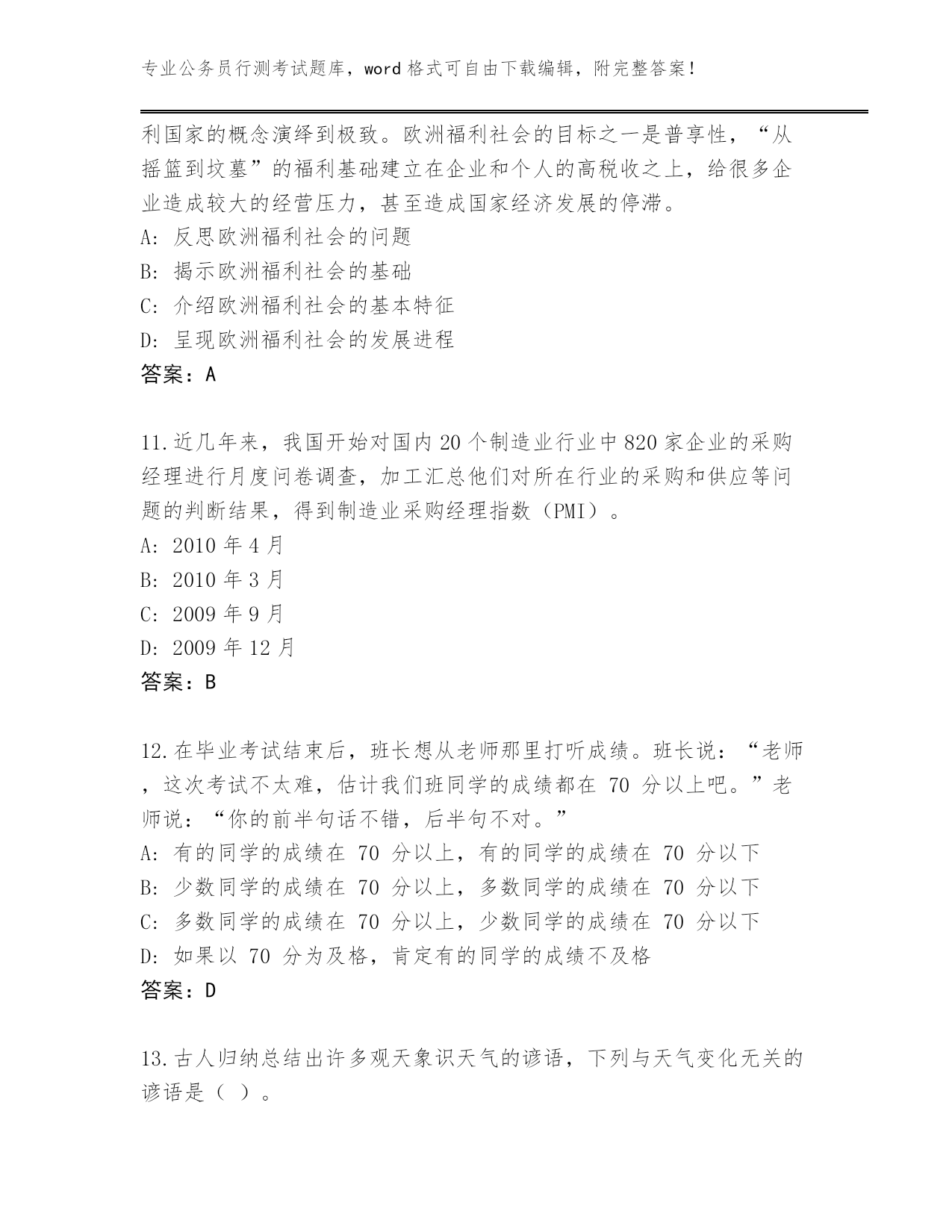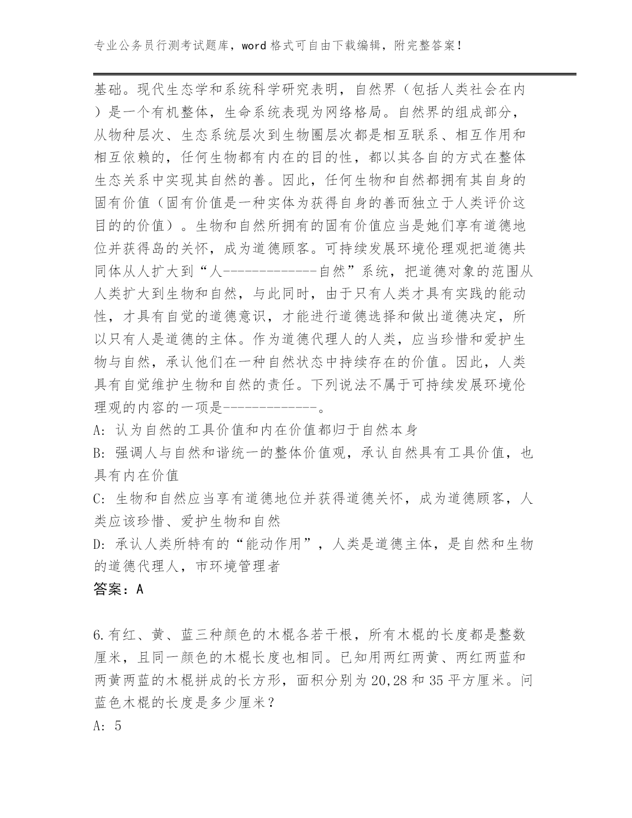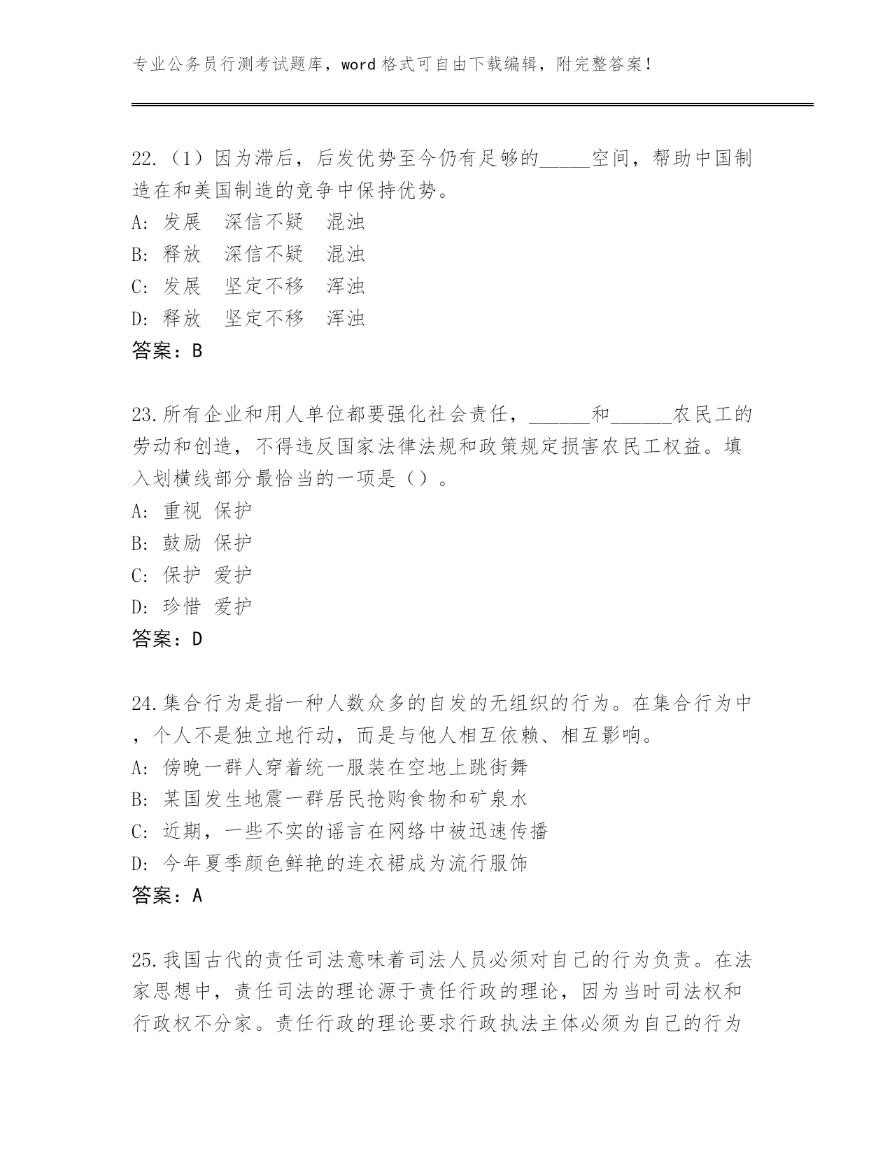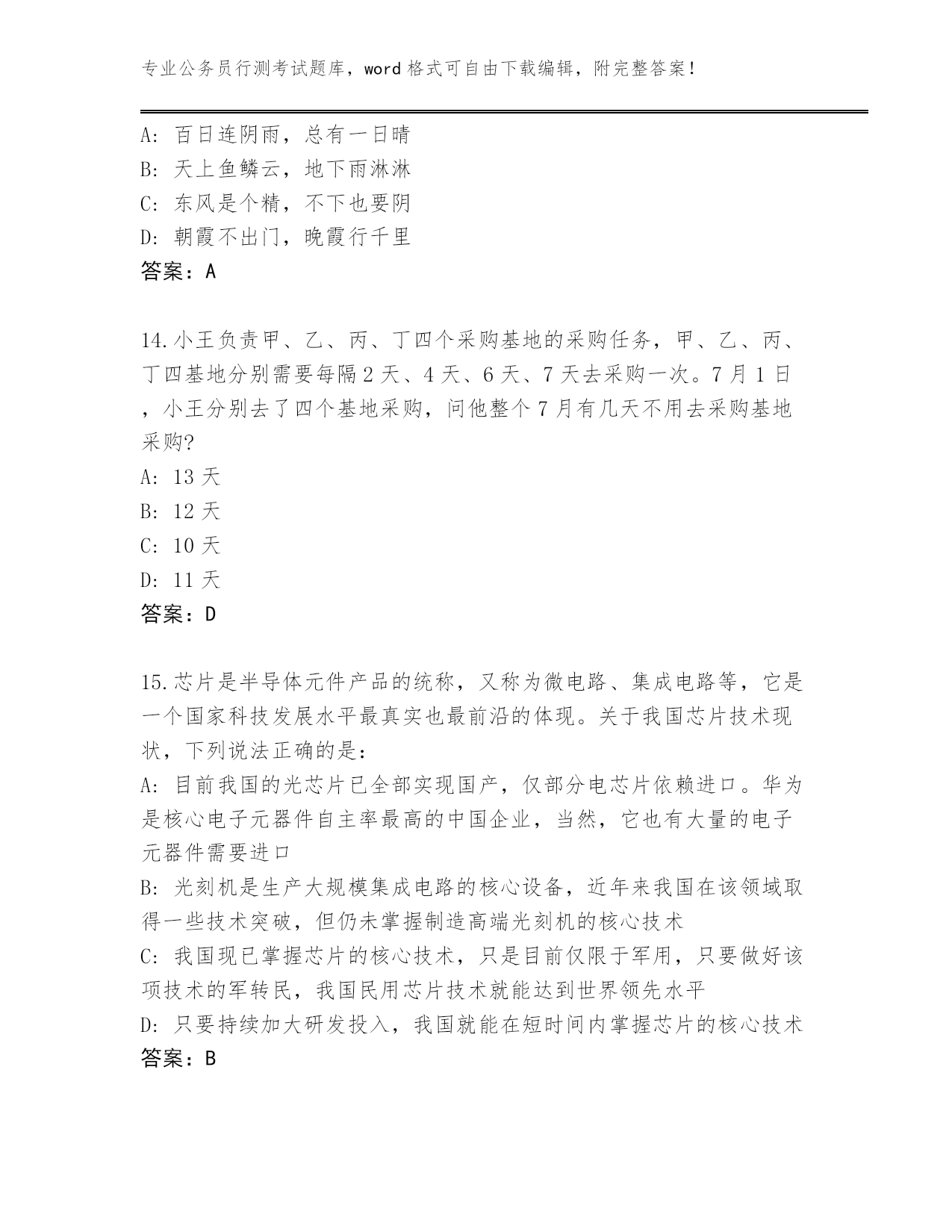 湖北省阳新县整理公务员行测考试真题带答案