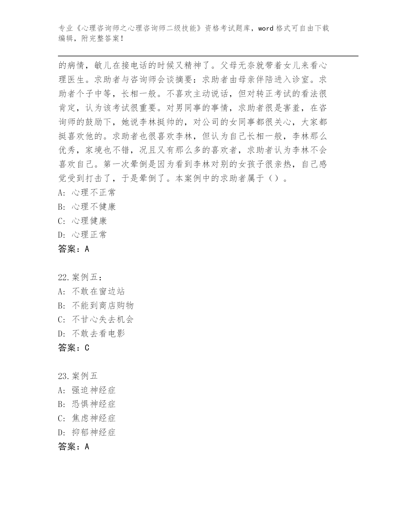 吉林省德惠市内部使用《心理咨询师之心理咨询师二级技能》考试必考200题题库(实用)