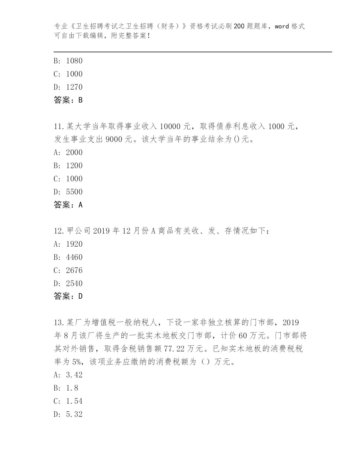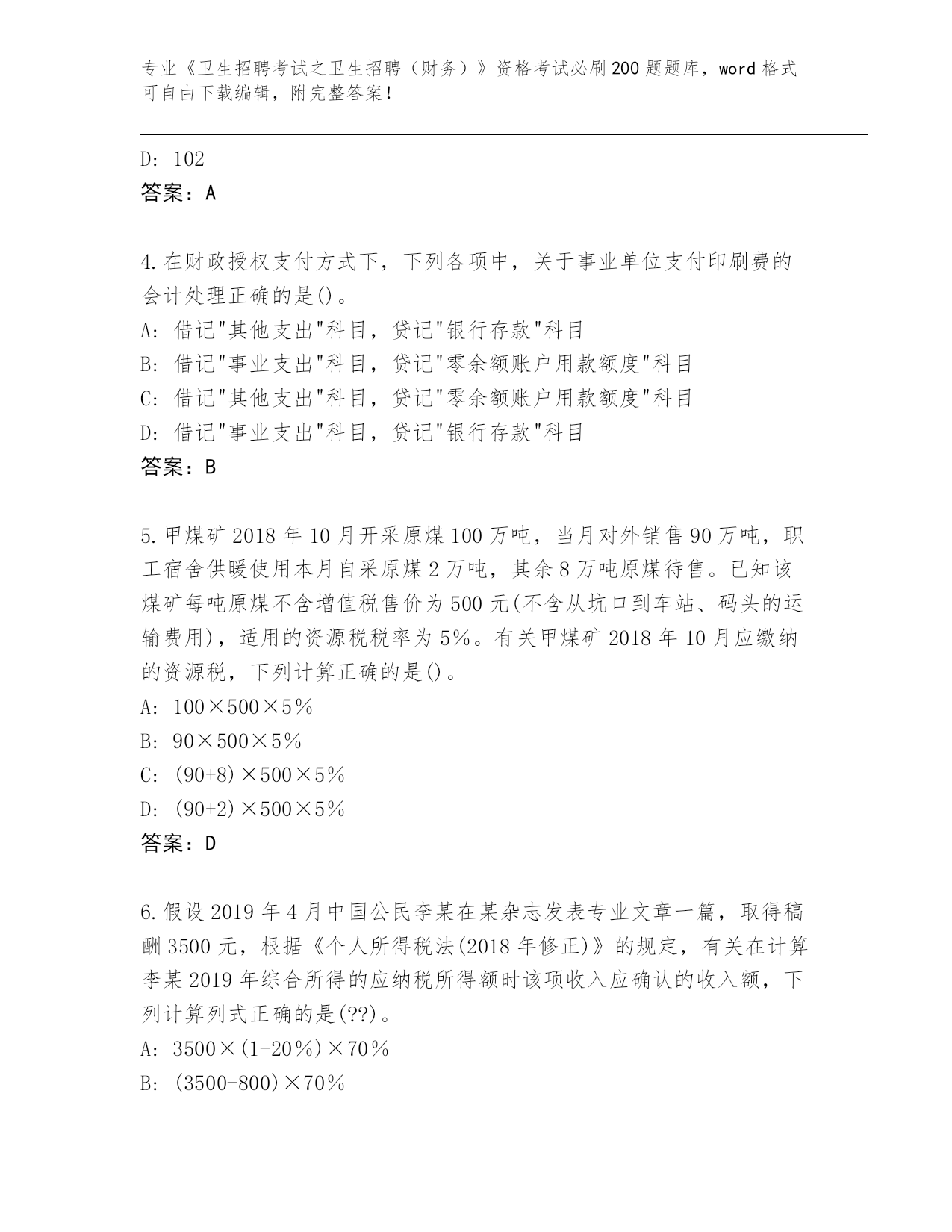甘肃省《卫生招聘考试之卫生招聘(财务)》资格考试必刷200题通关秘籍题库(典型题)