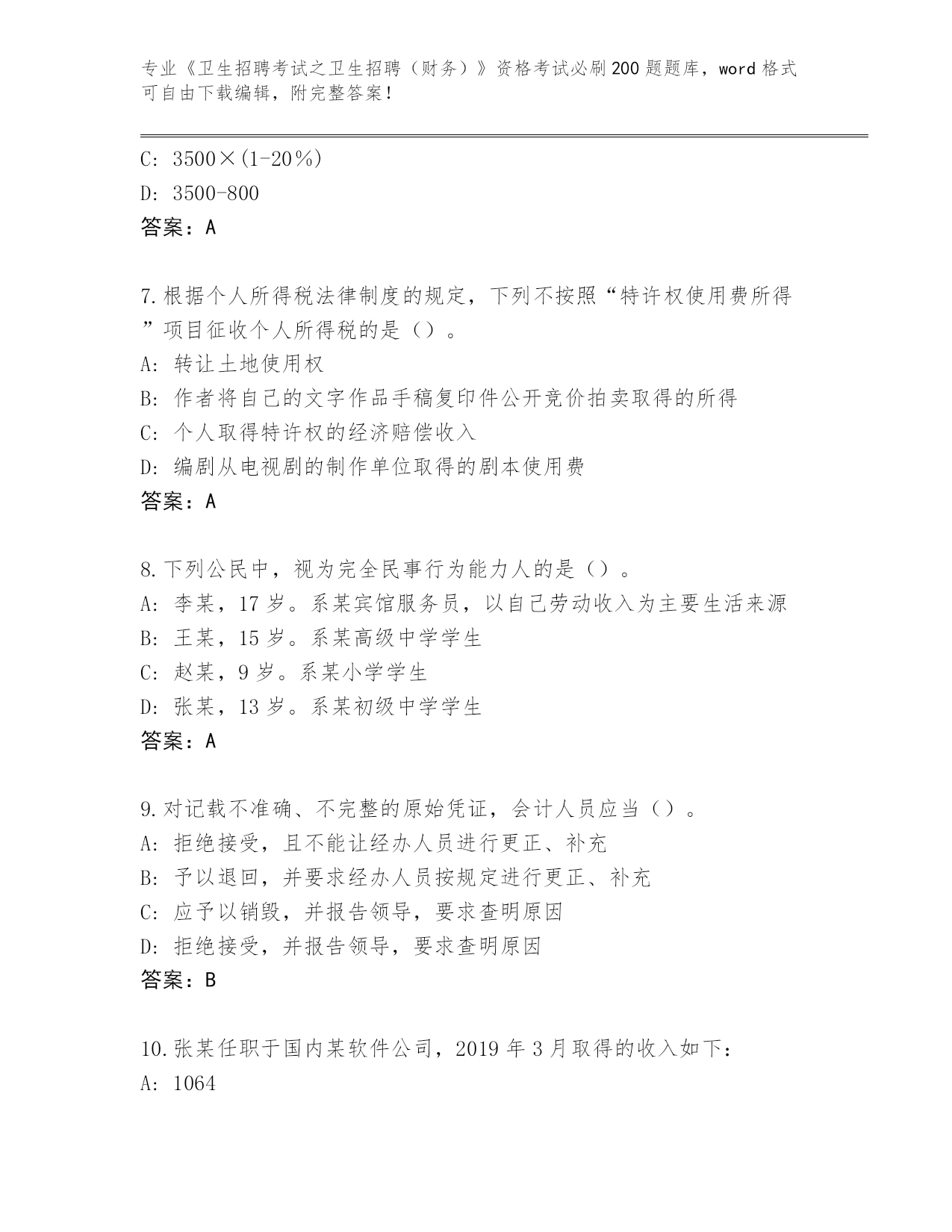 甘肃省环县整理《卫生招聘考试之卫生招聘(财务)》考试必刷200题题库及参考答案(典型题)