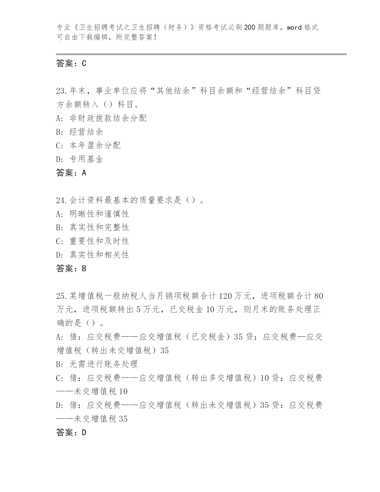 甘肃省2024年《卫生招聘考试之卫生招聘(财务)》资格考试必刷200题通关秘籍题库(典型题)