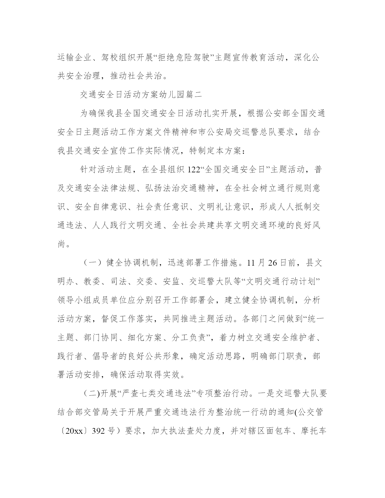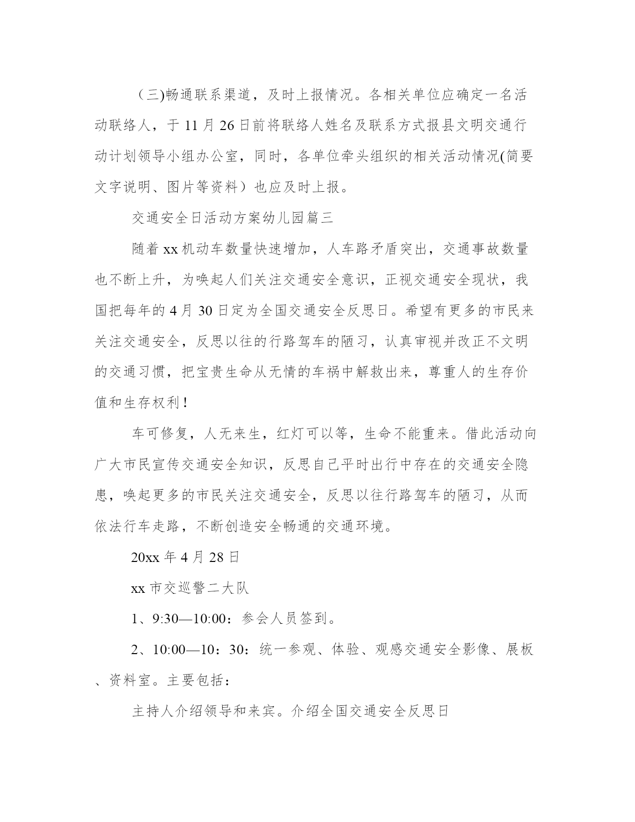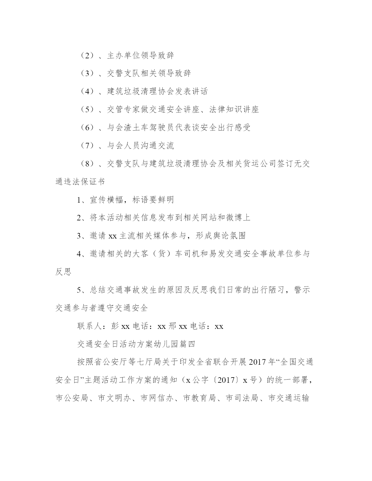 交通安全日活动方案幼儿园交通安全日活动方案(优质15篇).docx