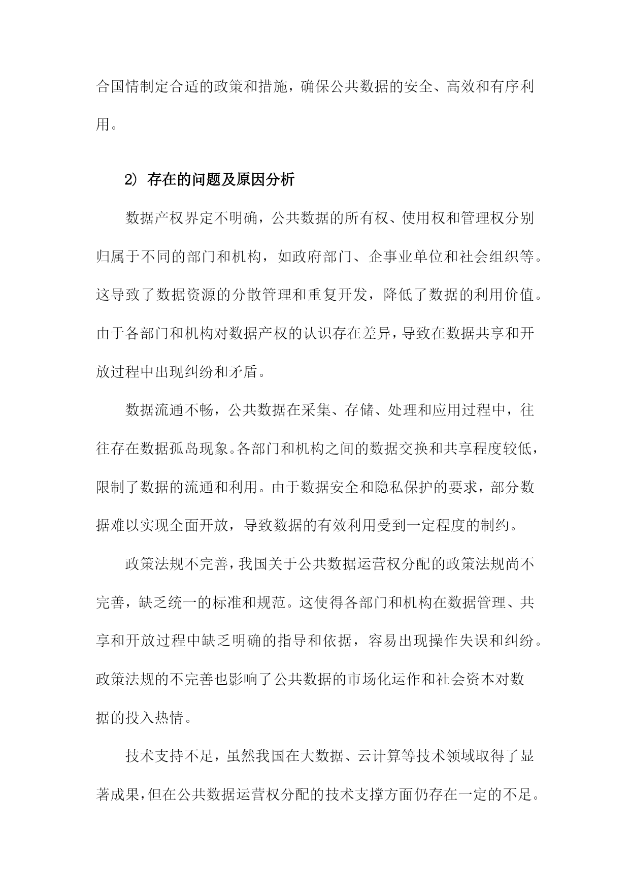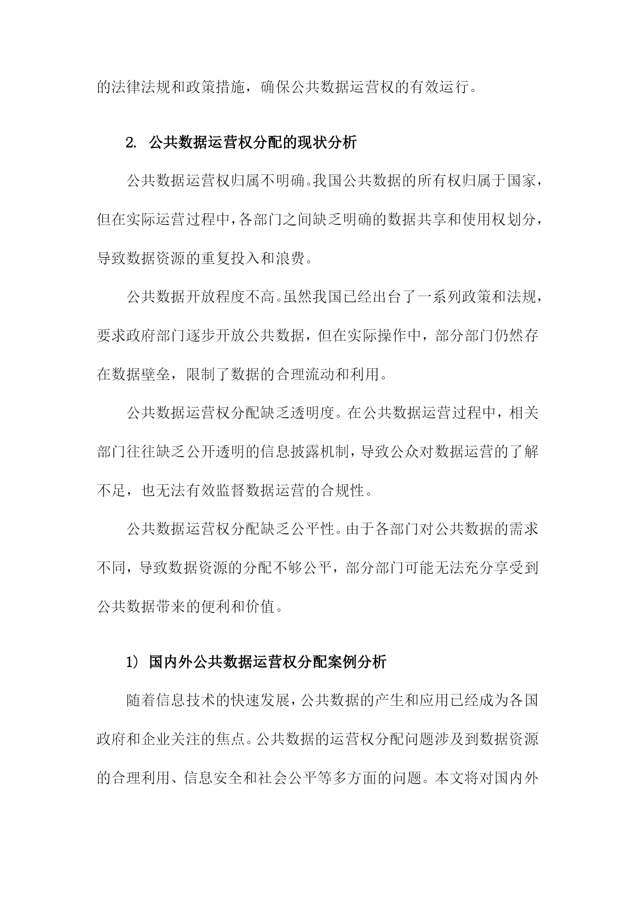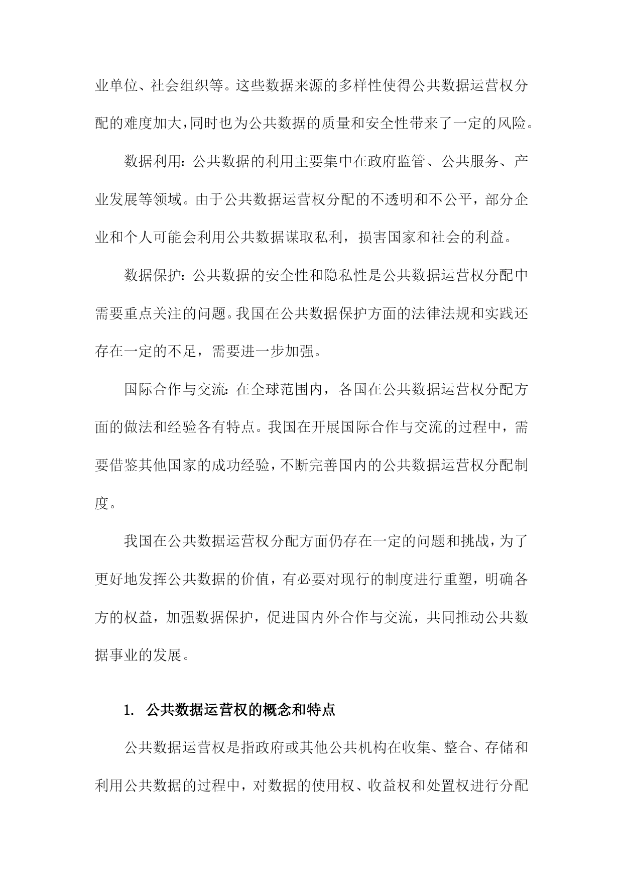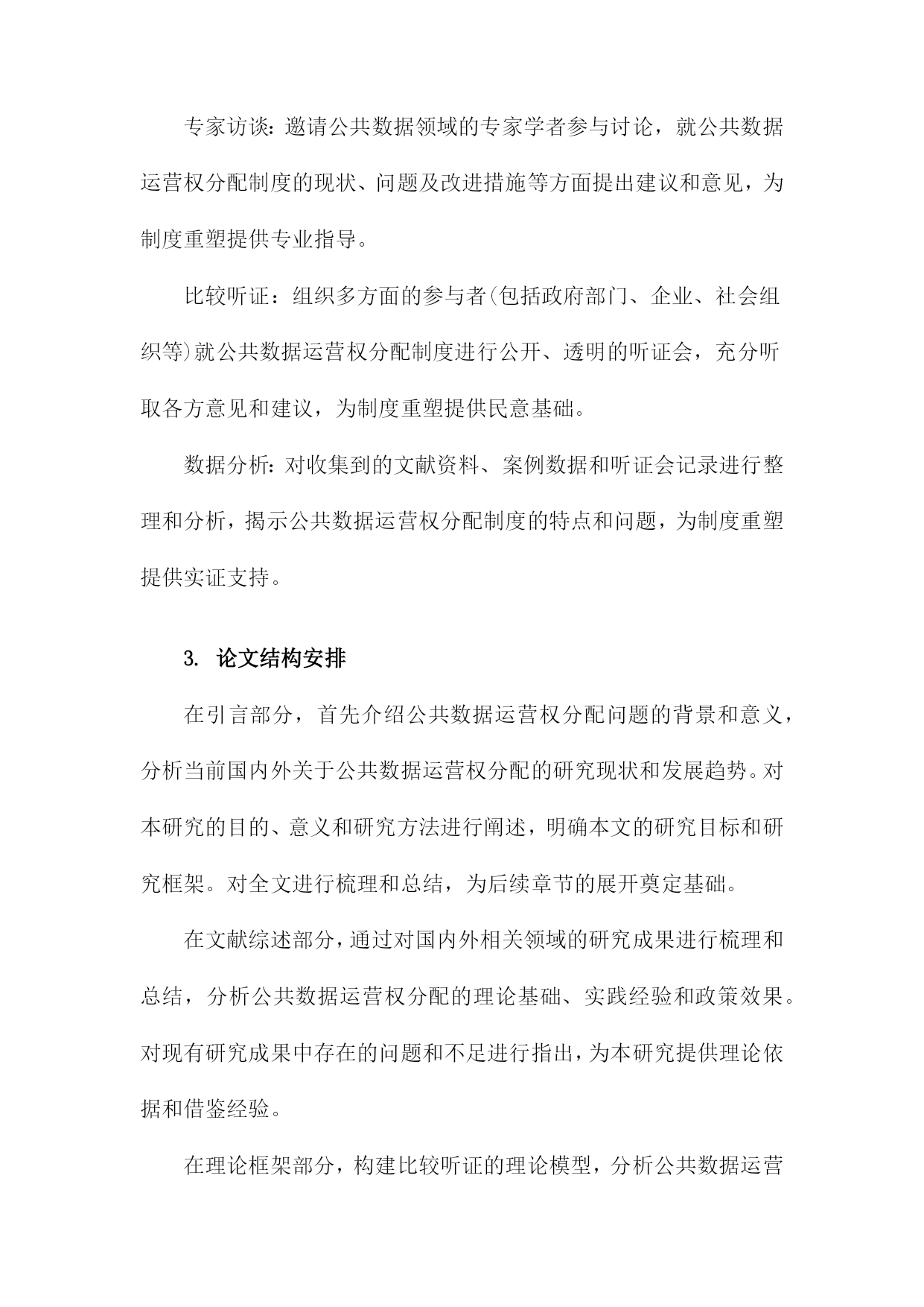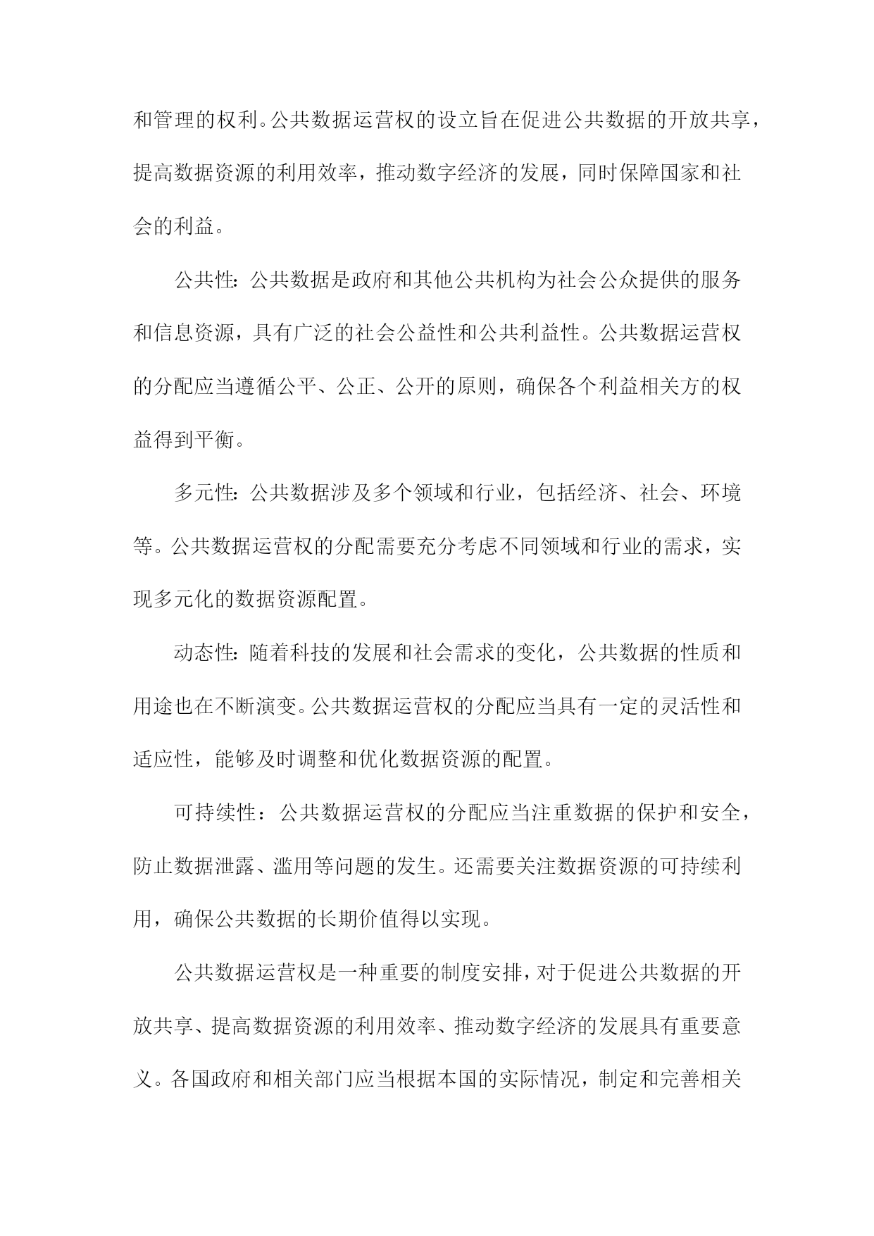 比较听证:公共数据运营权分配的制度重塑一、简述随着信息技术的飞速发展和互联网的普及,公共数据已经成为了一种重要的社会资源。公共数据的运营权分配问题涉及到政府、企业和公众等多方利益,对于提高公共数据的利用效率和保障公共利益具有重要意义。当前我国在公共数据运营权分配方面存在一定的制度不完善和运行不规范的问题,这不仅影响了公共数据的合理利用,也可能导致公共利益受损。有必要对现行的公共数据运营权分配制度进行重塑,以实现公共数据的合理配置和有效利用。比较听证作为一种多元参与的决策机制,可以为公共数据运营权分配的制度重塑提供有益的借鉴。通过比较听证,可以充分听取各方的意见和建议,有助于形成更加科学、合理的公共数据运营权分配方案。本文档将通过对比分析不同国家和地区在公共数据运营权分配方面的立法、政策和实践经验,探讨如何在我国实施比较听证制度,以促进公共数据运营权分配制度的改革和完善。1.研究背景和意义随着信息技术的飞速发展和互联网的普及,公共数据已经成为了政府、企业和社会各界关注的重要资源。公共数据的运营权分配问题涉及到数据资源的合理利用、信息安全和社会公平等多个方面,对于提高政府决策效率、促进经济发展和保障公民权益具有重要意义。当前我国在公共数据运营权分配方面存在一定的制度性缺陷,如权责不清、监管不力等问题,这些问题不仅影响了公共数据的合理利用,也制约了我国信息化建设的进程。对公共数据运营权分配的制度进行重塑具有重要的现实意义。比较听证作为一种多元化的决策参与方式,可以有效地推动公共政策制定过程的民主化、科学化和透明化。通过比较听证,可以充分听取各方利益相关者的意见和建议,有助于形成更加合理、公正的公共数据运营权分配制度。本研究通过对我国公共数据运营权分配制度的比较听证分析,旨在为政府部门提供有关制度设计和改革的建议,以期为我国公共数据运营权分配制度的完善和发展提供有益的借鉴。2.研究目的和方法文献综述:通过收集和分析国内外关于公共数据运营权分配制度的相关文献,了解现有制度的优点、不足以及发展趋势,为本研究提供理论基础和参考依据。案例分析:选择具有代表性的公共数据运营权分配制度进行深入剖析,对比分析不同制度在数据获取、使用、保护等方面的差异和特点,以期为制度重塑提供实践经验和借鉴。专家访谈:邀请公共数据领域的专家学者参与讨论,就公共数据运营权分配制度的现状、问题及改进措施等方面提出建议和意见,为制度重塑提供专业指导。比较听证:组织多方面的参与者(包括政府部门、企业、社会组织等)就公共数据运营权分配制度进行公开、透明的听证会,充分听取各方意见和建议,为制度重塑提供民意基础。数据分析:对收集到的文献资料、案例数据和听证会记录进行整理和分析,揭示公共数据运营权分配制度的特点和问题,为制度重塑提供实证支持。3.论文结构安排在引言部分,首先介绍公共数据运营权分配问题的背景和意义,分析当前国内外关于公共数据运营权分配的研究现状和发展趋势。对本研究的目的、意义和研究方法进行阐述,明确本文的研究目标和研究框架。对全文进行梳理和总结,为后续章节的展开奠定基础。在文献综述部分,通过对国内外相关领域的研究成果进行梳理和总结,分析公共数据运营权分配的理论基础、实践经验和政策效果。对现有研究成果中存在的问题和不足进行指出,为本研究提供理论依据和借鉴经验。在理论框架部分,构建比较听证的理论模型,分析公共数据运营权分配的核心问题和关键因素。通过对不同国家和地区的数据运营权分配制度进行比较分析,揭示其异同点和优劣势,为我国公共数据运营权分配制度的重塑提供理论支持。在实证分析部分,选取具有代表性的数据案例,运用统计分析方法对我国公共数据运营权分配制度的现状进行实证检验。通过对数据的描述性统计、相关性分析、回归分析等方法,深入挖掘公共数据运营权分配制度的影响因素和作用机制,为政策制定者提供有益的参考依据。在政策建议部分,根据前述理论研究和实证分析结果,提出针对我国公共数据运营权分配制度的重塑建议。主要包括完善法律法规体系、优化数据资源配置、强化数据安全保障、推动政府与企业合作等方面。针对不同行业和领域的特点,提出有针对性的数据运营权分配策略和措施,以促进公共数据的合理利用和社会经济发展。二、公共数据运营权分配的现状分析政策法规方面:虽然我国已经出台了一系列关于公共数据管理的政策法规,如《中华人民共和国政府信息公开条例》等,但在公共数据运营权分配方面的具体规定仍然不够明确。这导致了在实际操作中,各方在公共数据运营权分配方面的权益难以得到有效保障。数据来源:目前,我国公共数据的来源主要包括政府部门、企事业单位、社会组织等。这些数据来源的多样性使得公共数据运营权分配的难度加大,同时也为公共数据的质量和安全性带来了一定的风险。数据利用:公