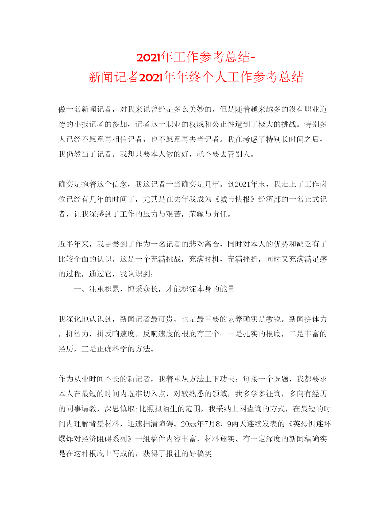 2022年工作参考总结新闻记者终个人工作参考总结.docx