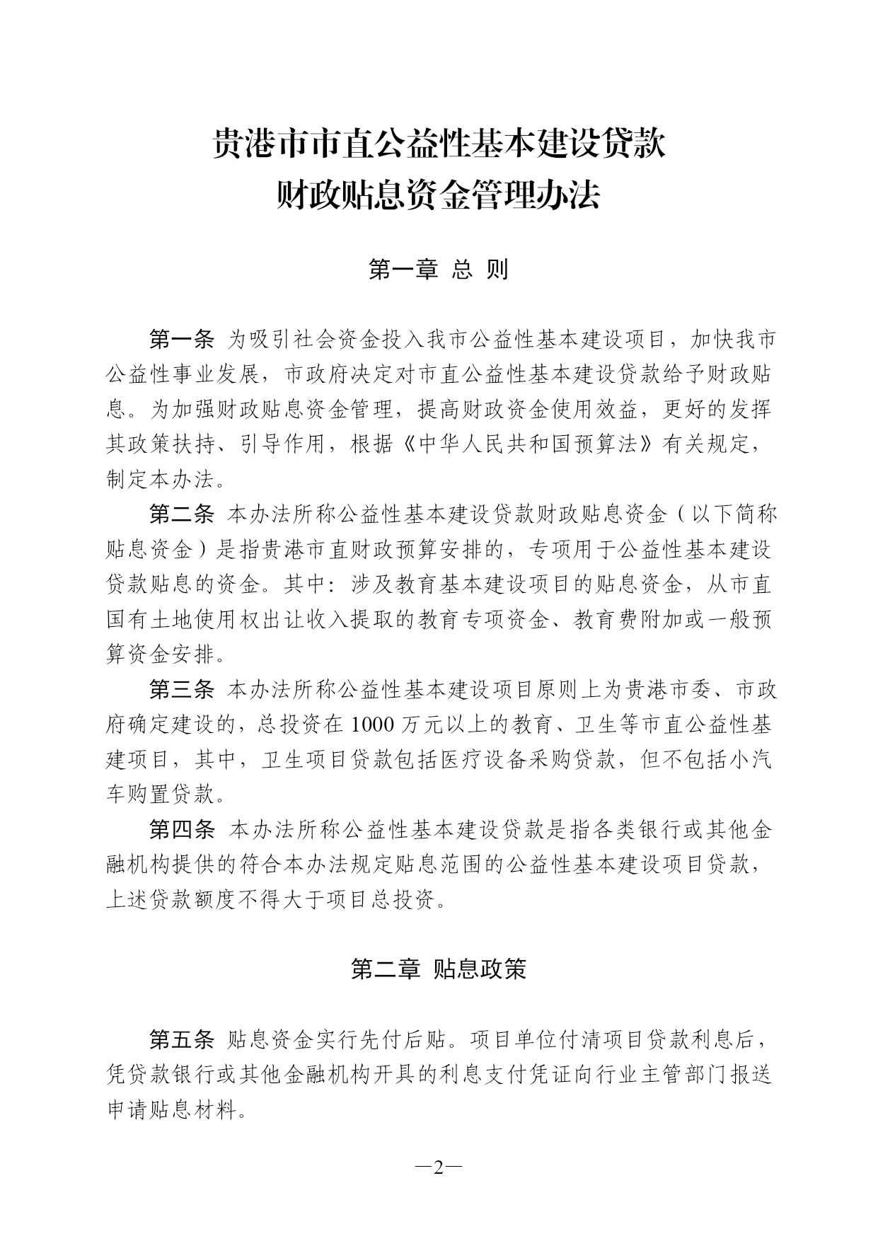 贵港市市直公益性基本建设贷款财政贴息资金管理办法.doc