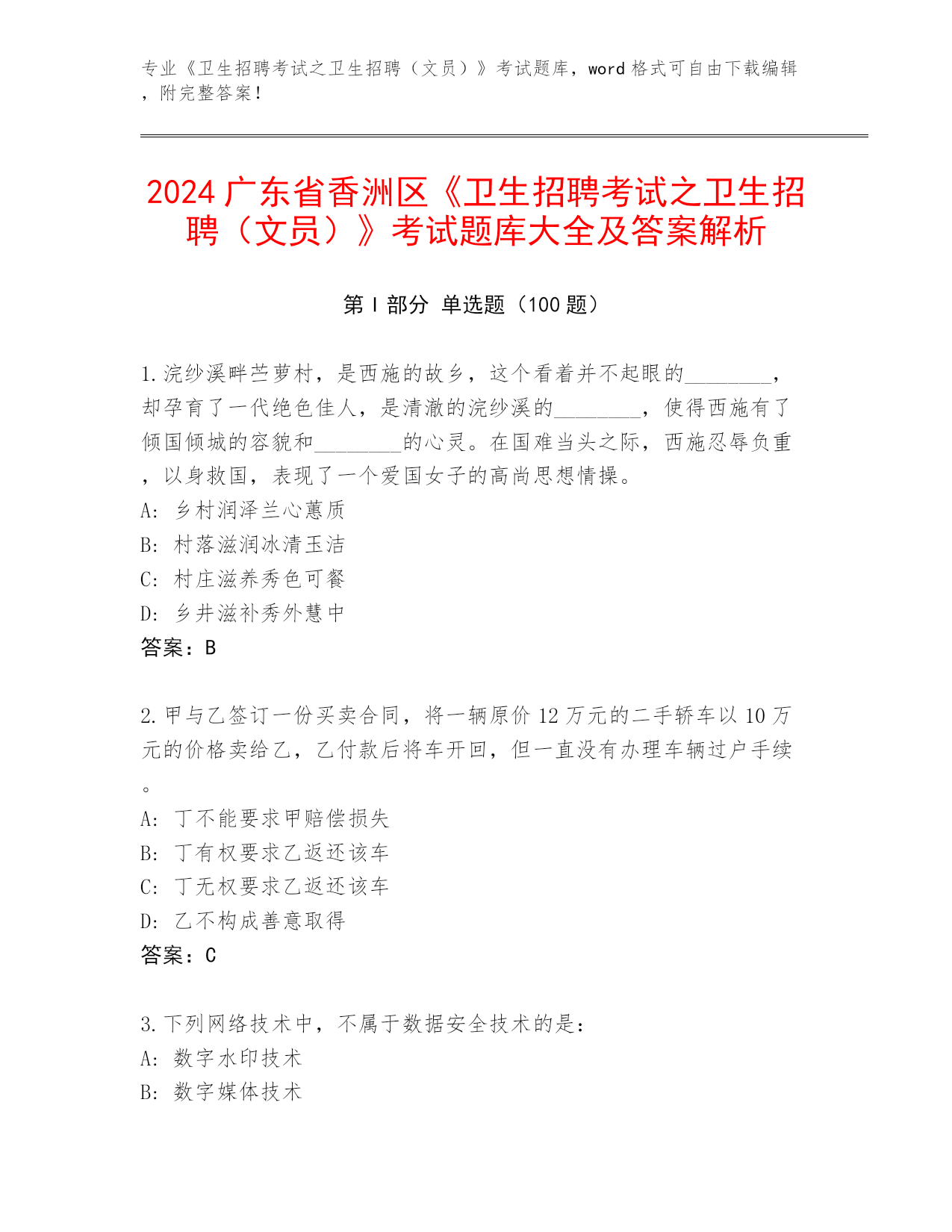 2024广东省香洲区《卫生招聘考试之卫生招聘(文员)》考试题库大全及答案解析