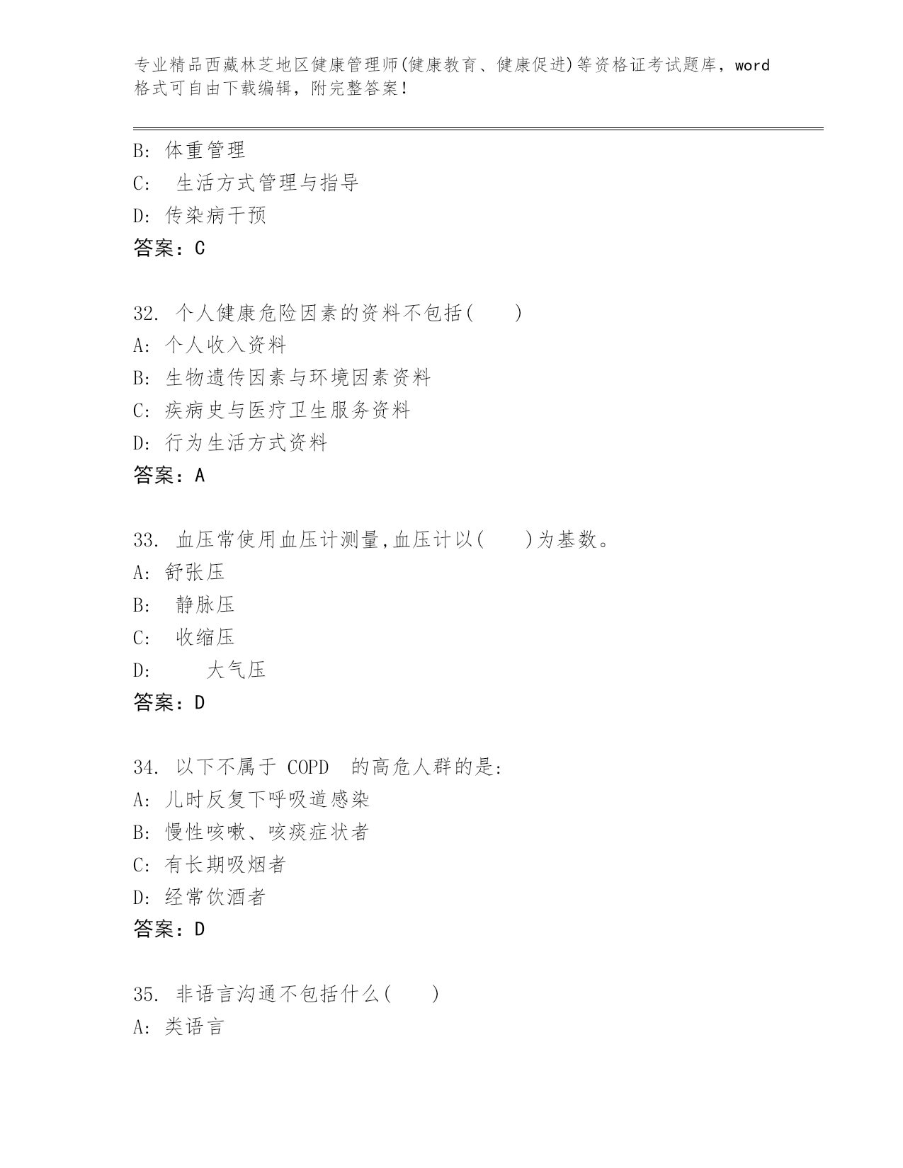 西藏林芝地区健康管理师(健康教育、健康促进)等资格证考试精品题库含答案【A卷】.docx