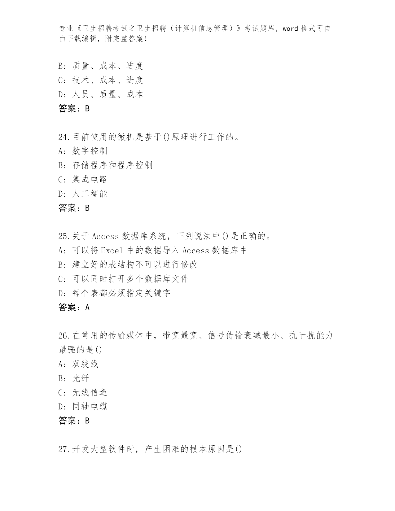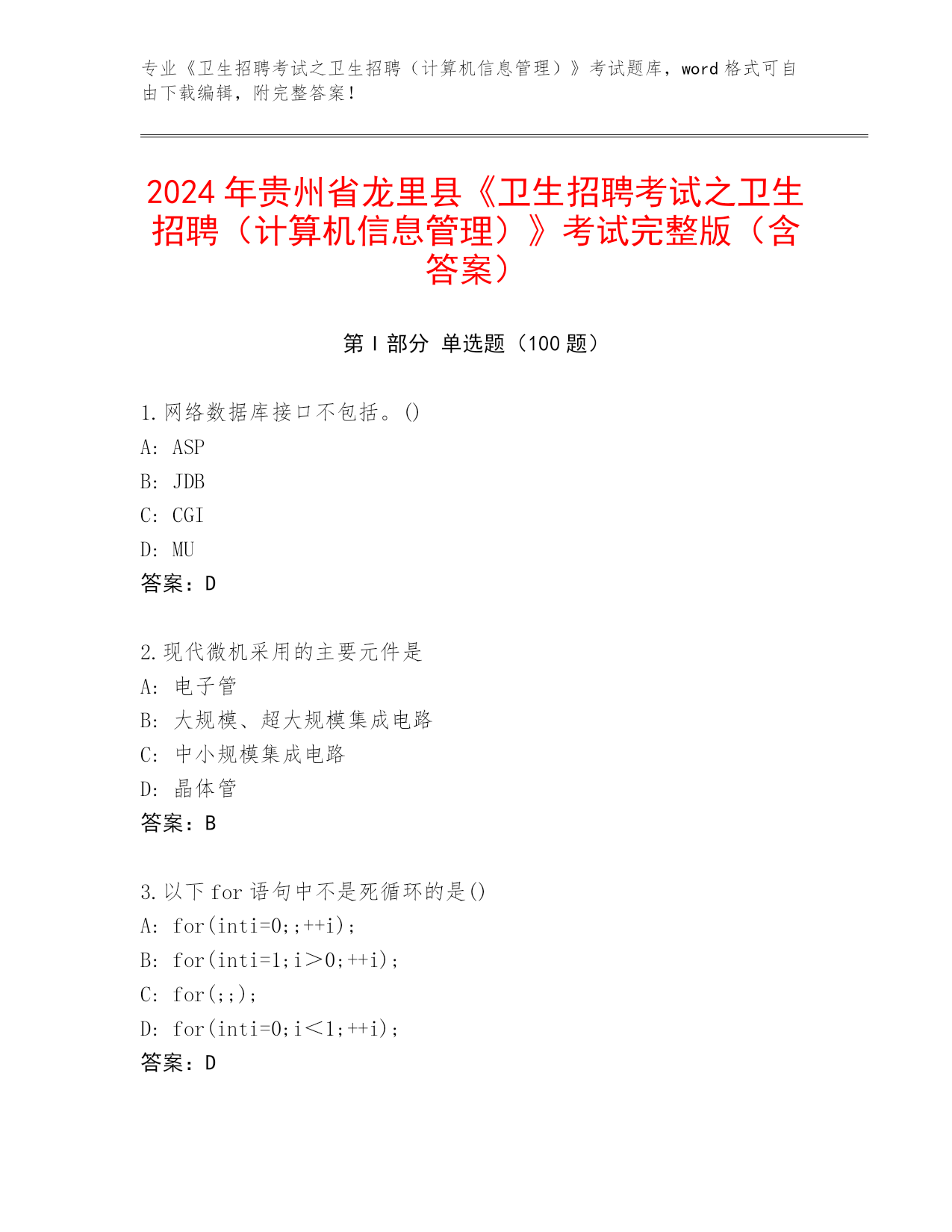 2024年贵州省龙里县《卫生招聘考试之卫生招聘(计算机信息管理)》考试完整版(含答案)