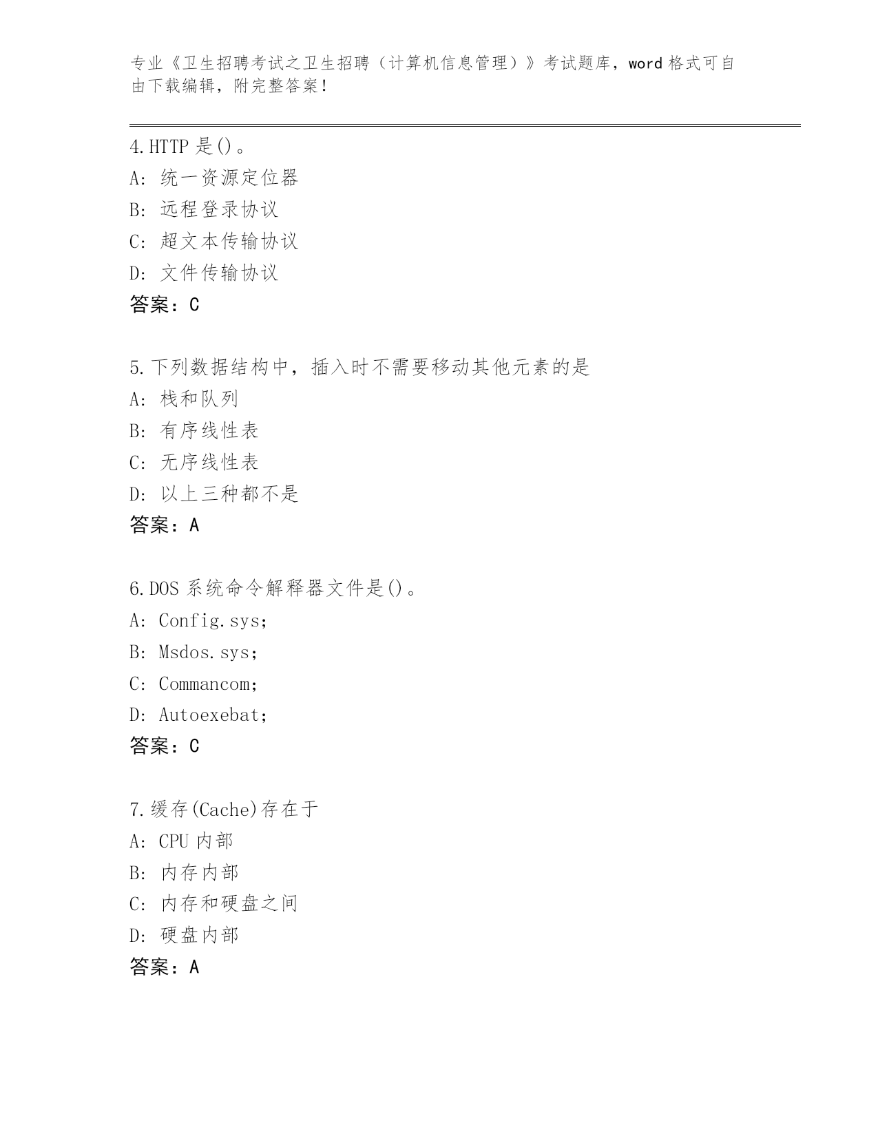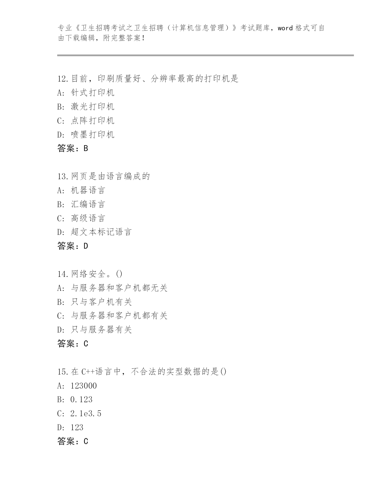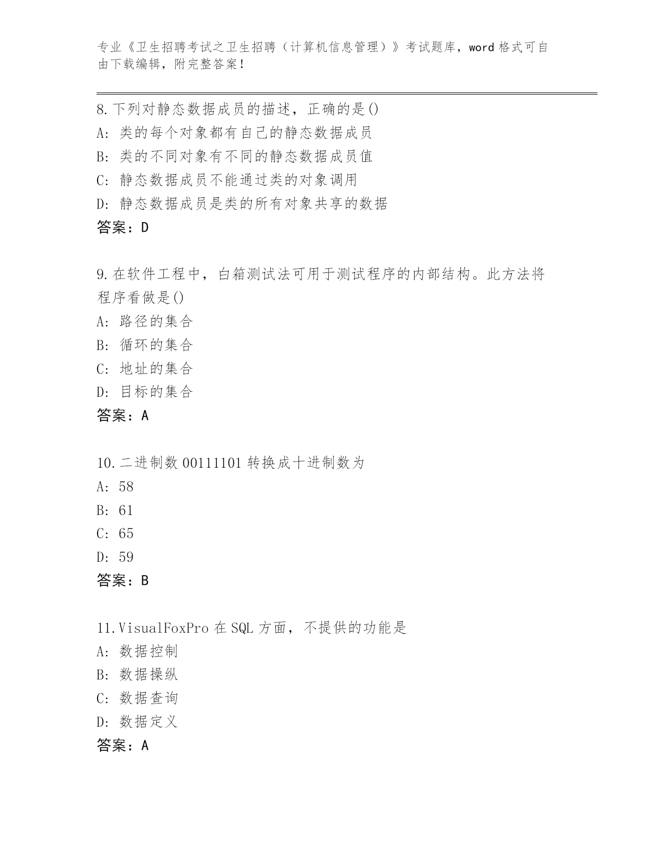 贵州省龙里县历年《卫生招聘考试之卫生招聘(计算机信息管理)》资格考试完整版A4版打印