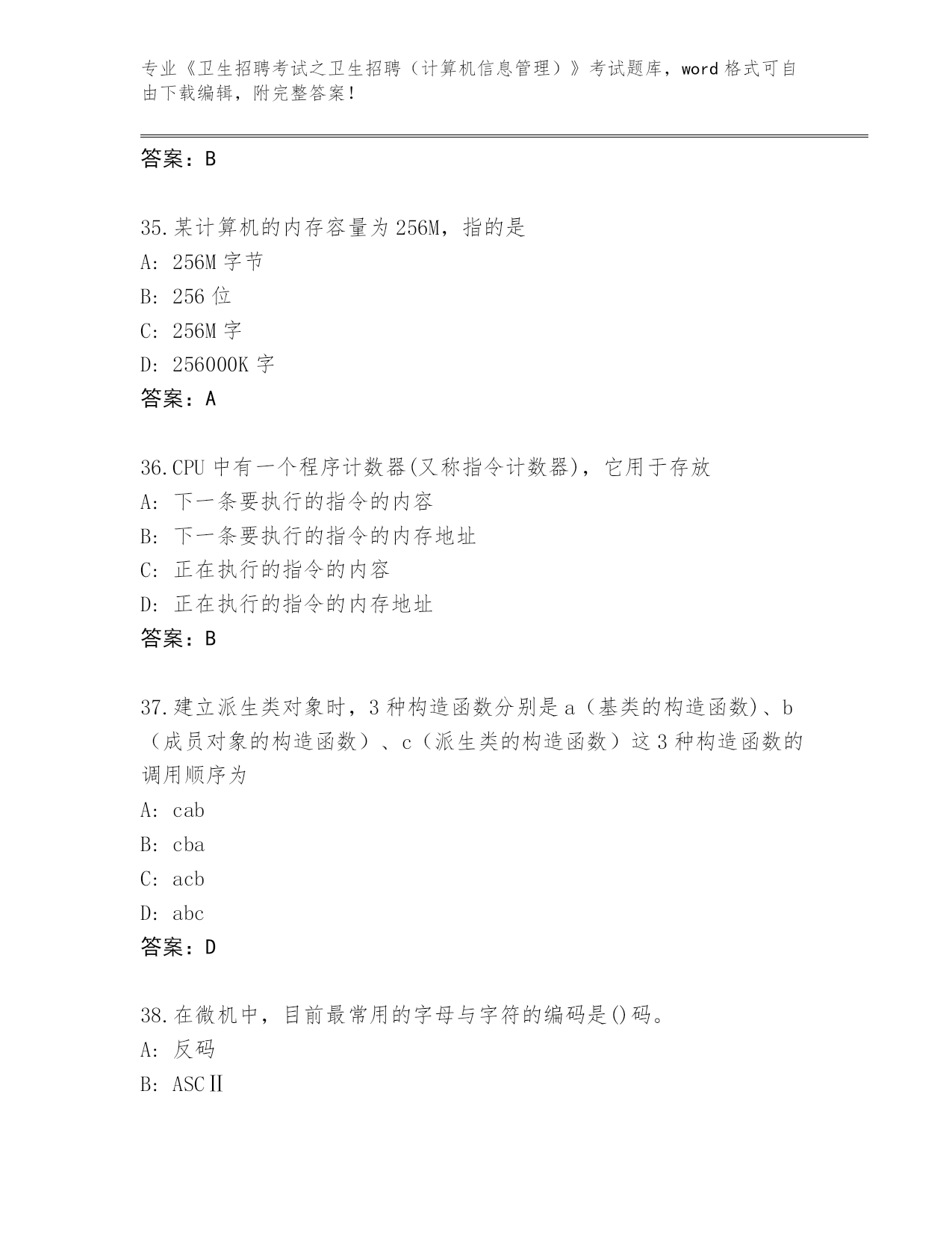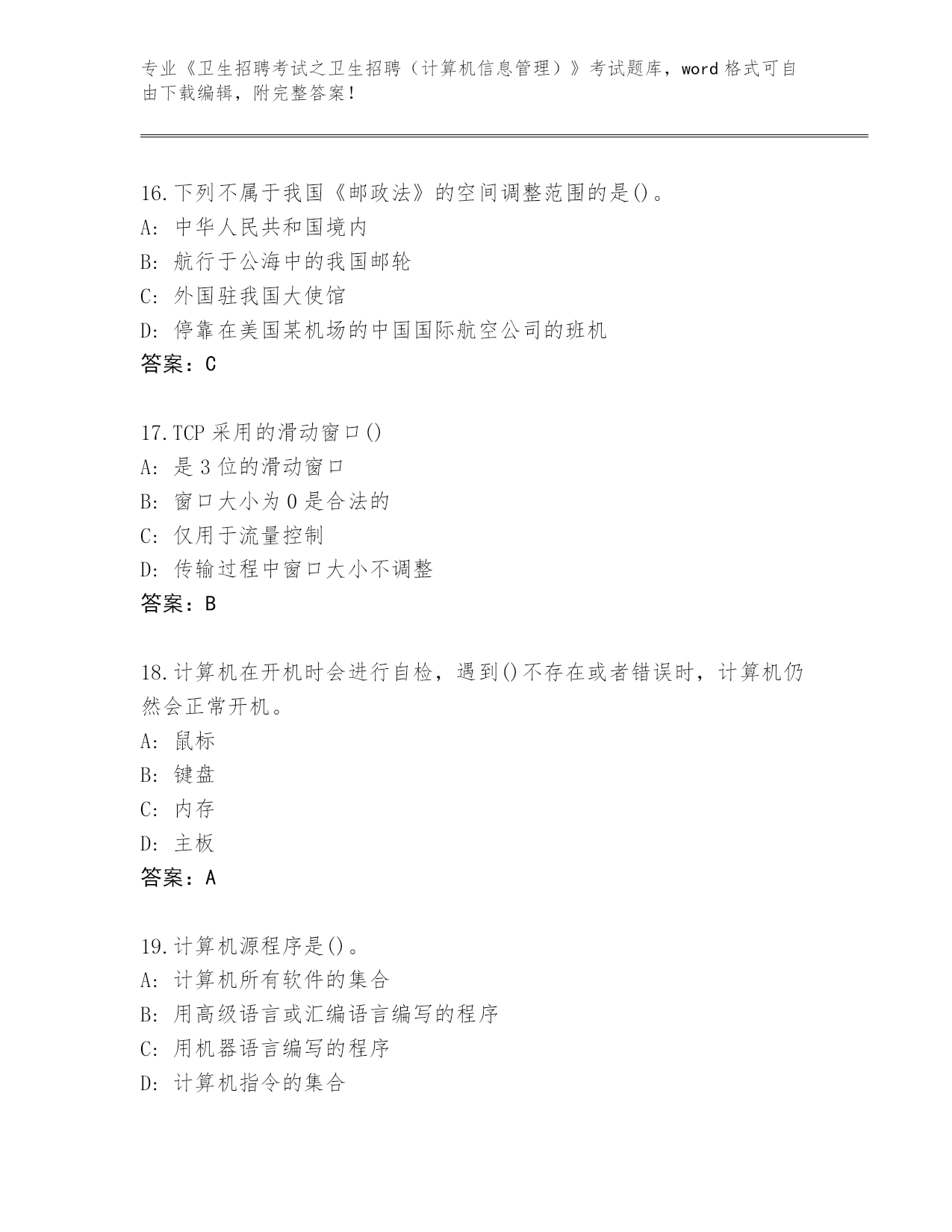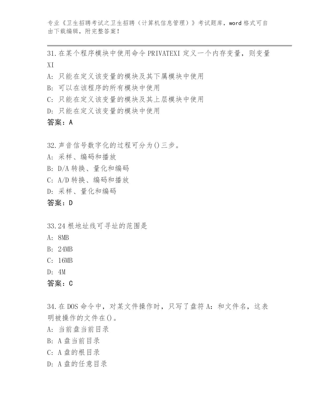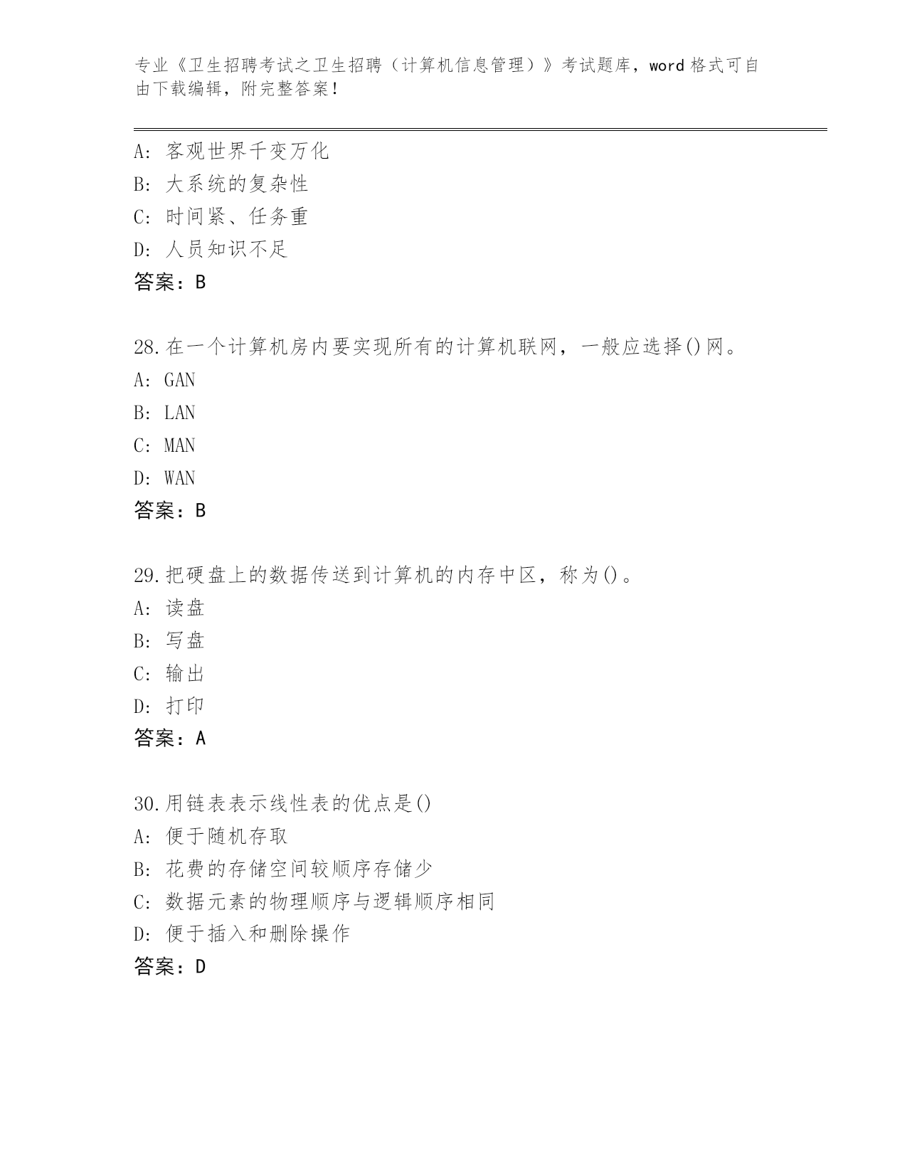 贵州省龙里县历年《卫生招聘考试之卫生招聘(计算机信息管理)》资格考试完整版A4版打印