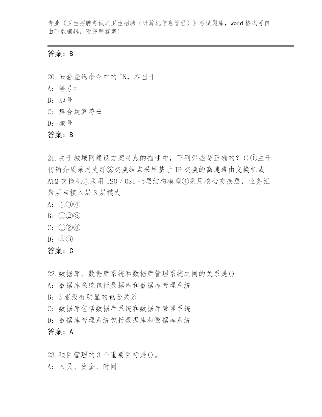 贵州省龙里县2024《卫生招聘考试之卫生招聘(计算机信息管理)》考试王牌题库带答案解析