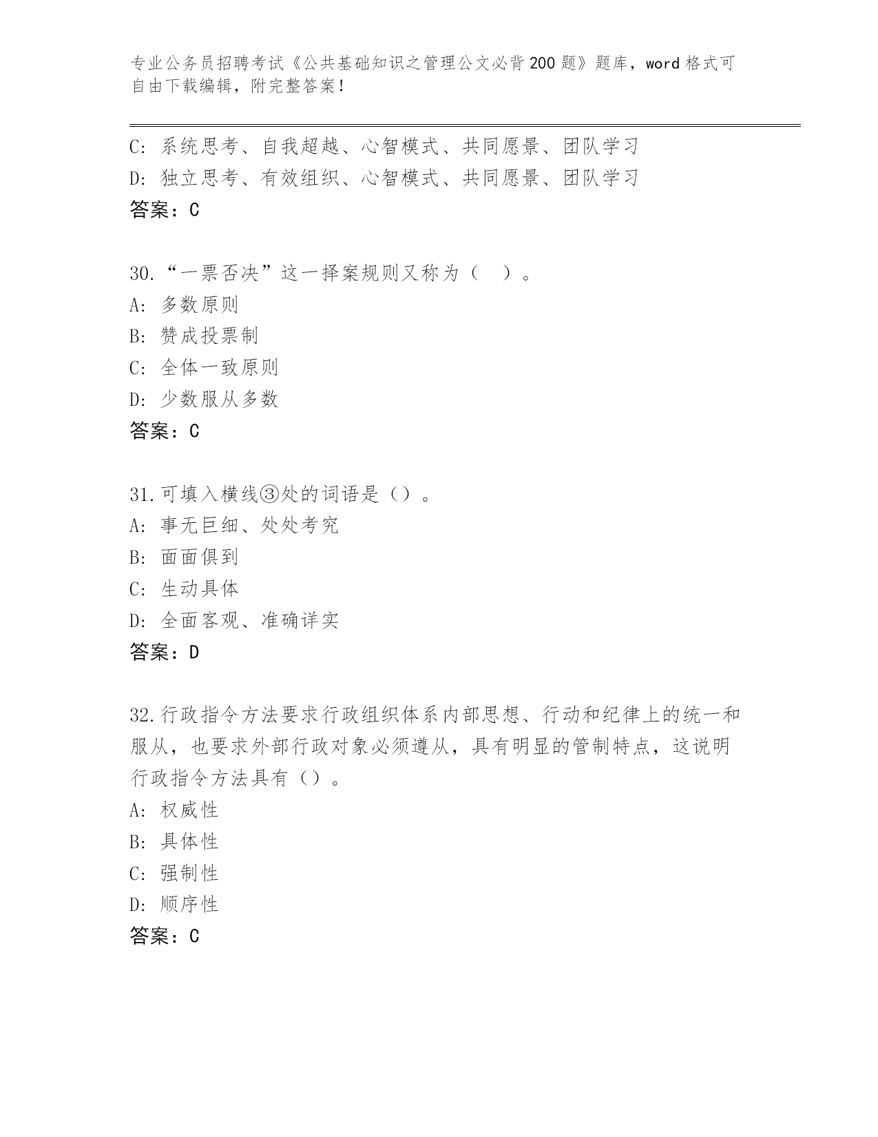 海南省崖州区公务员招聘考试《公共基础知识之管理公文必背200题》含答案【A卷】.docx