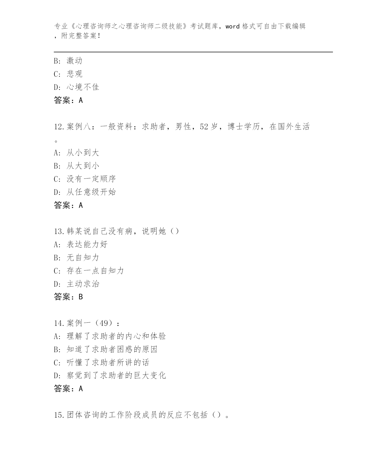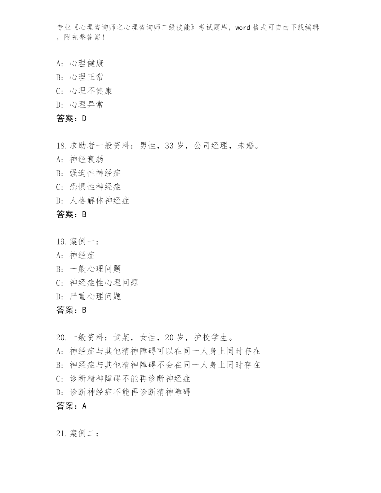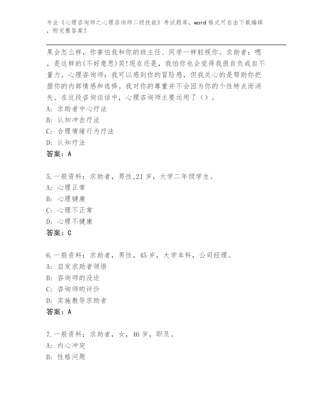 江苏省2024年《心理咨询师之心理咨询师二级技能》考试题库(轻巧夺冠)