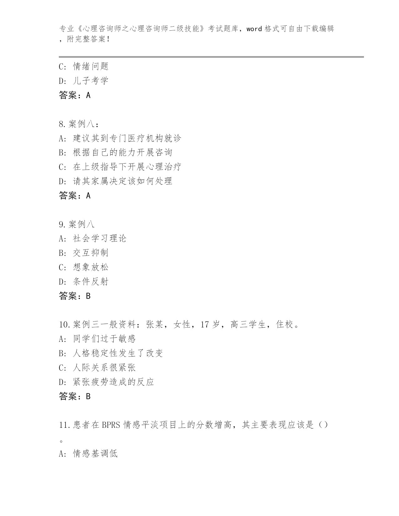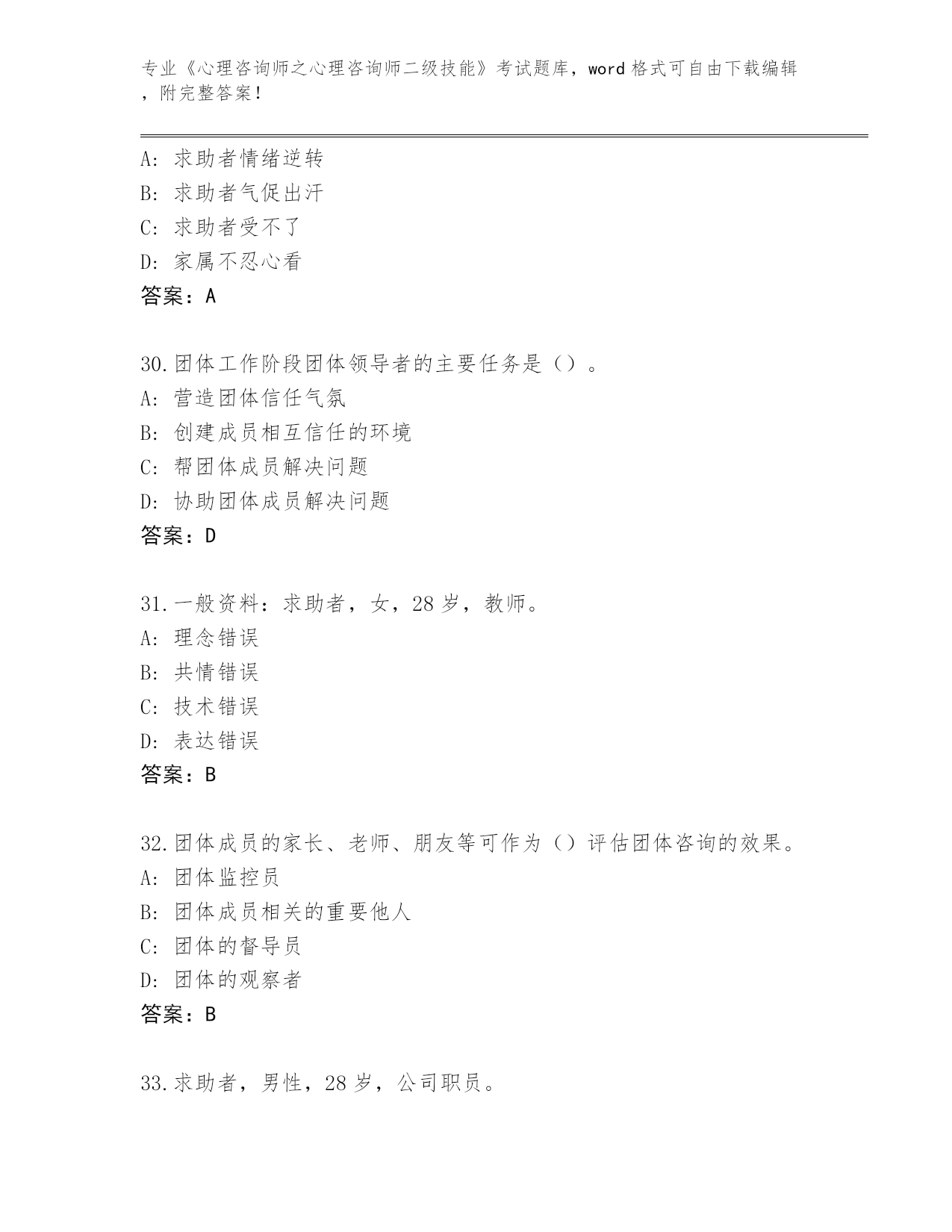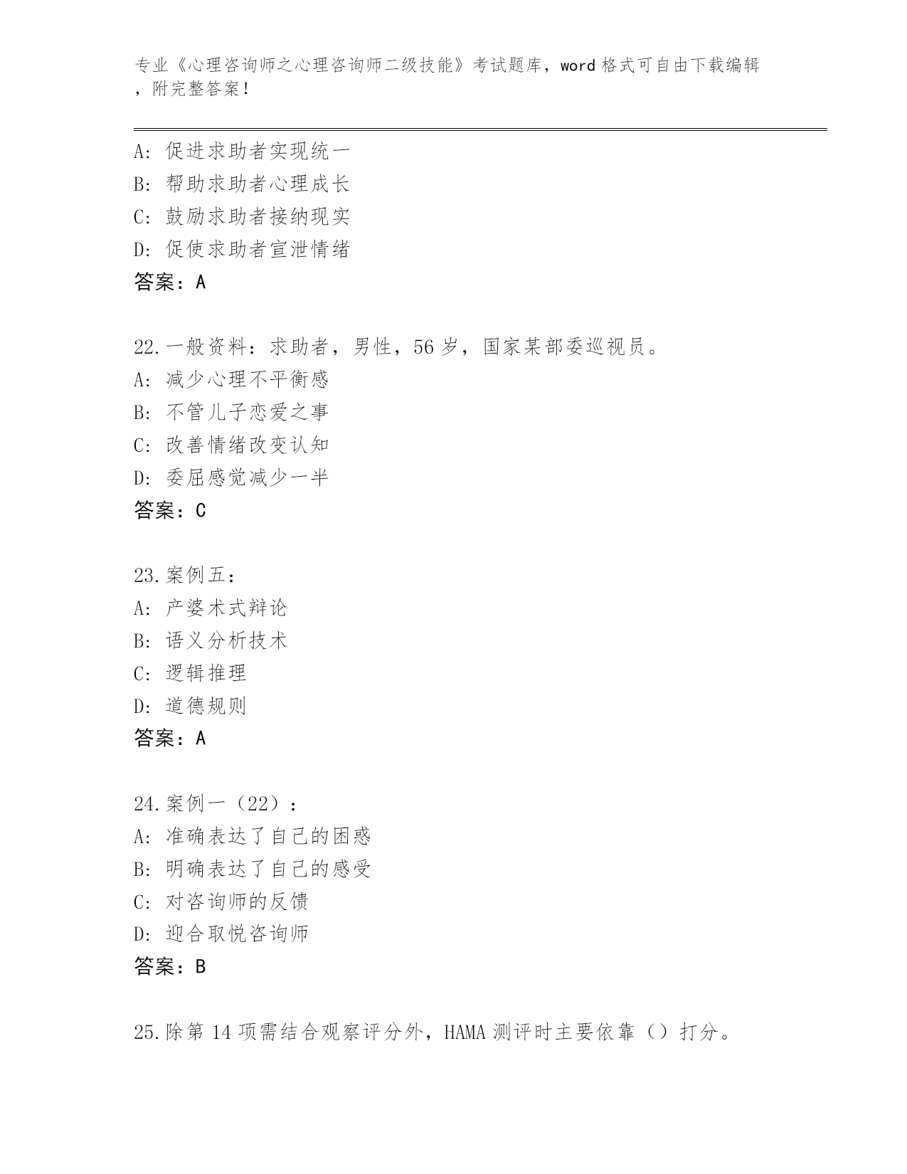 江苏省2024年《心理咨询师之心理咨询师二级技能》考试题库(轻巧夺冠)
